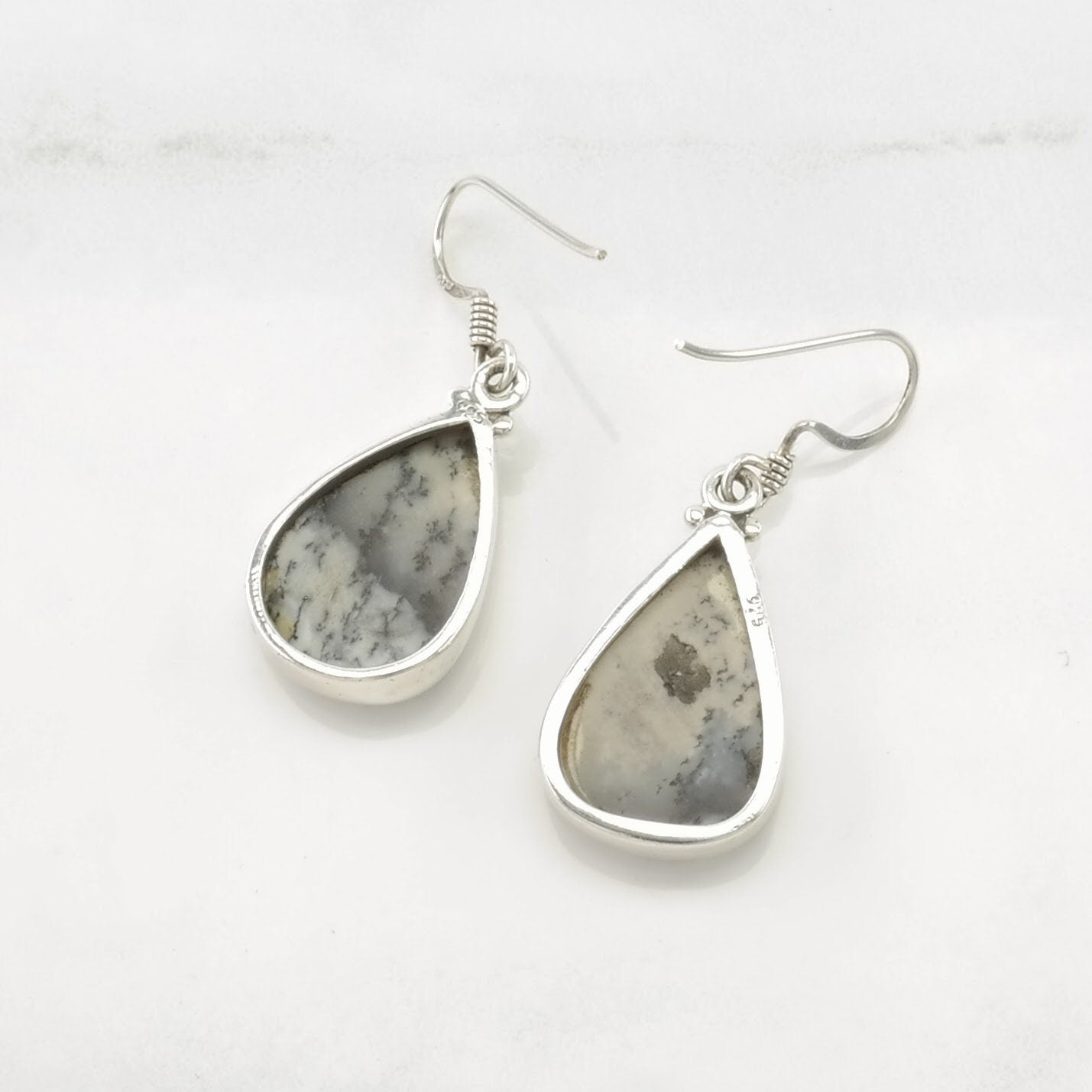 Vintage Sterling Silver Fish Hook Earrings Black, White Agate Teardrop