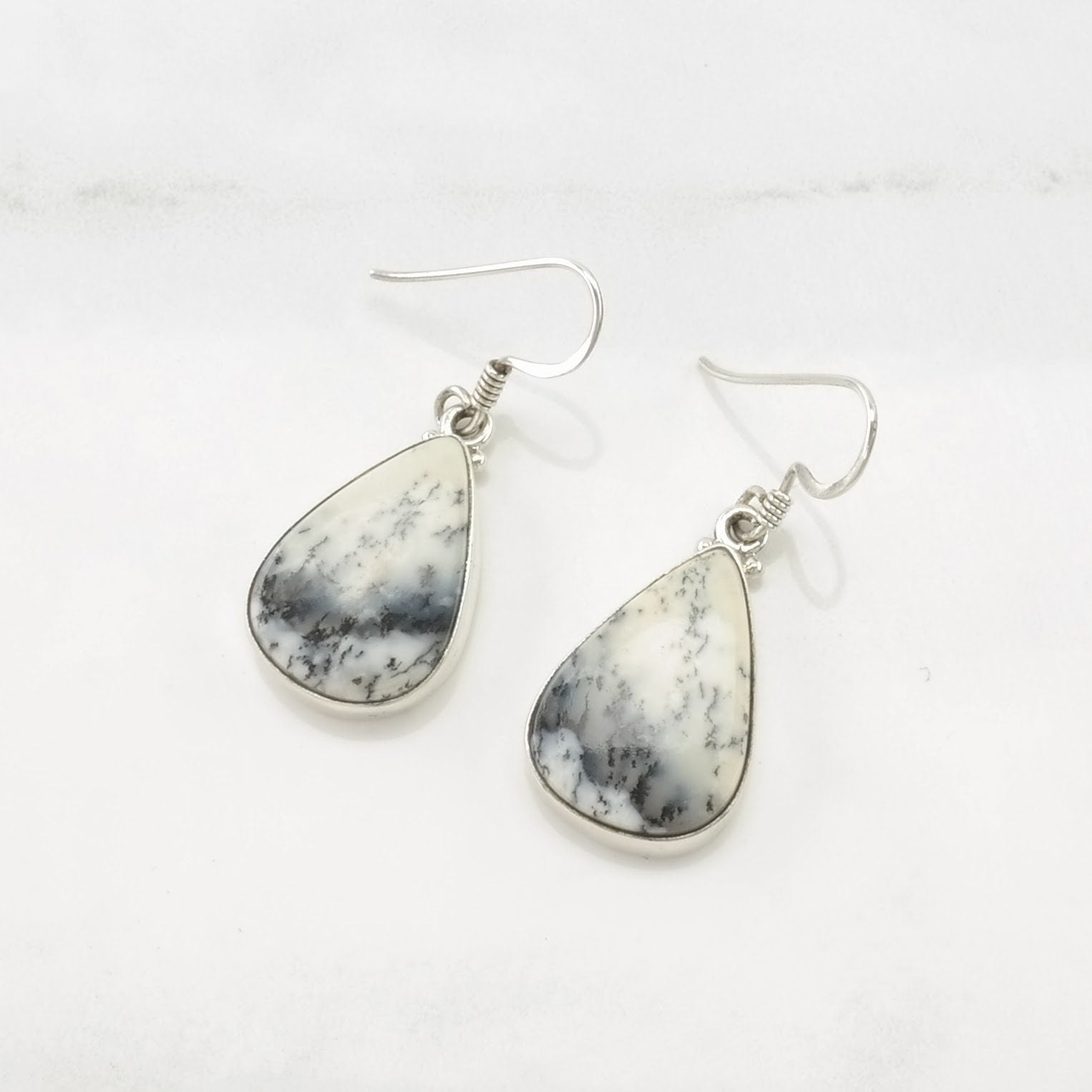 The Stone/Theme is Black, White Agate Teardrop Natural