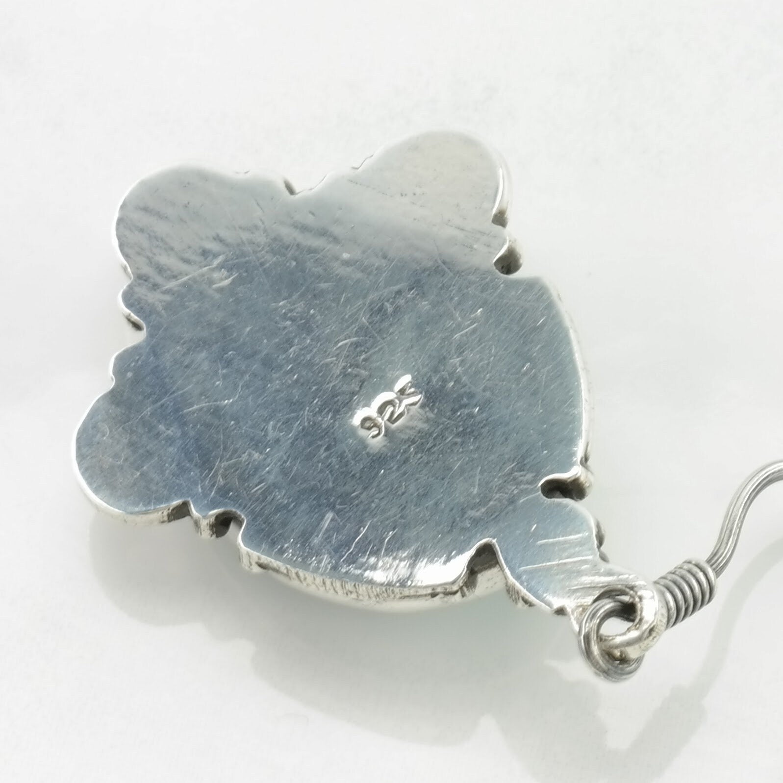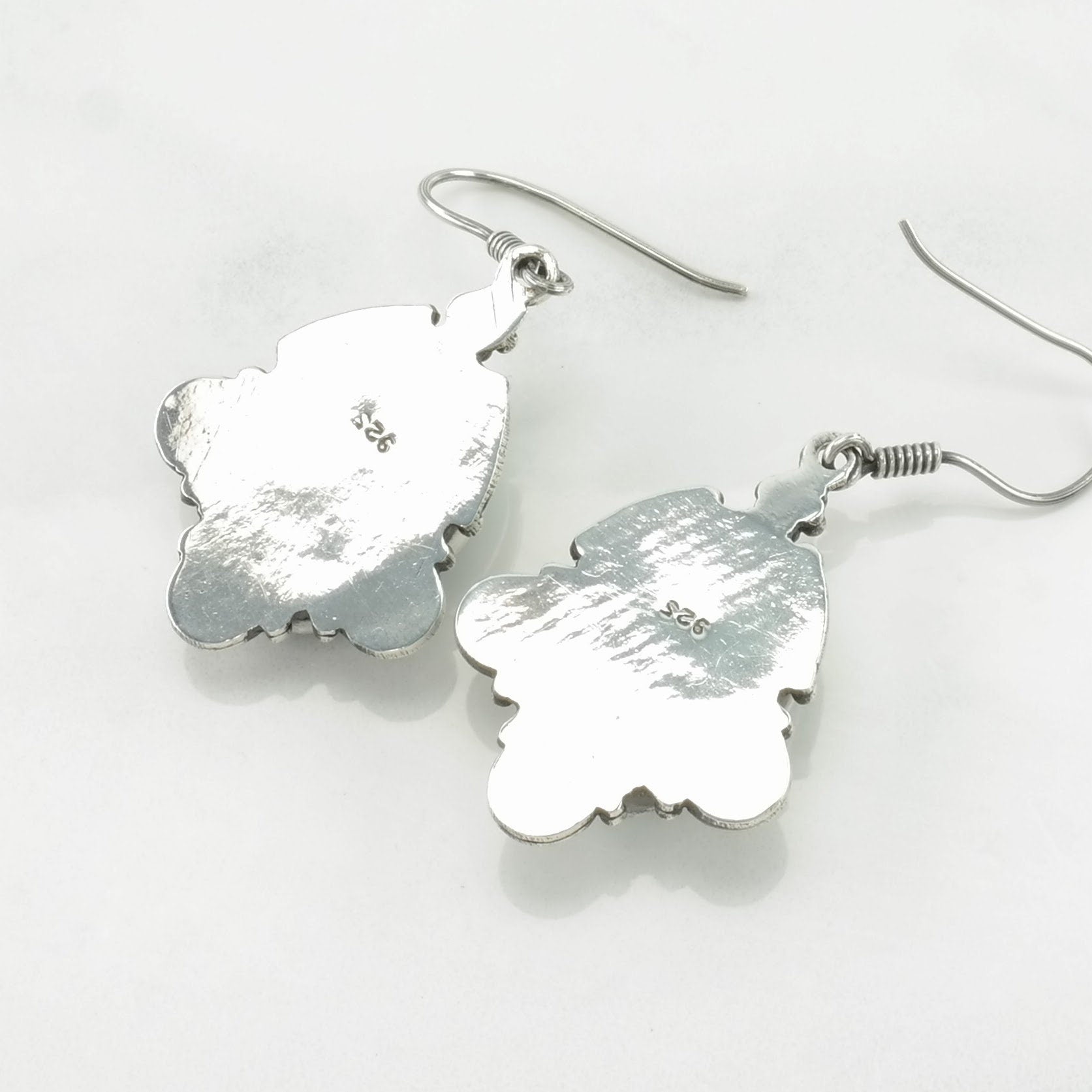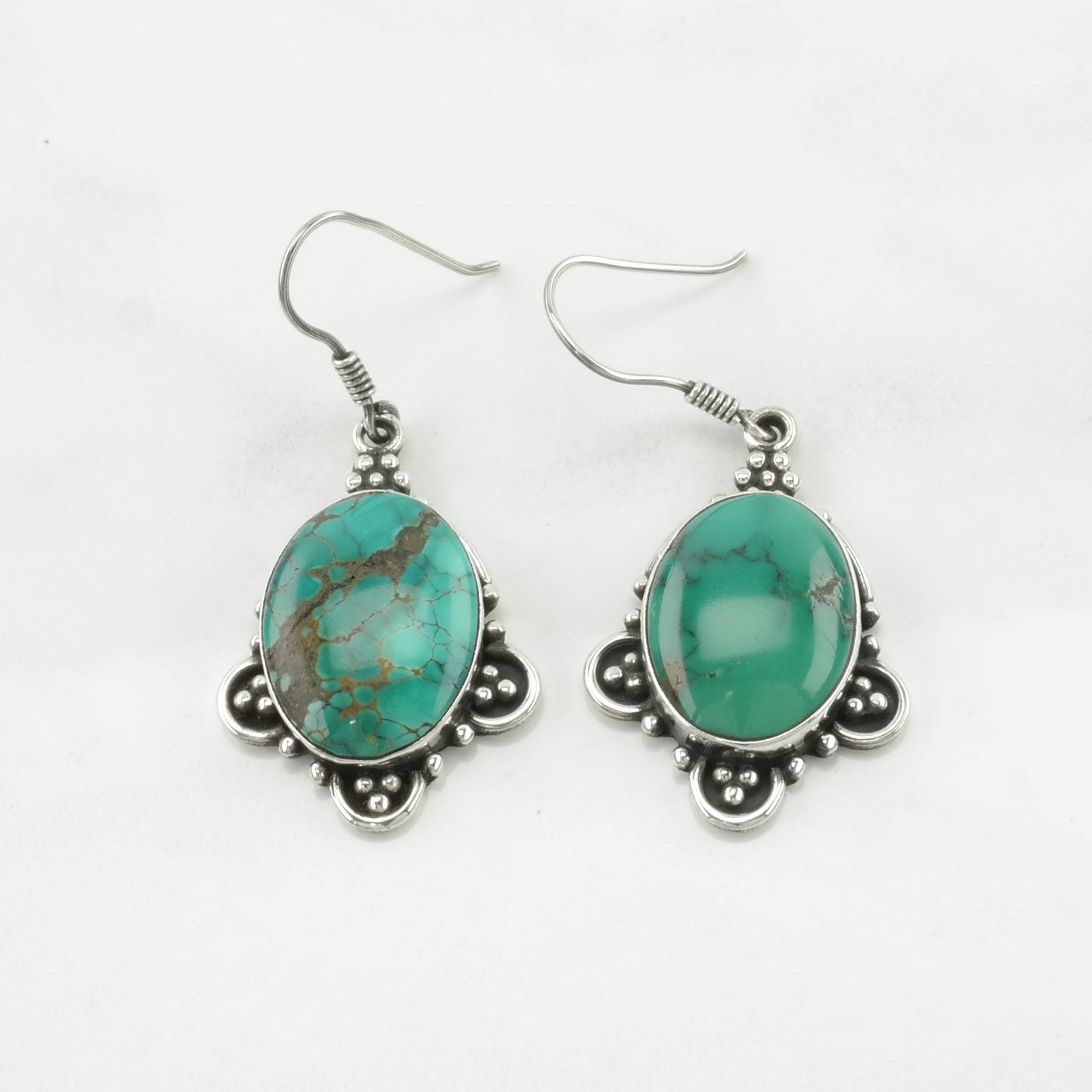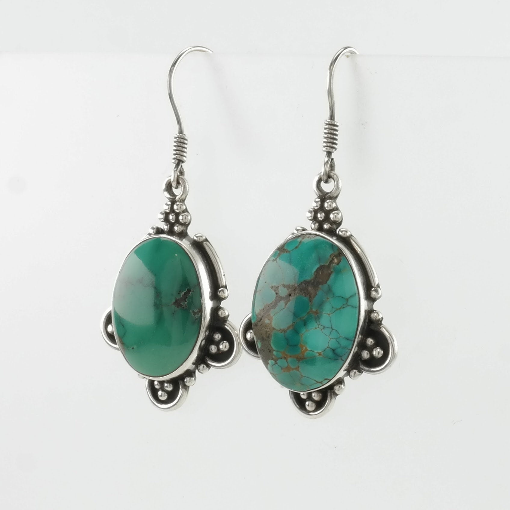 Vintage Sterling Silver Fish Hook Earrings Southwest Blue Turquoise Spiderweb