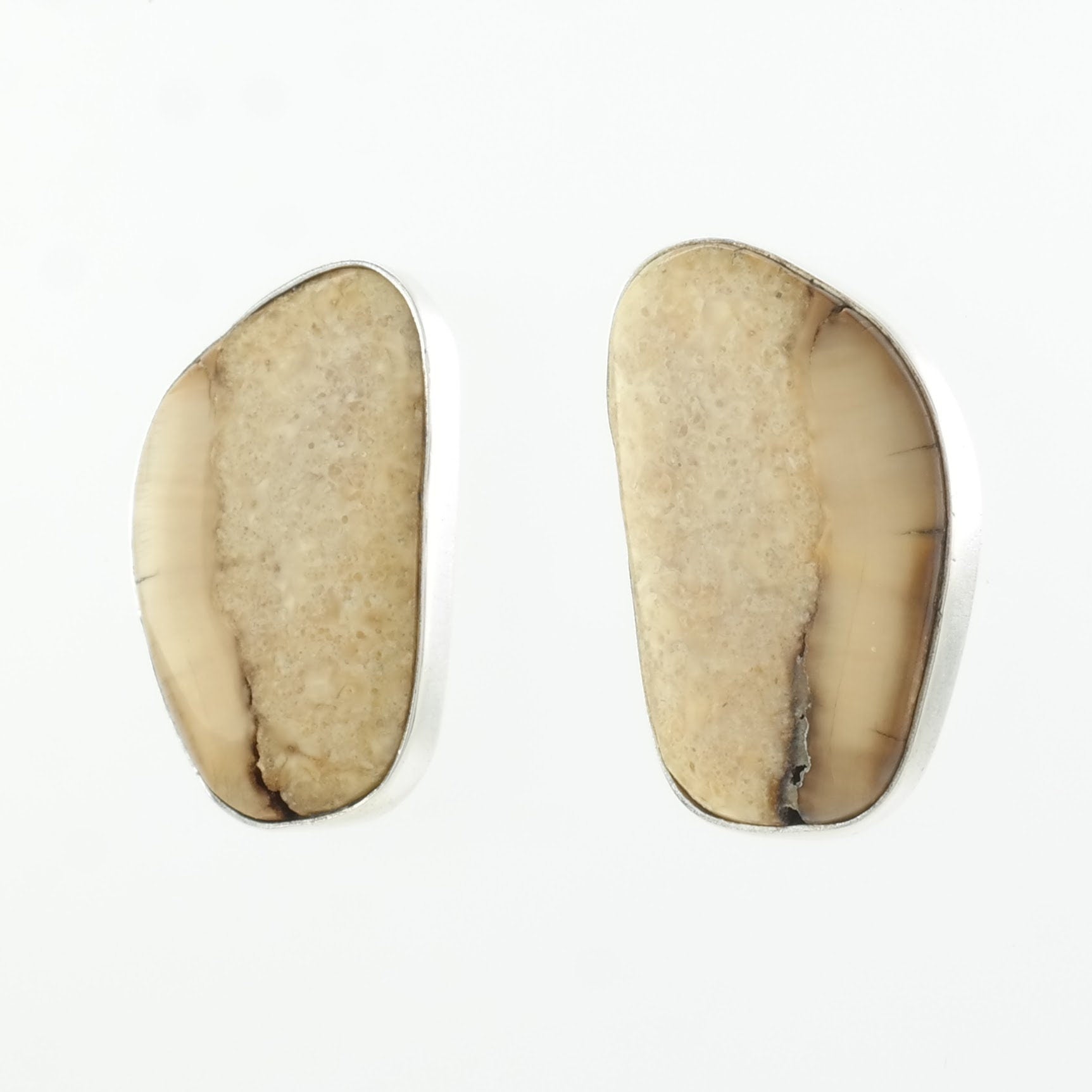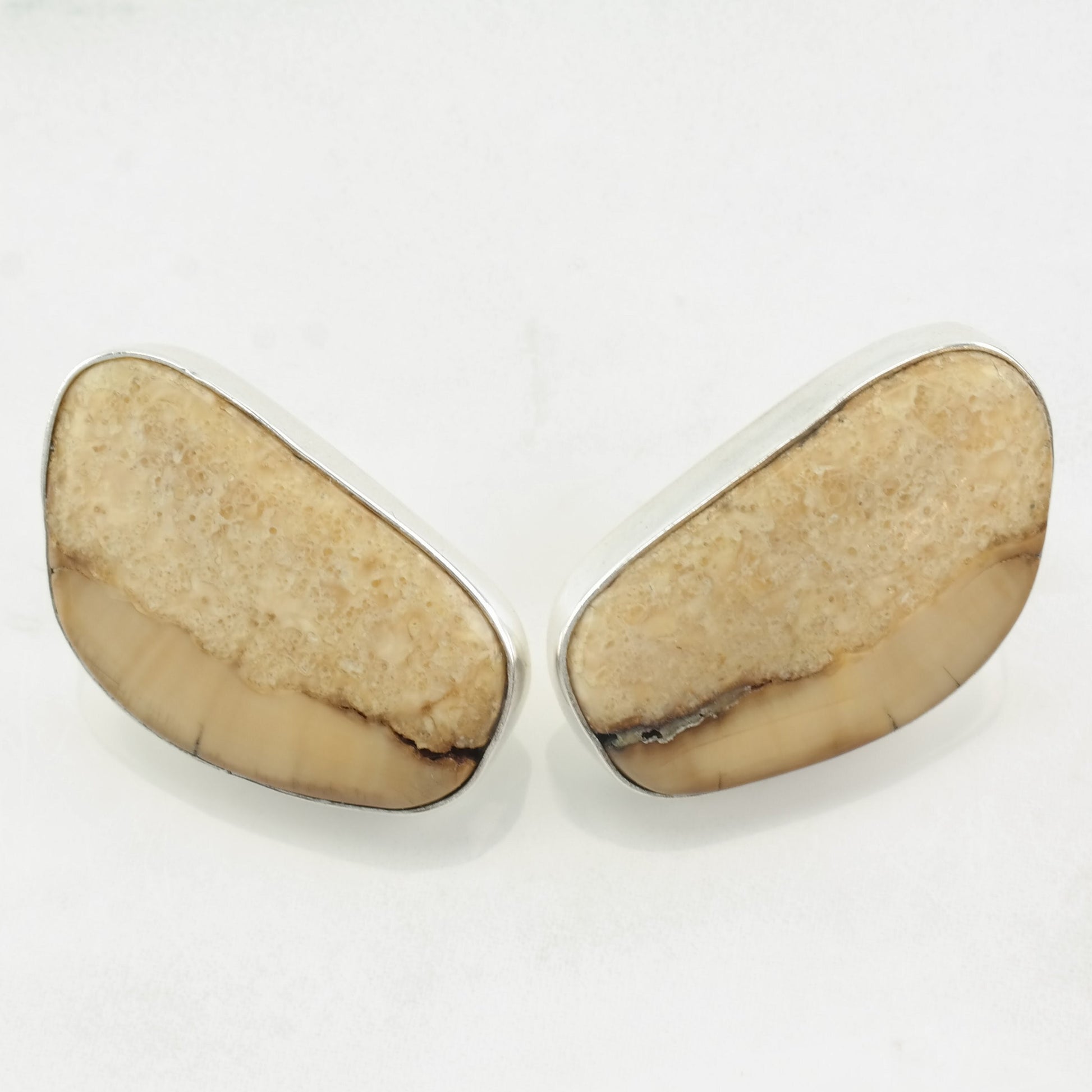 Vintage Sterling Silver Fossil Earrings, 1970s, Beige Earrings, Native American Earrings, Post Earrings