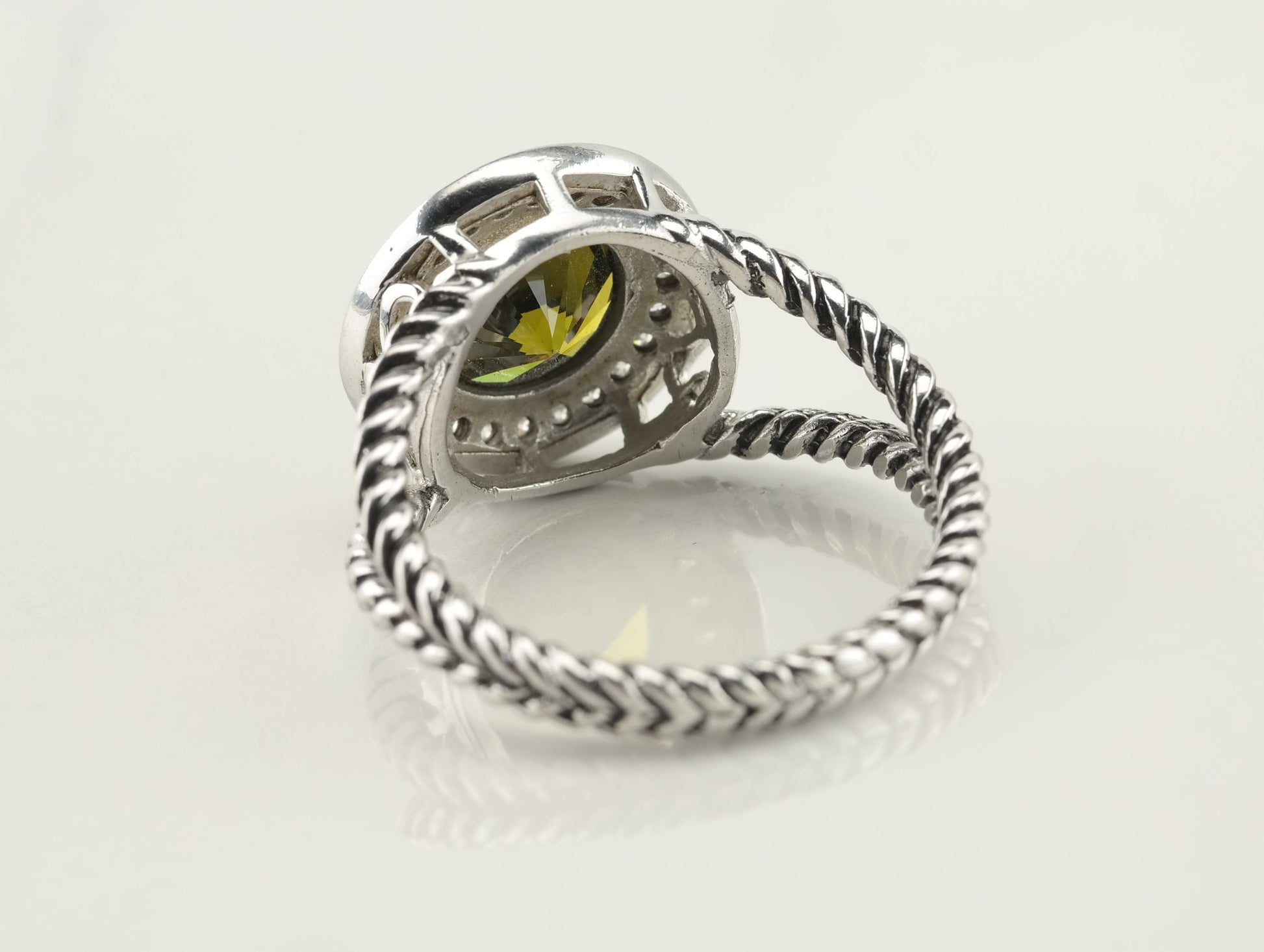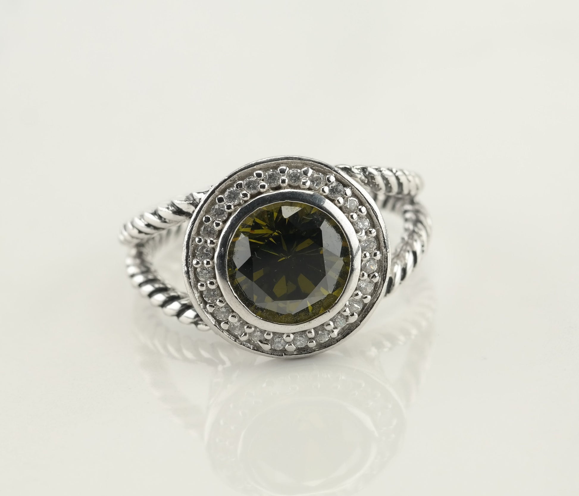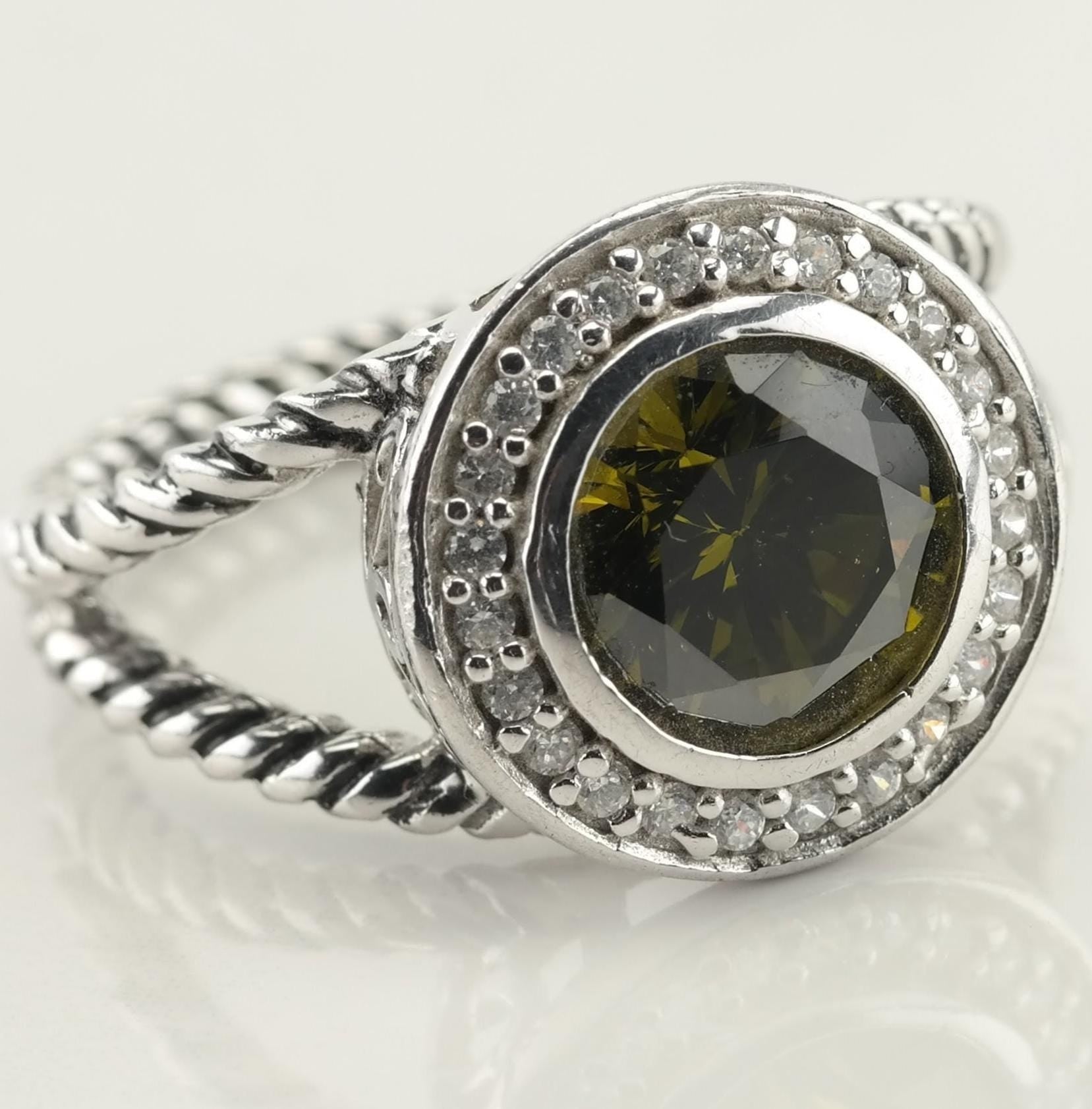 Vintage Sterling Silver Green CZ Ring Size 9 1/2