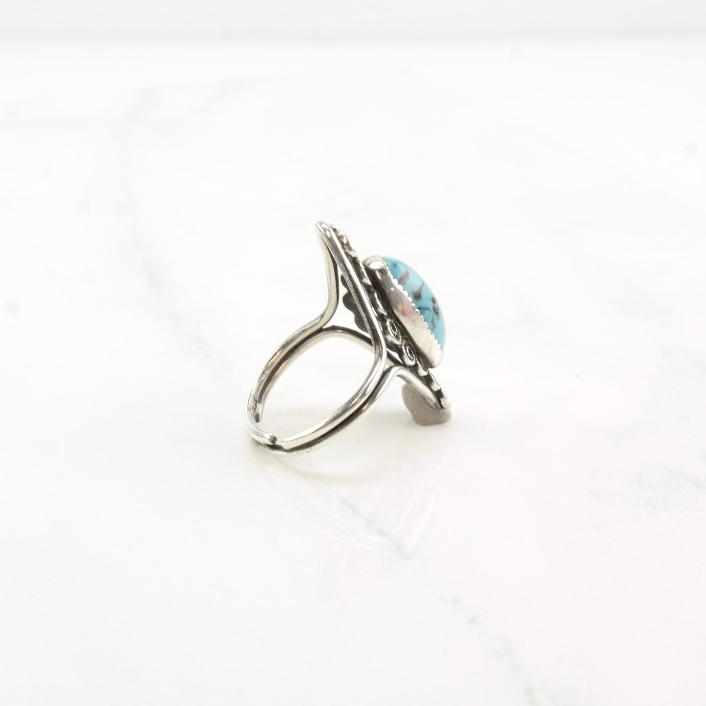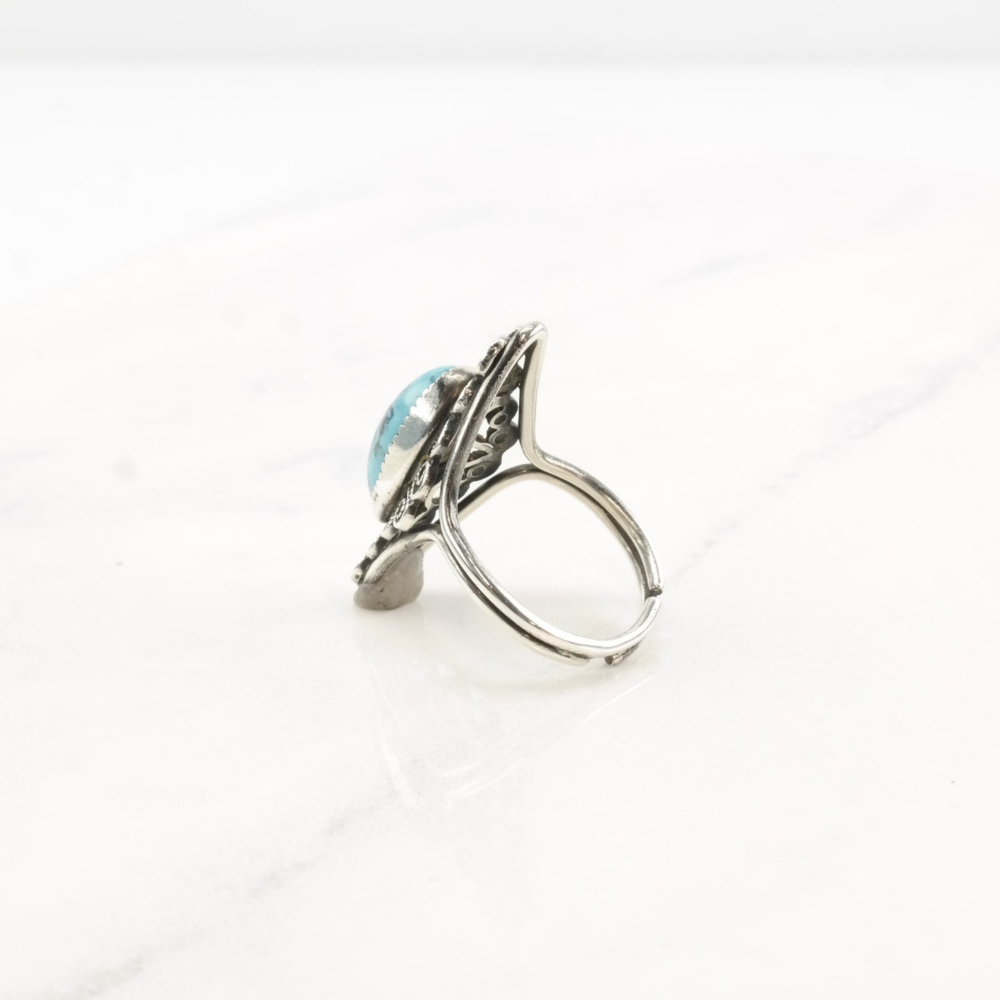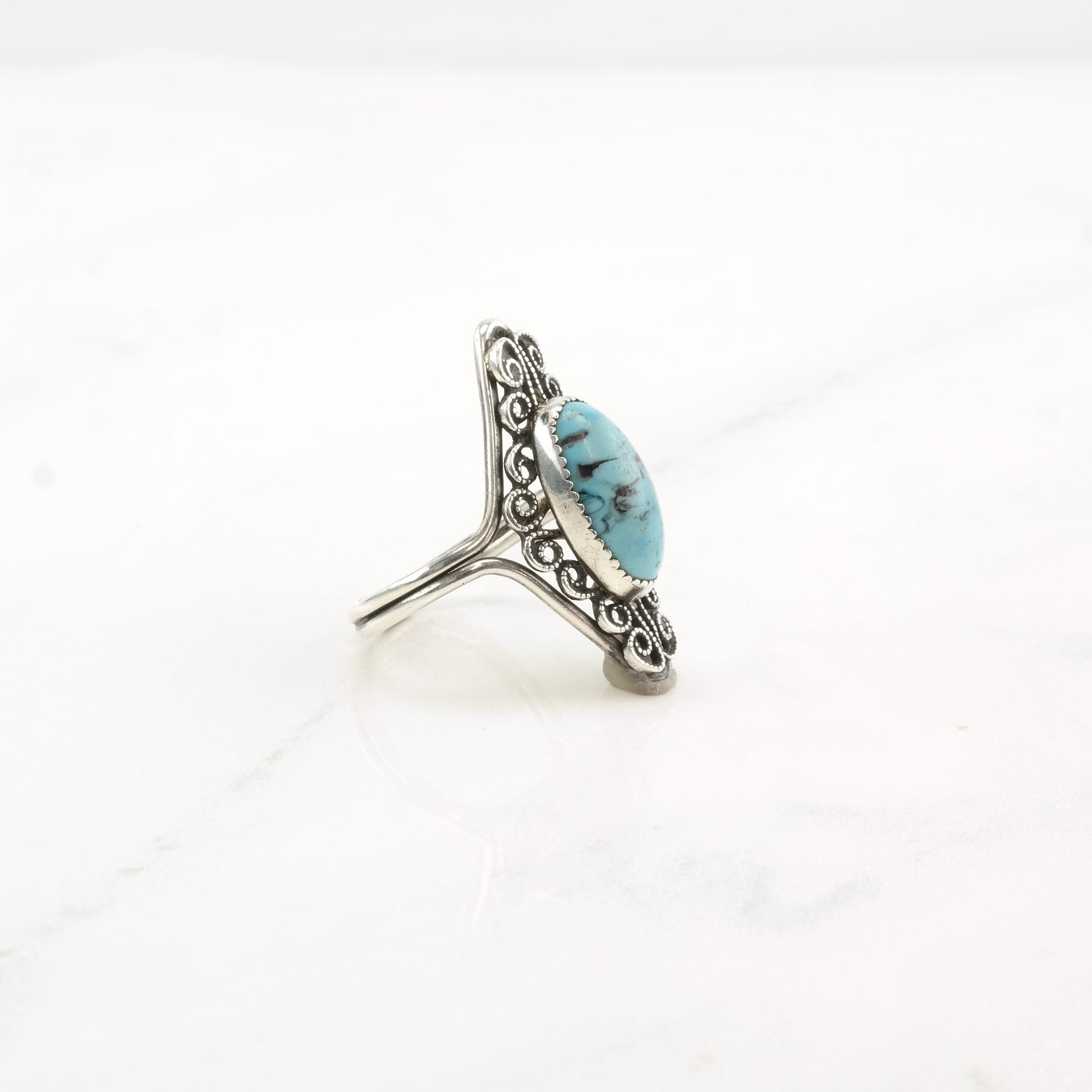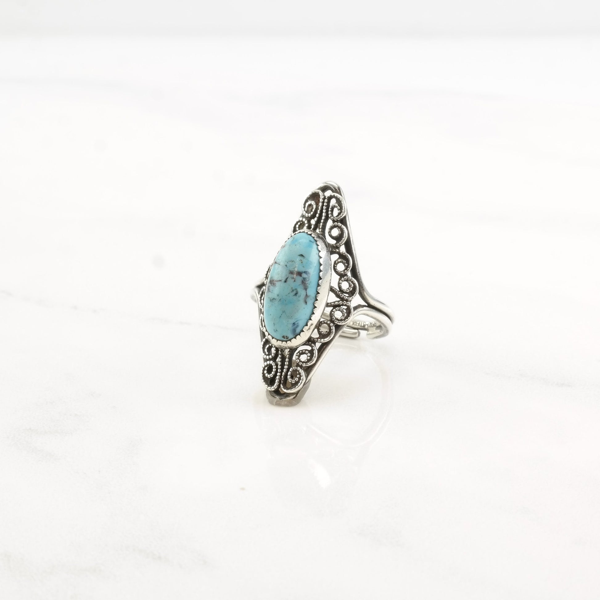 Vintage Sterling Silver Hubbell Glass Filigree Adjustable Ring Size 5