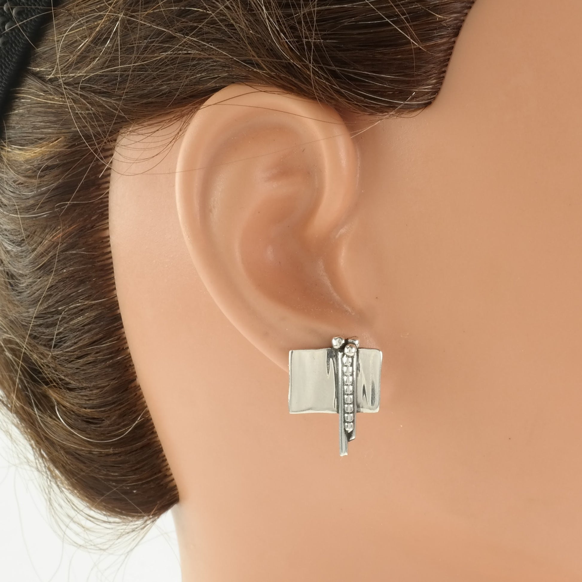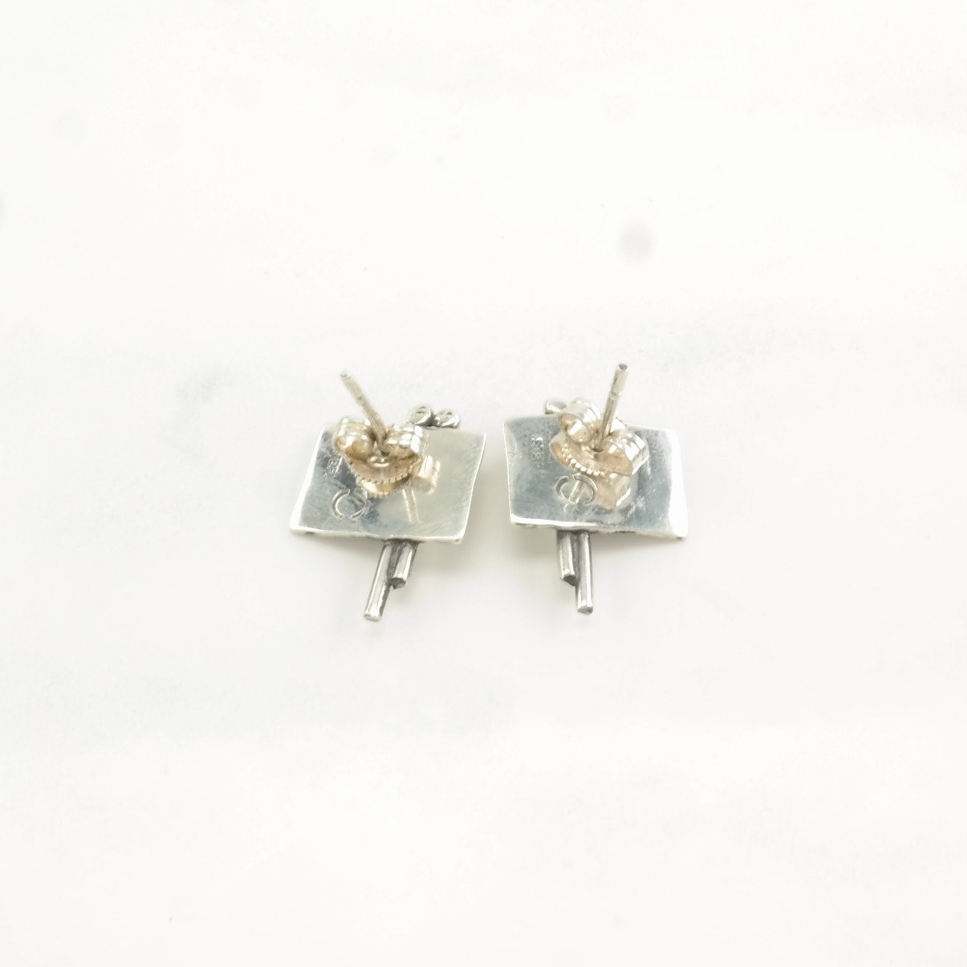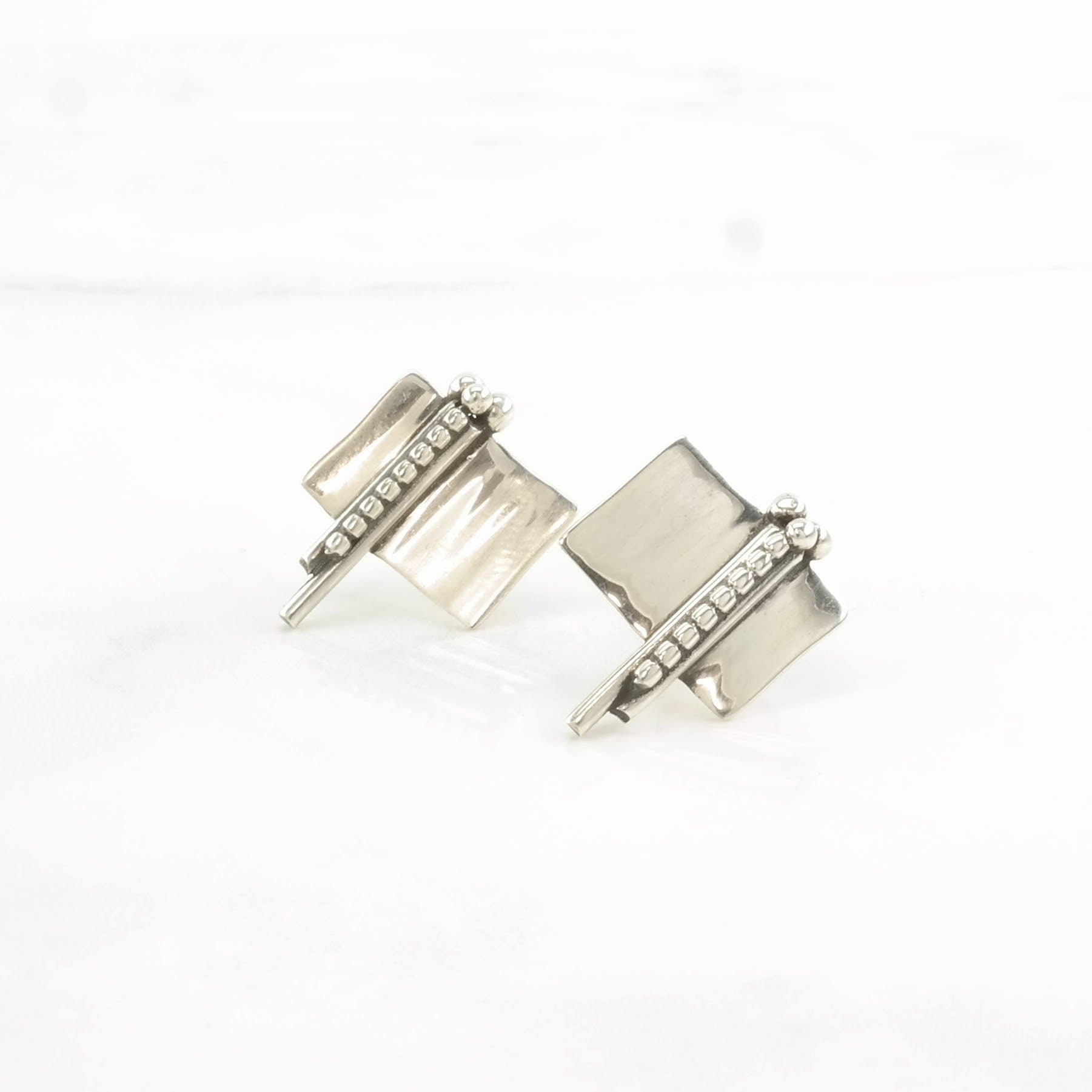 Vintage Sterling Silver Modernist Earrings Stud