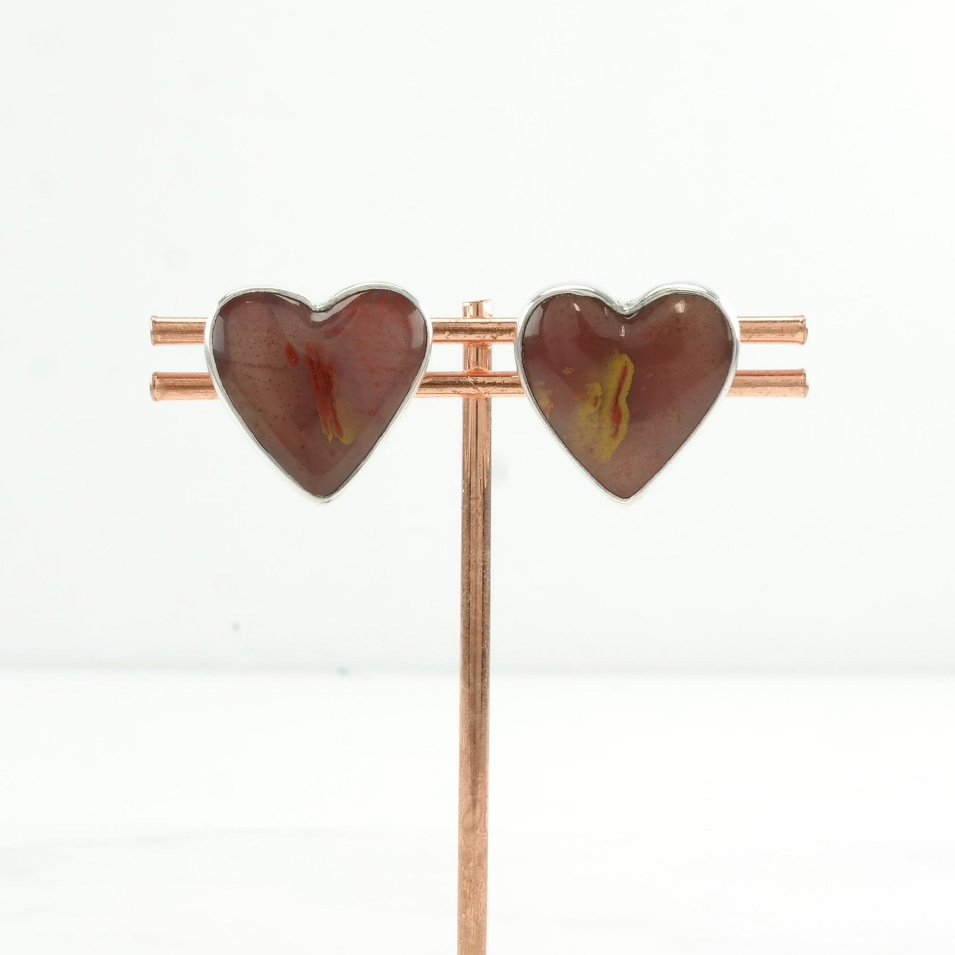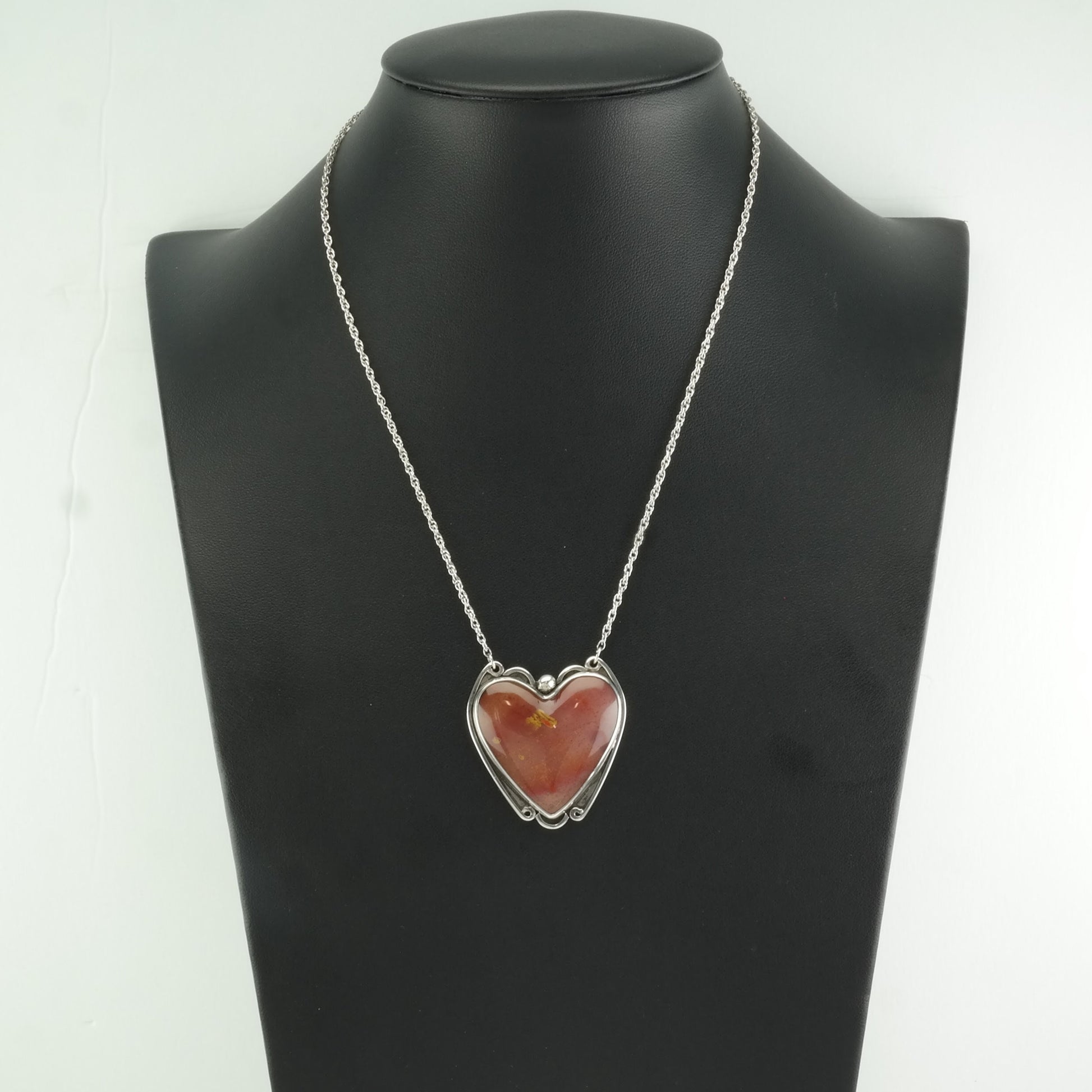 Vintage Sterling Silver Red Agate Heart Necklace Screwback Earring Set