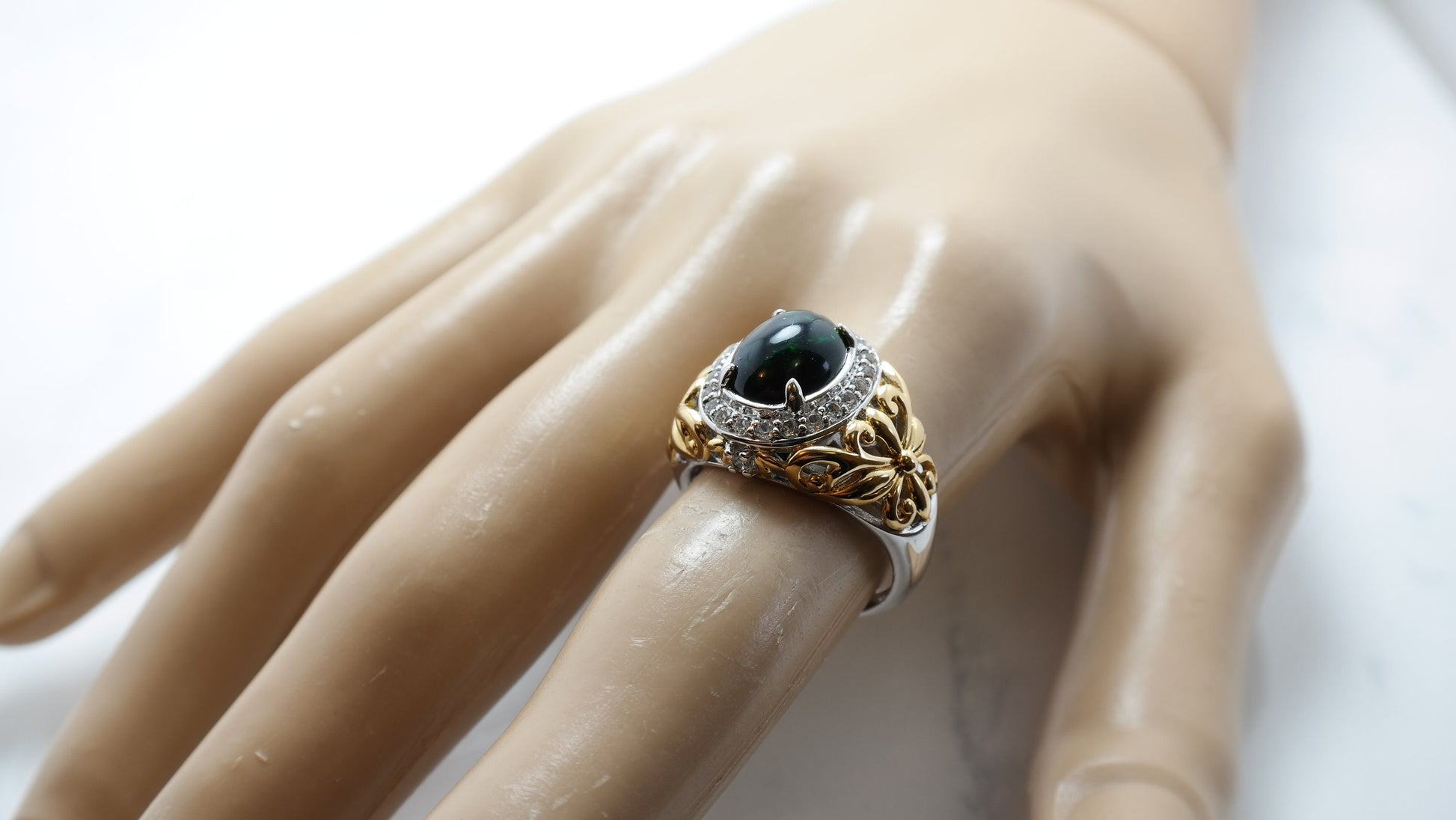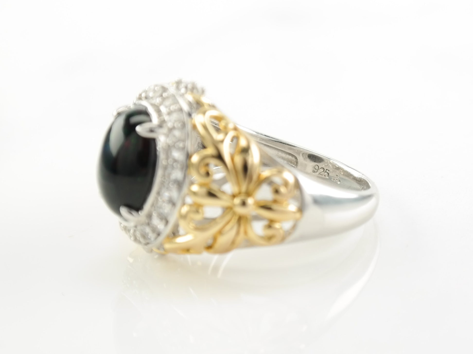 NOTE: The Black Opal stone reflects multiple colors (like green, red and orange), which is difficult to capture in a still image.