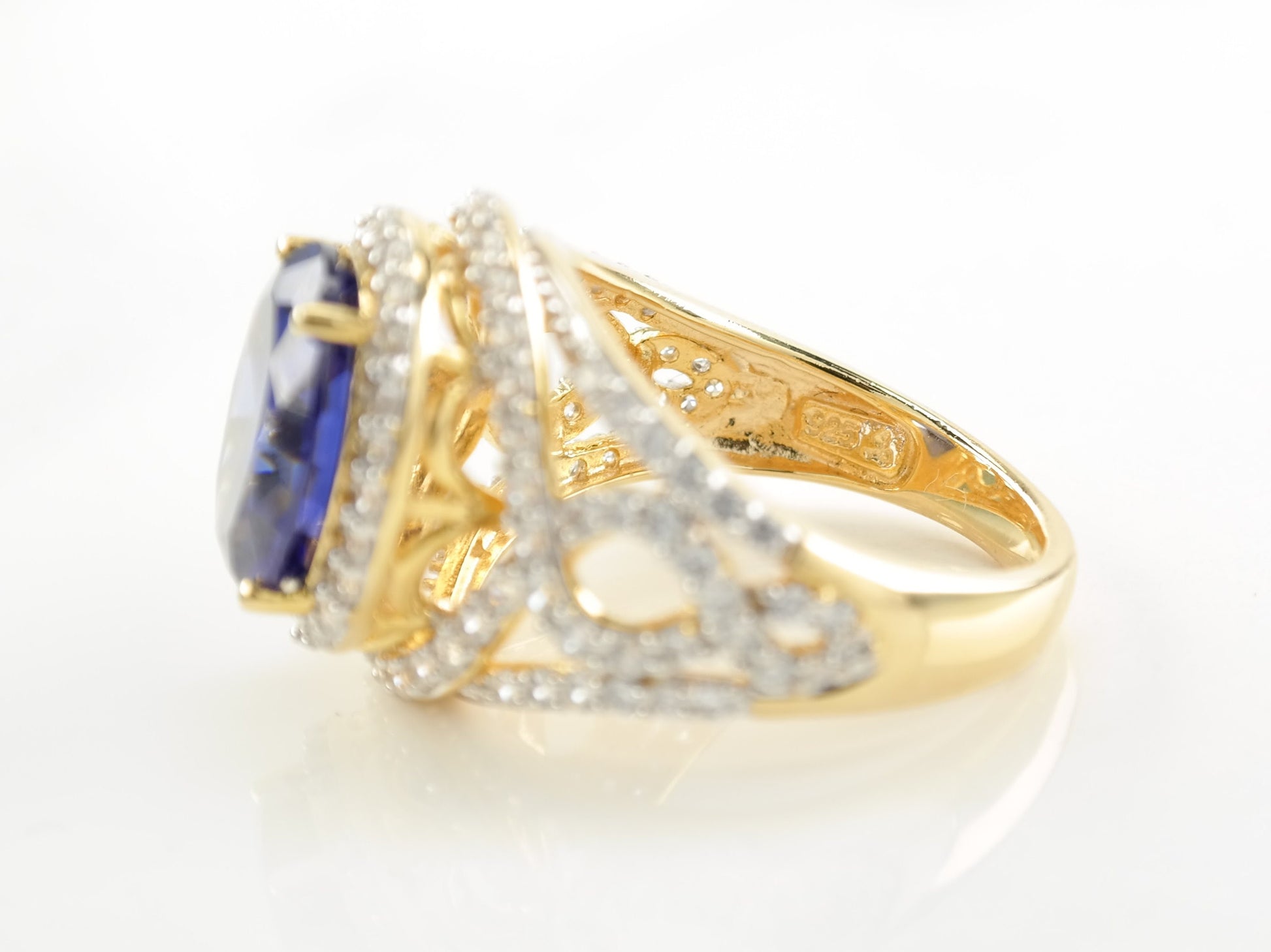 The Stone/Design is Blue CZ, Gold Plated