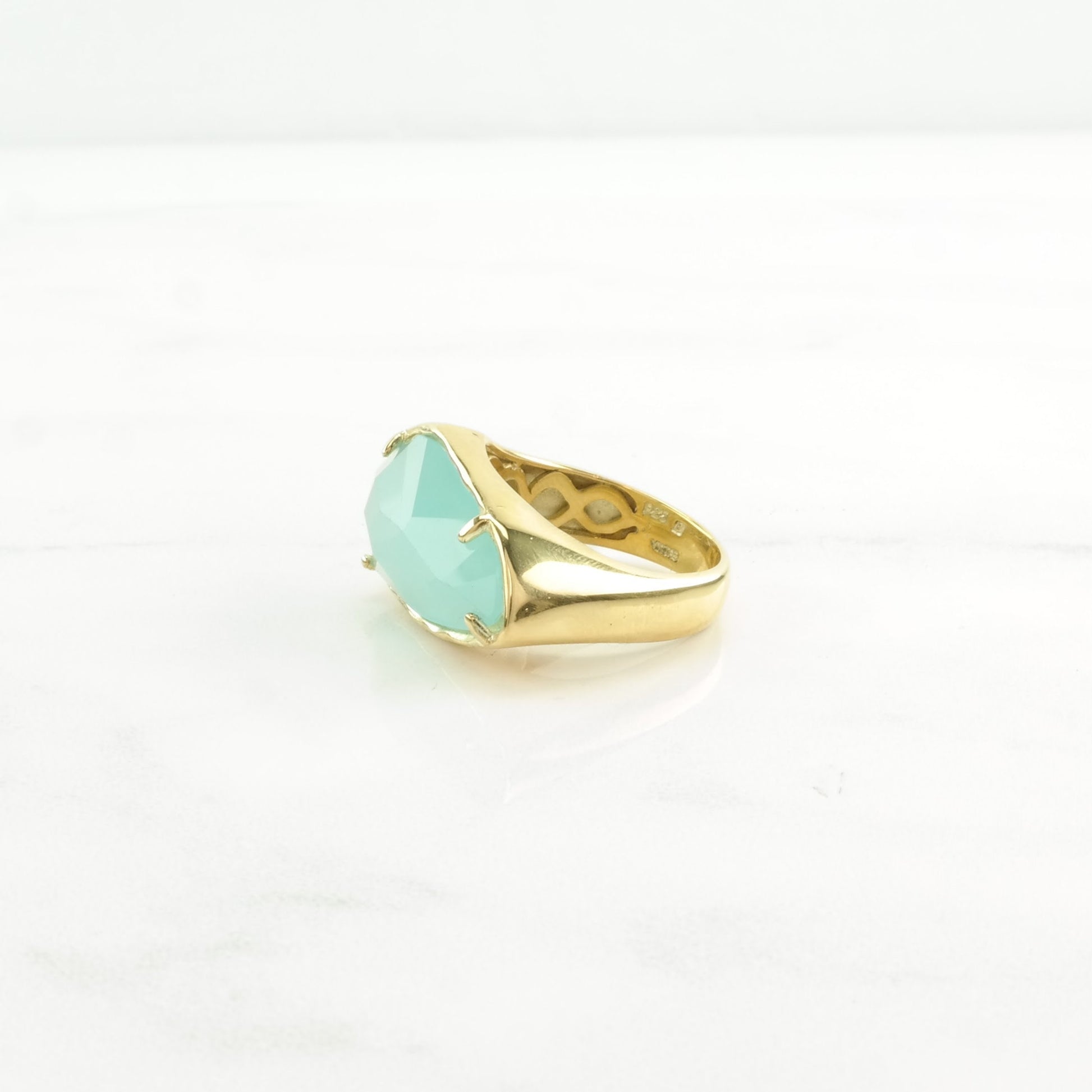 The Stone/Design is Blue Chalcedony Gold Gilded - Natural, industry standard treatment if any