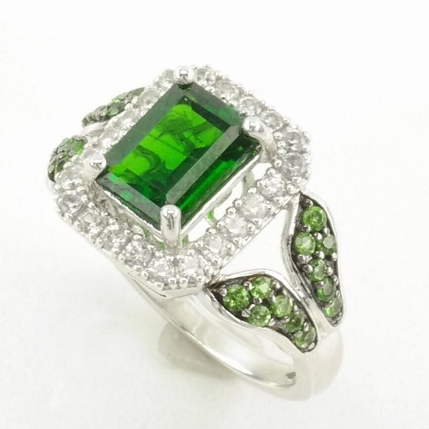Vintage Sterling Silver Ring Chrome Diopside Leaf Green Size 5
