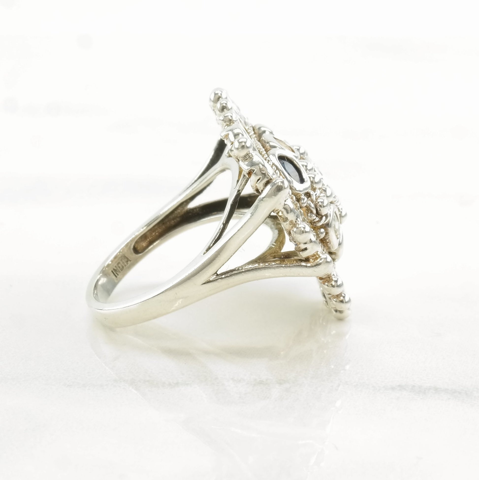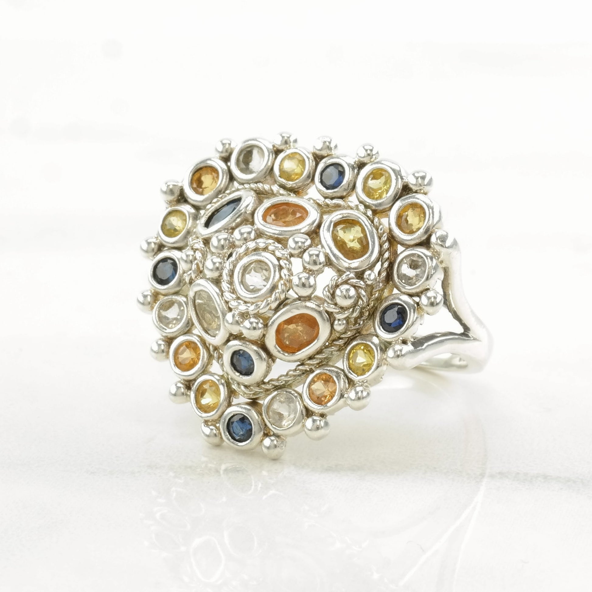 Vintage Sterling Silver Ring Citrine, Topaz, Sapphire Heart Size 7