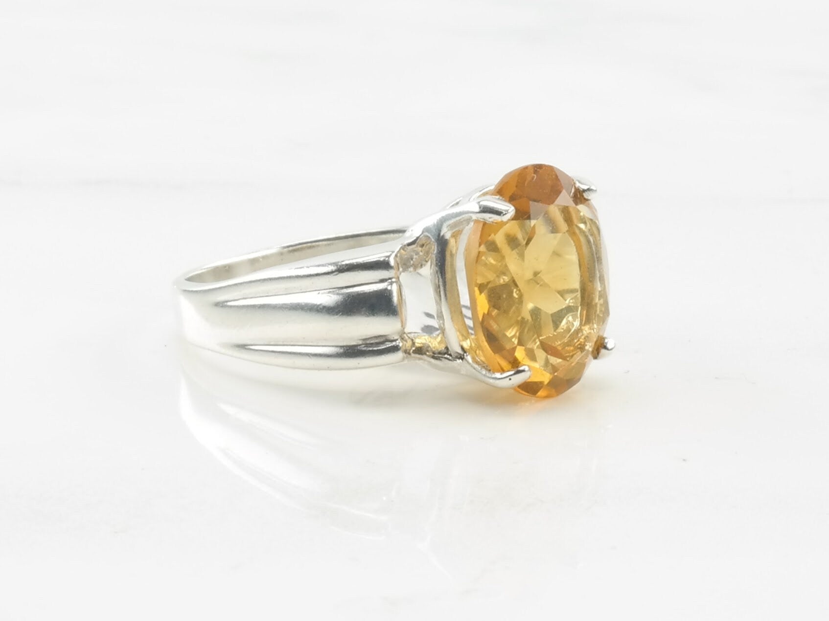 Vintage Sterling Silver Ring Citrine Yellow Size 7 1/2