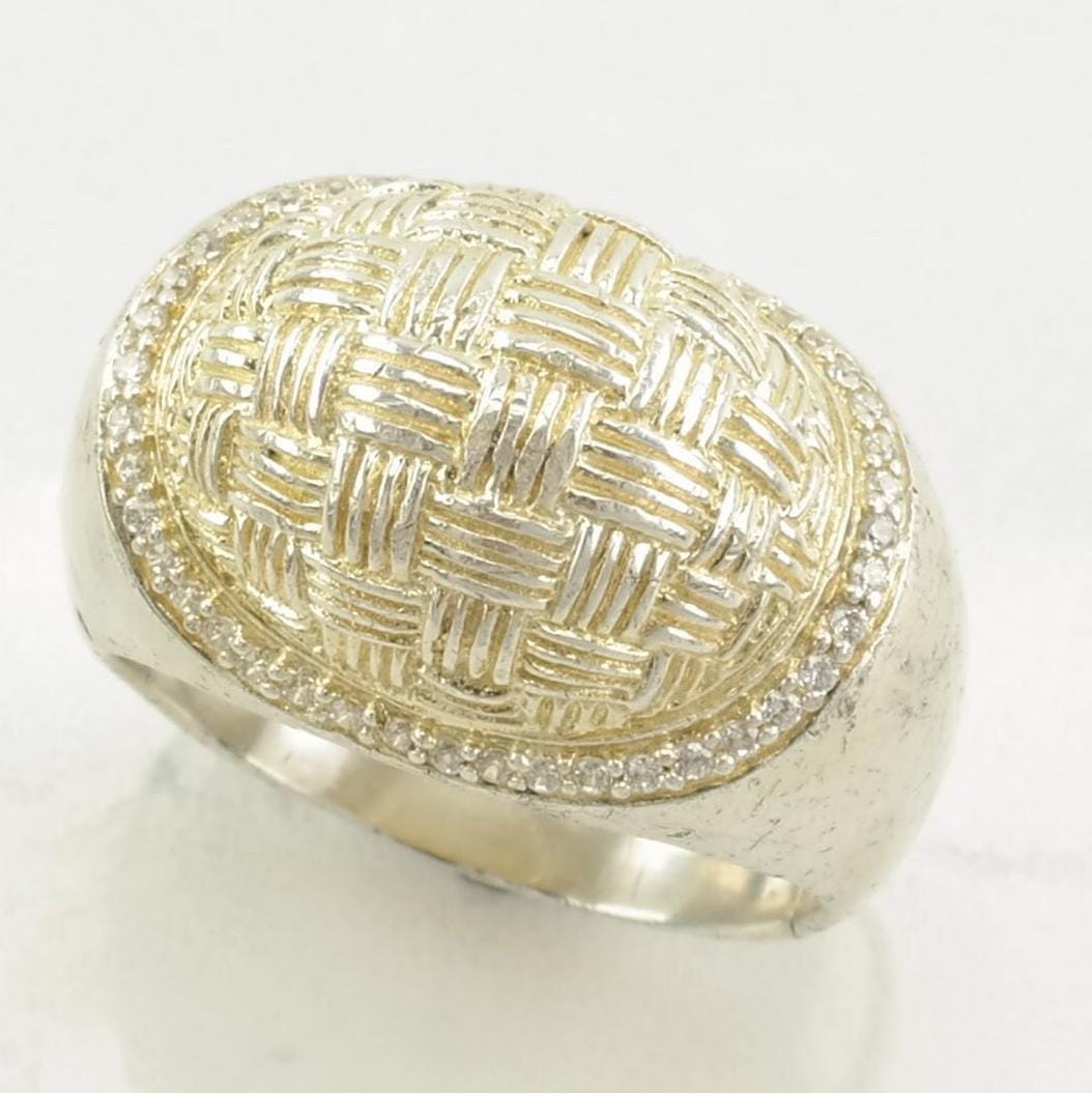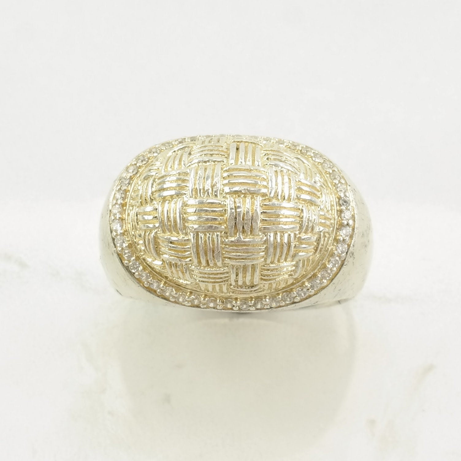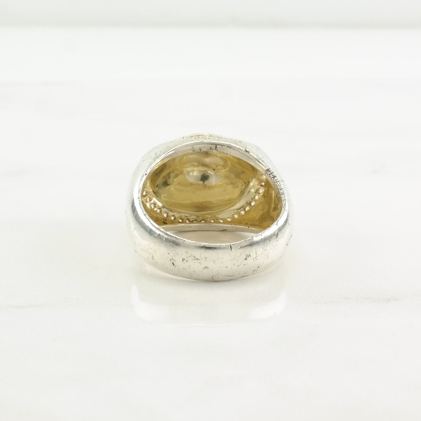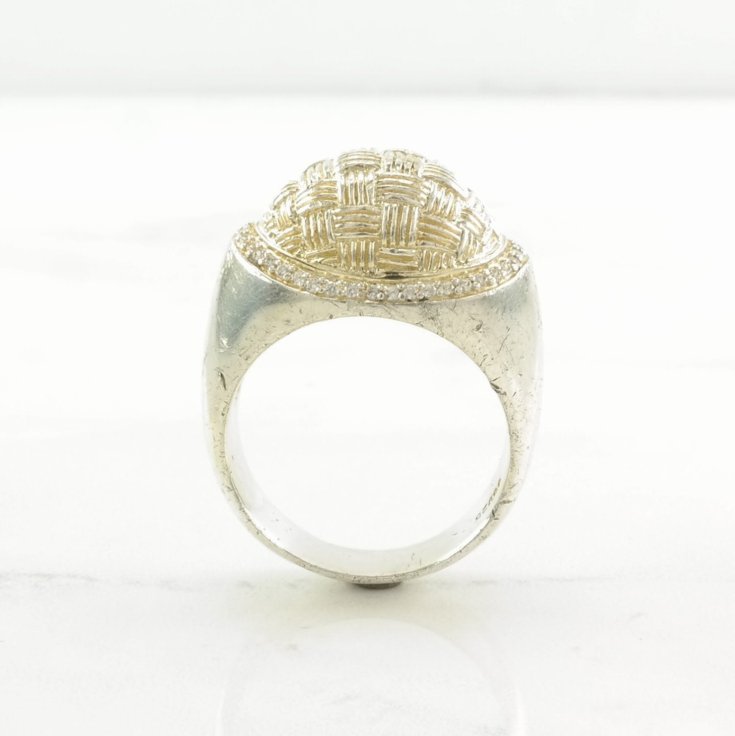 Vintage Sterling Silver Ring, CZ Gold Tone Accent Size 9 1/4