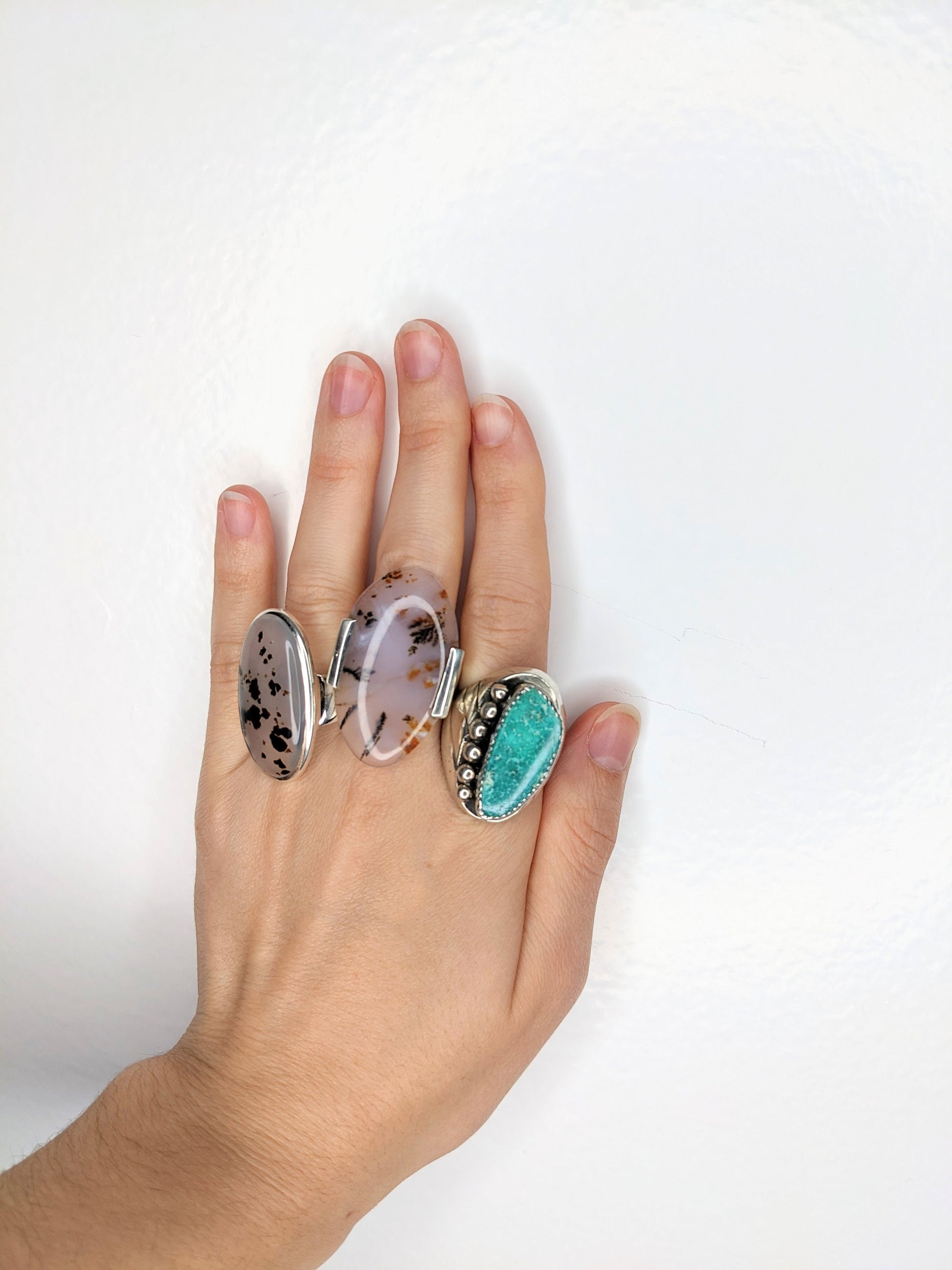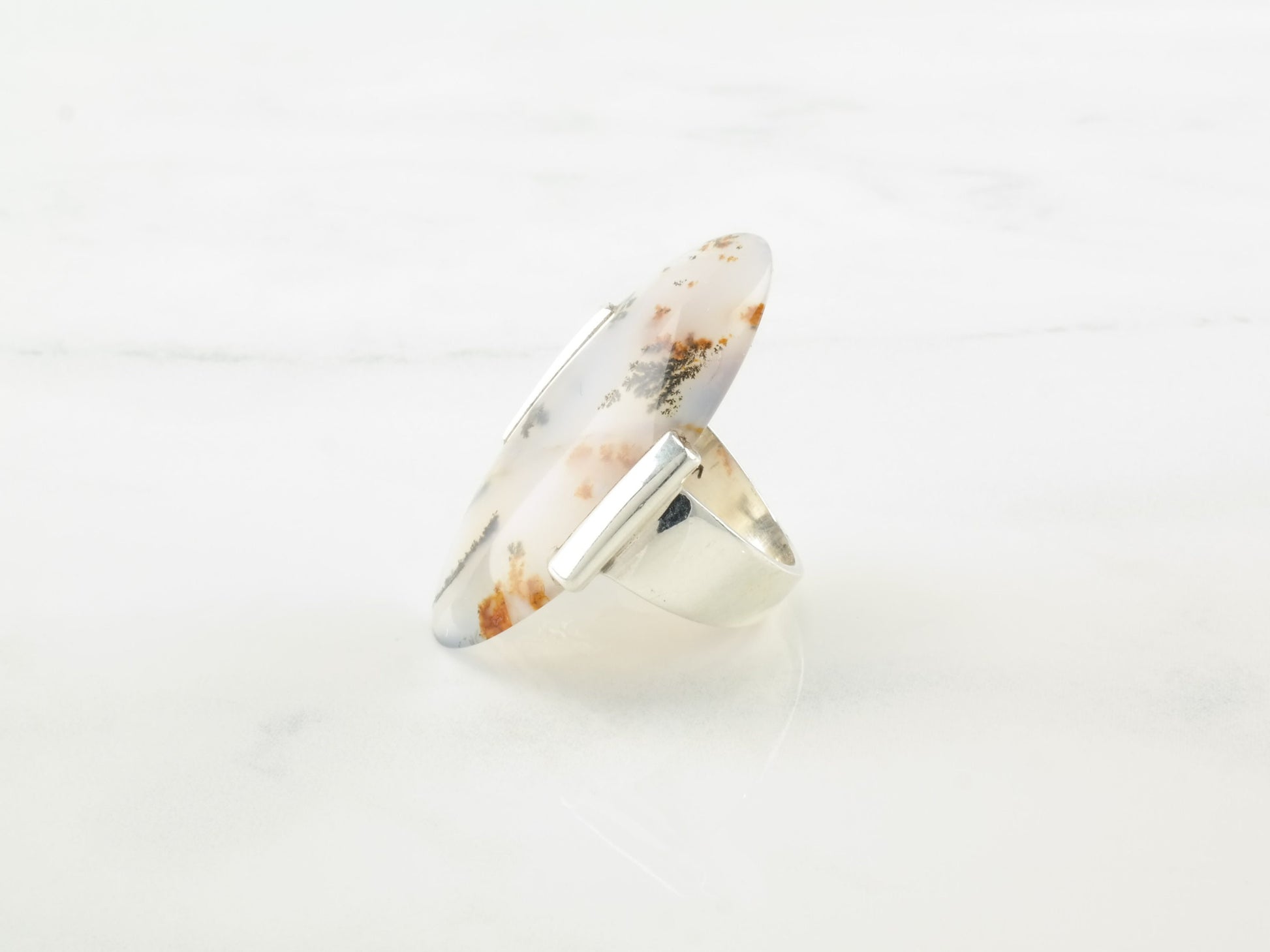 Vintage Sterling Silver Ring Dendritic Agate Size 7 3/4
