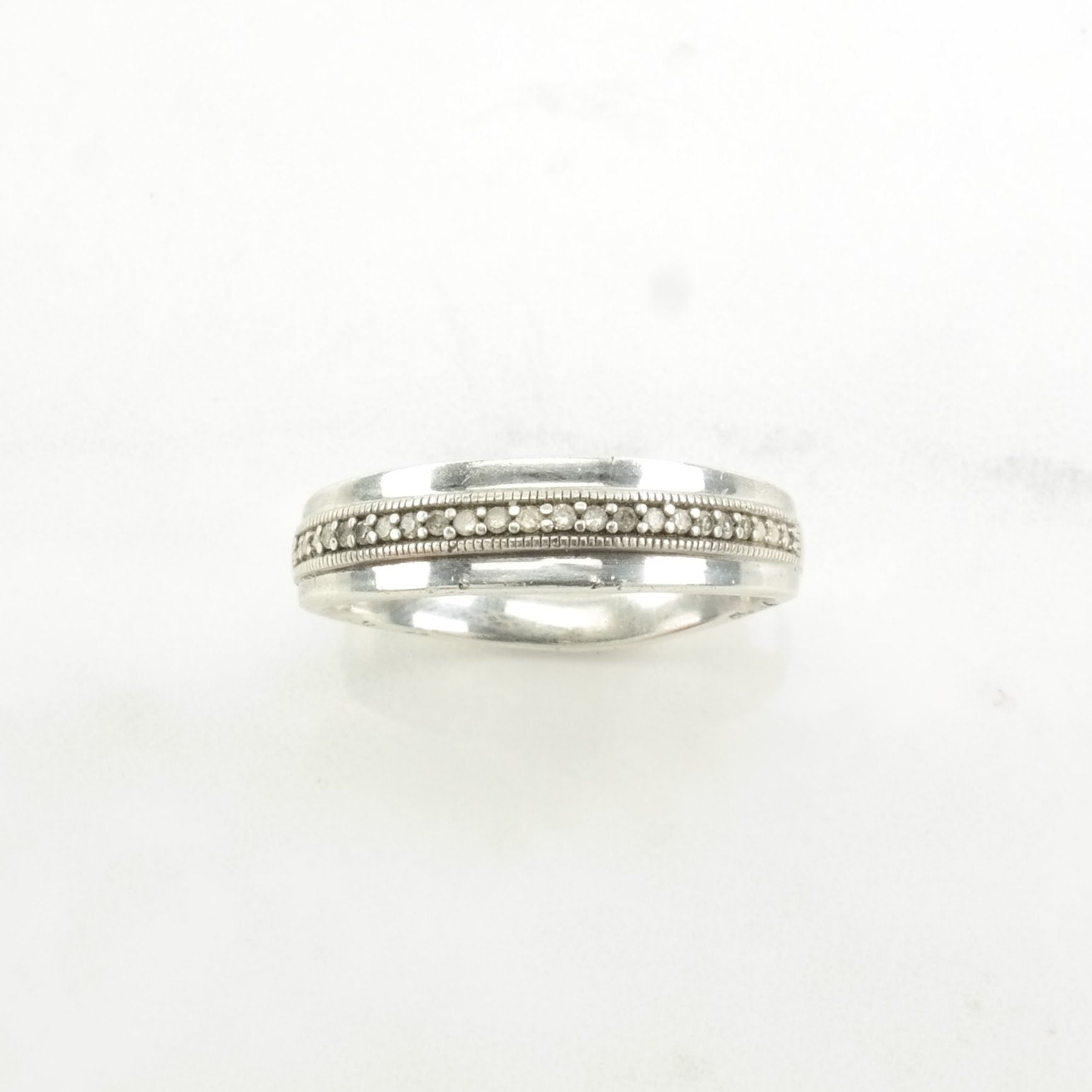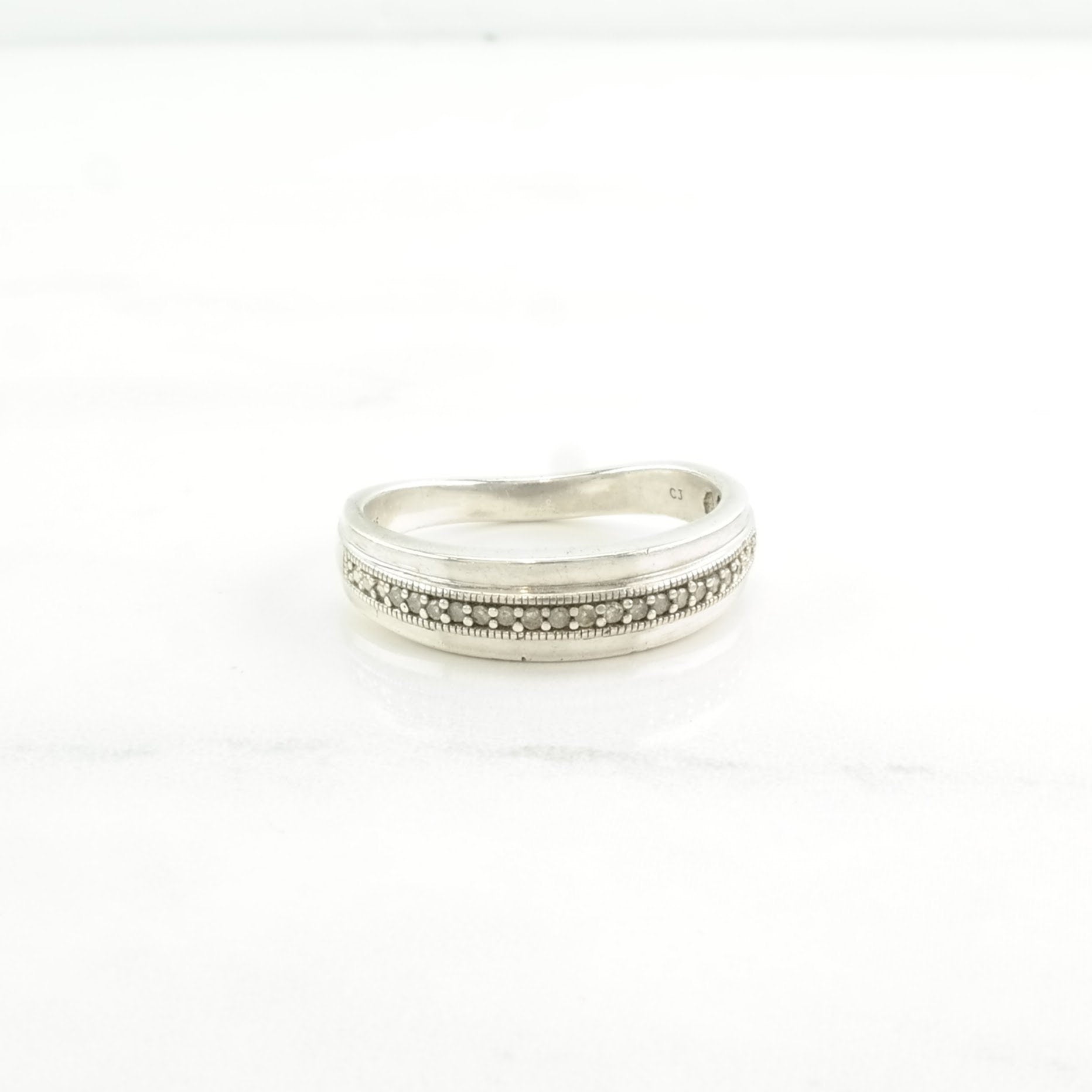 Vintage Sterling Silver Ring Diamond Band Size 10
