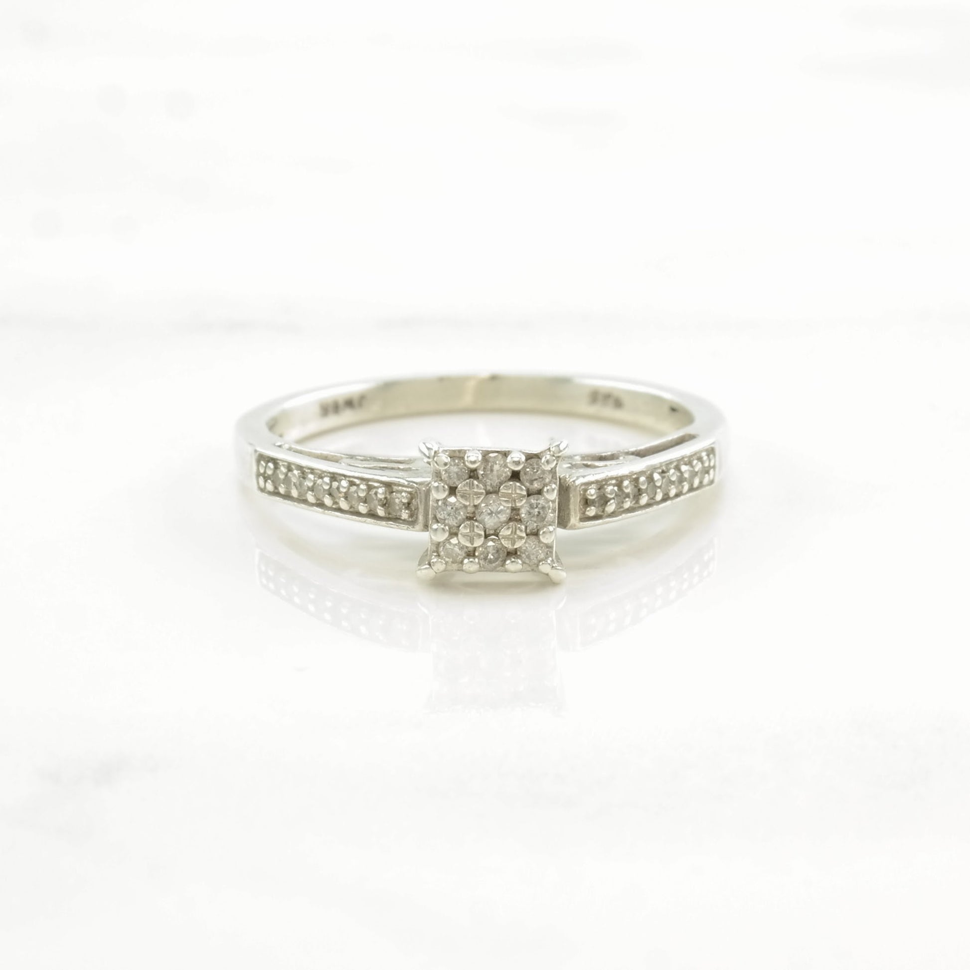 Vintage Sterling Silver Ring Diamond Dainty Size 6 3/4