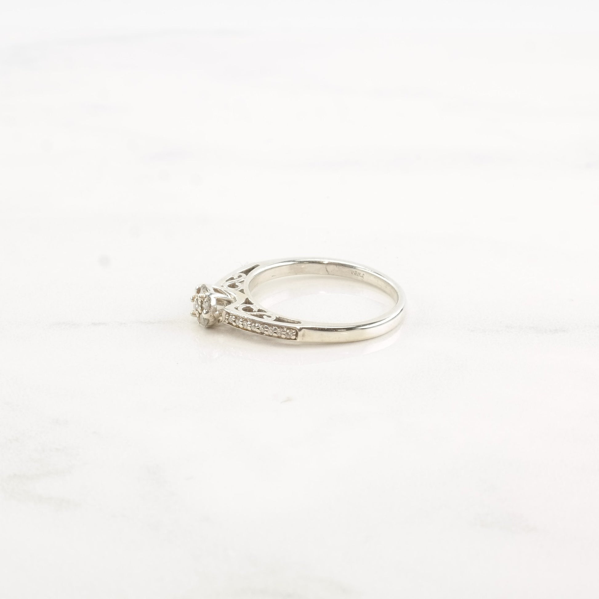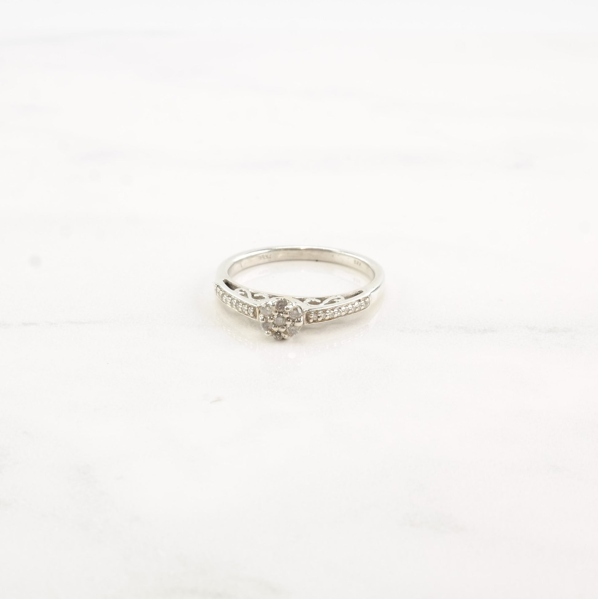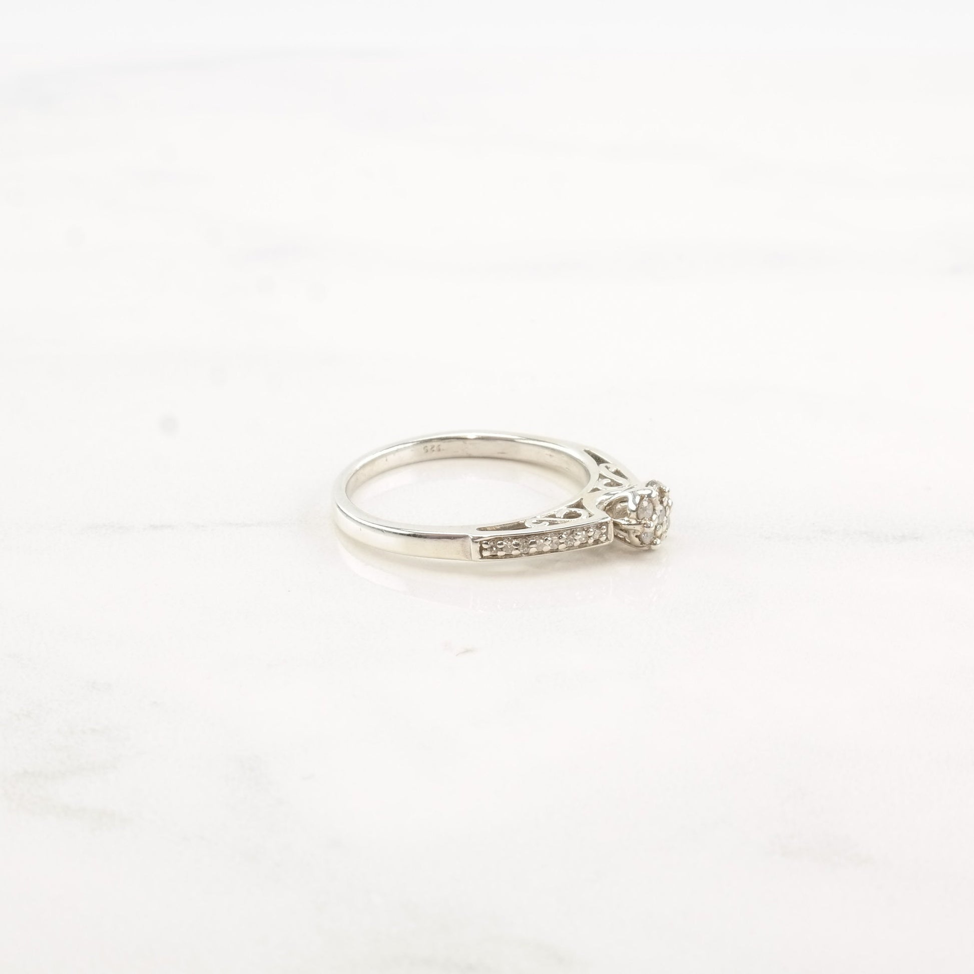 Vintage Sterling Silver Ring Diamond Flower Filigree Size 6 3/4