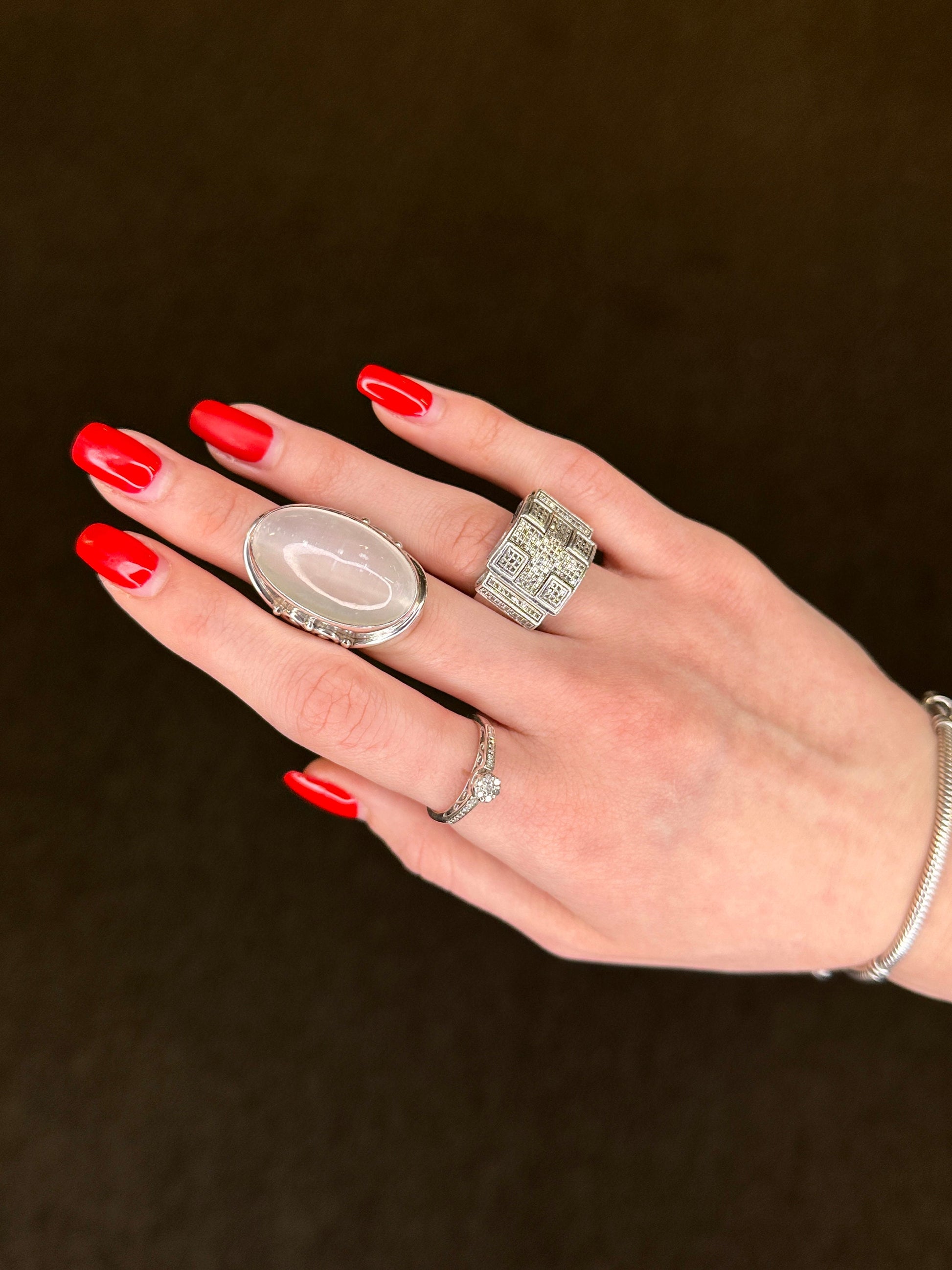 The Stone/Design is a White Diamond Flower, Filigree Natural, industry-standard treatment if any