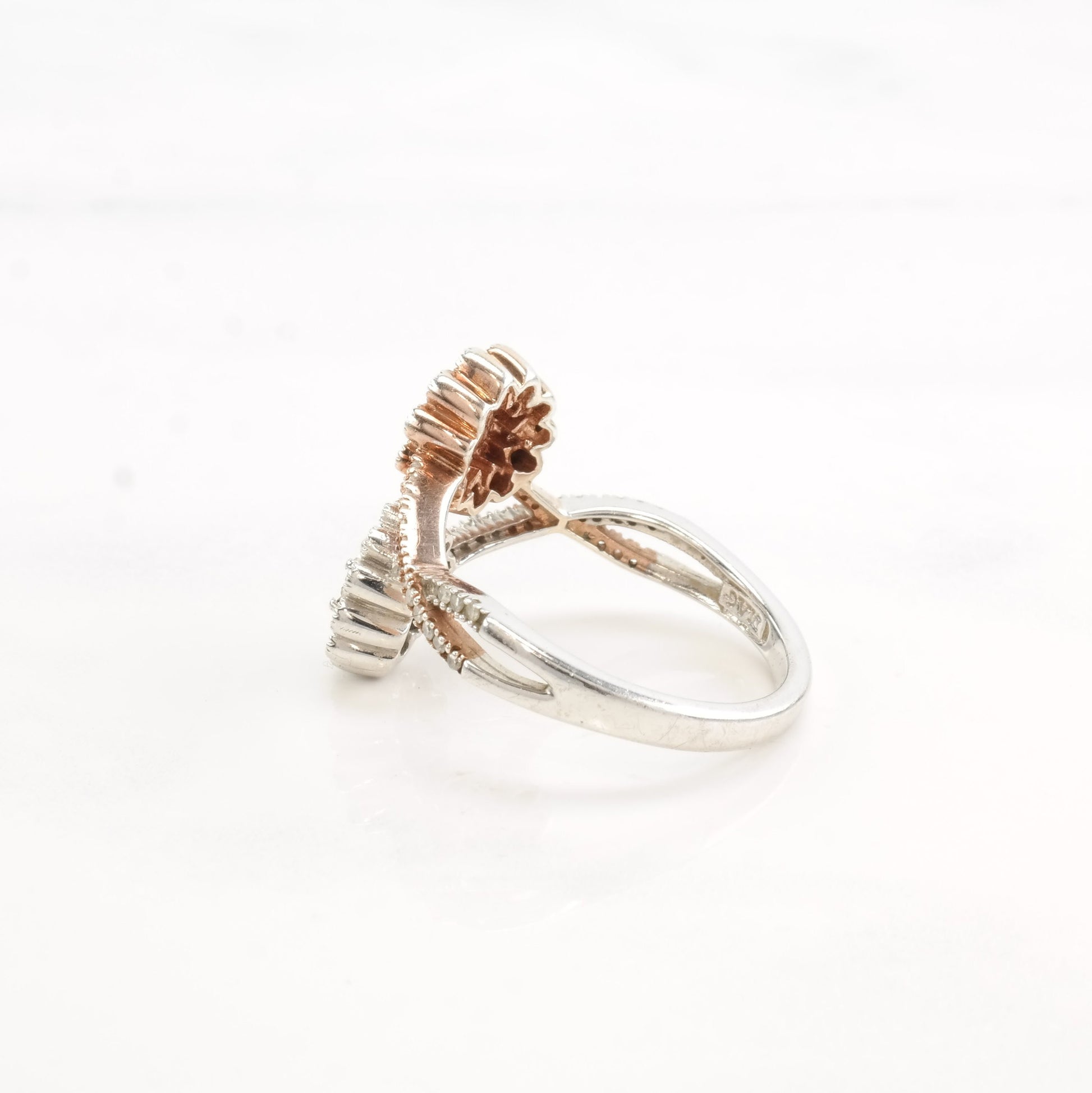 Vintage Sterling Silver Ring Diamond Flowers Rose Gold Plate Size 9