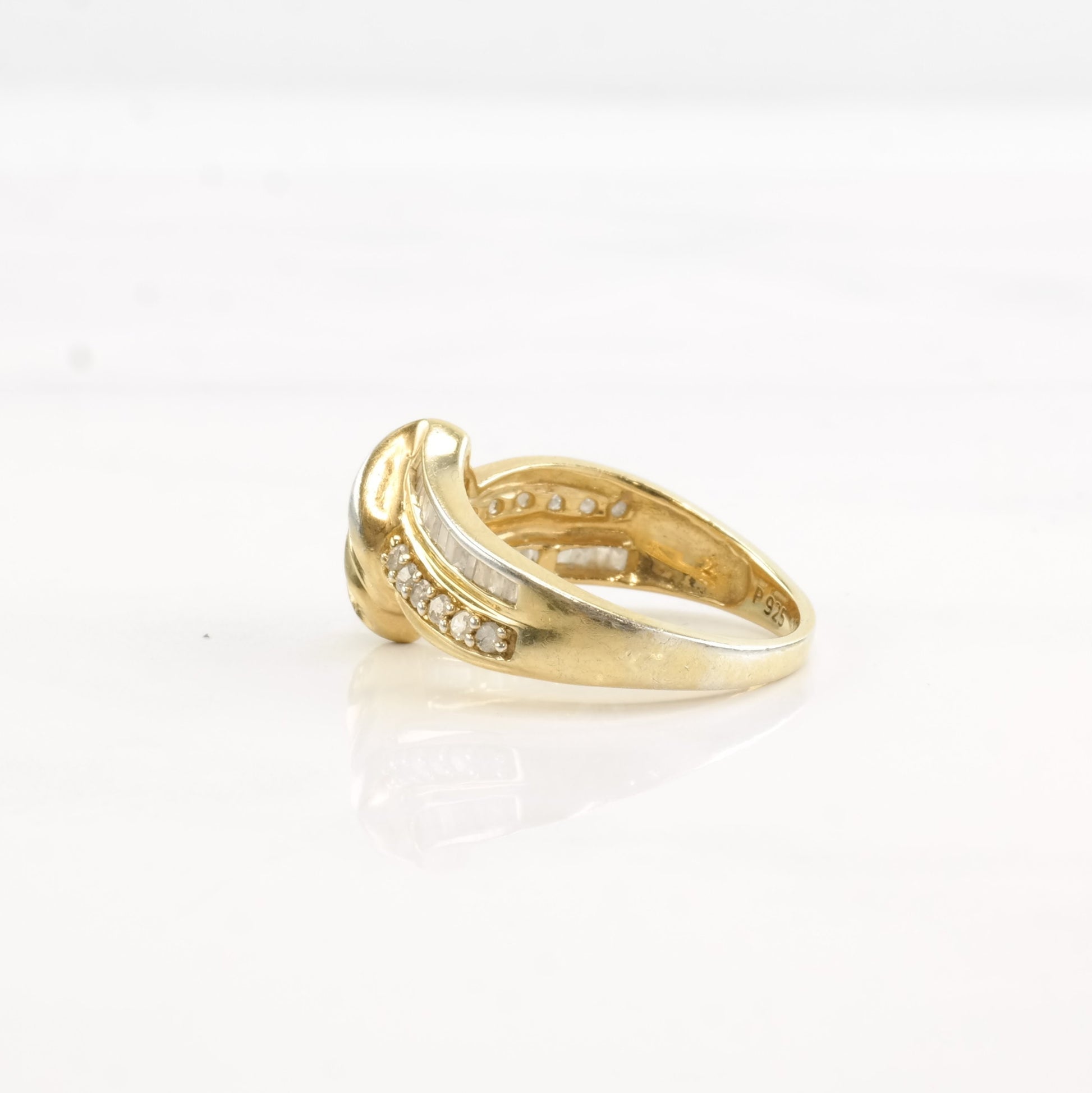 Vintage Sterling Silver Ring Diamond Gold Plated Size 5 3/4