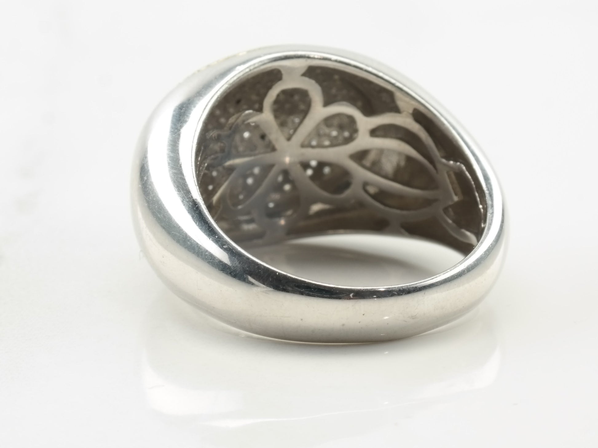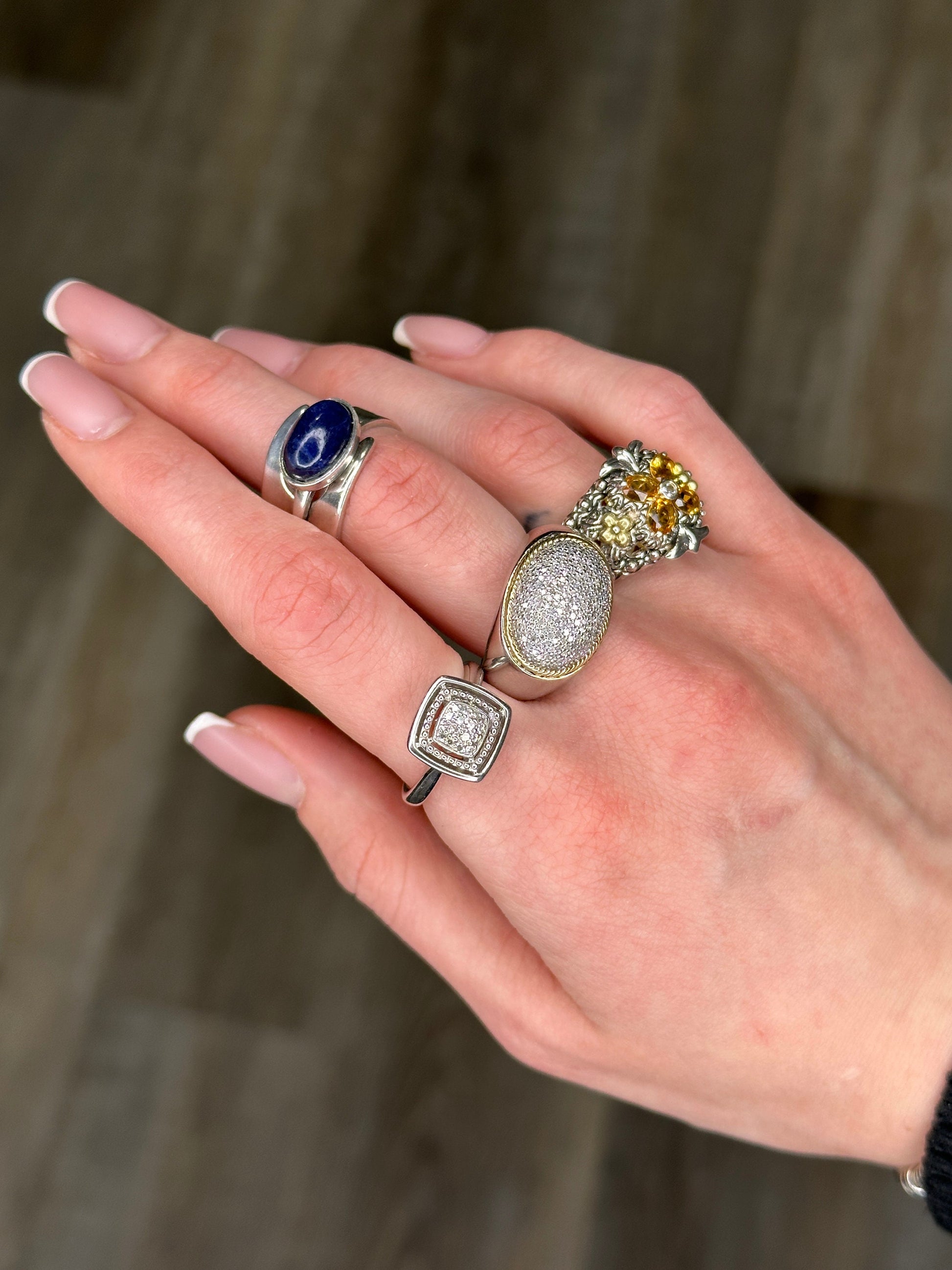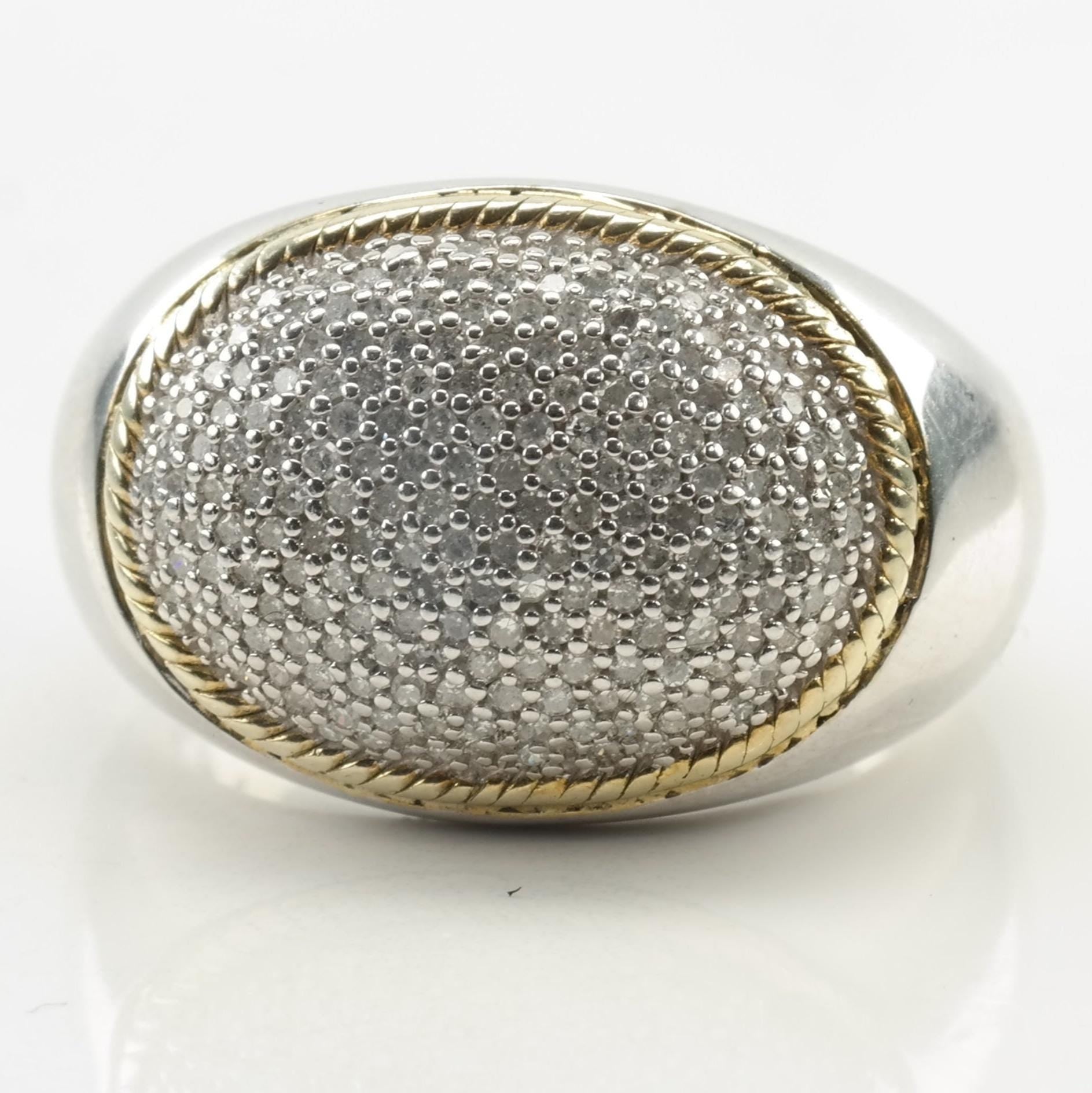 Vintage Sterling Silver Ring Diamond Oval Gold Accent White Size 8 1/4
