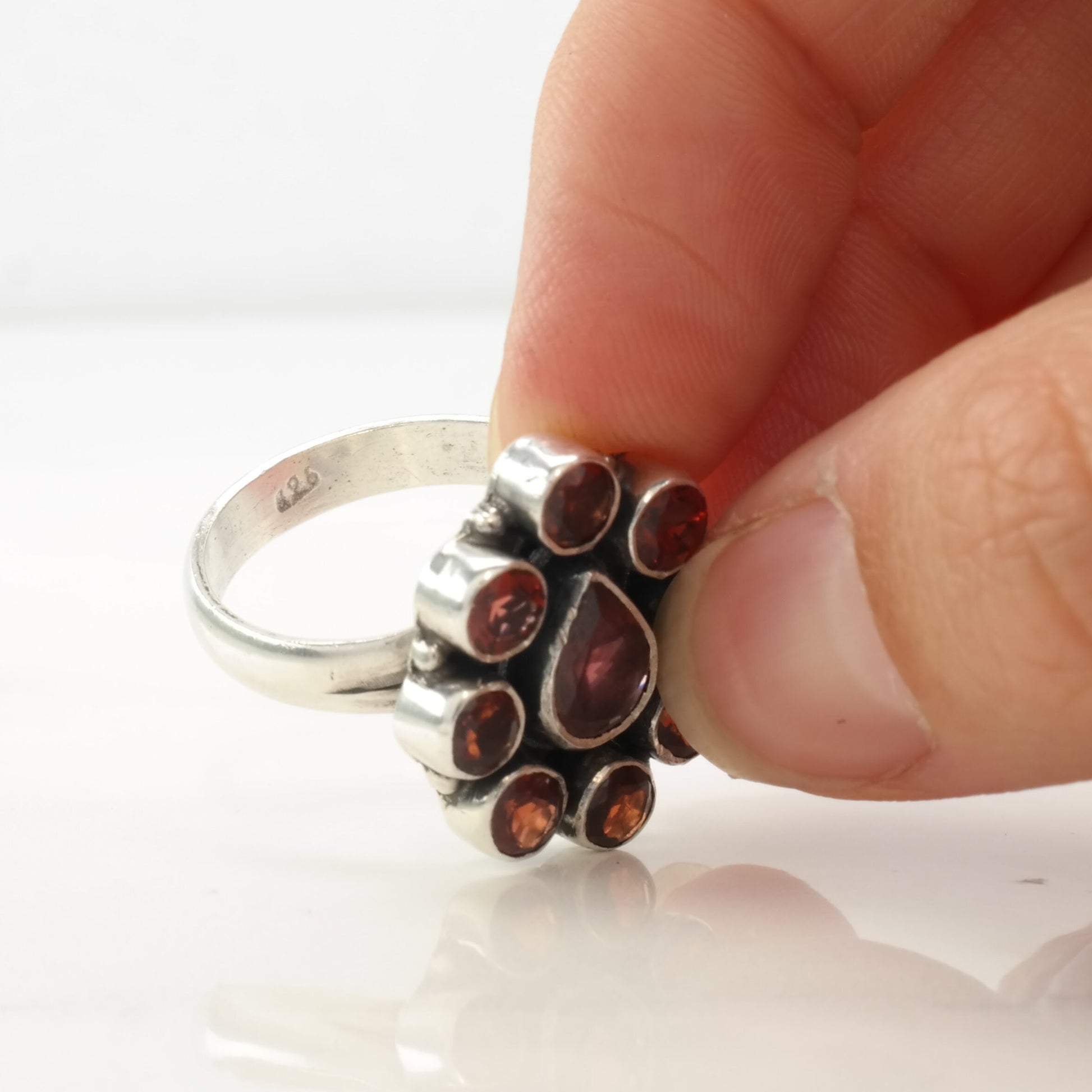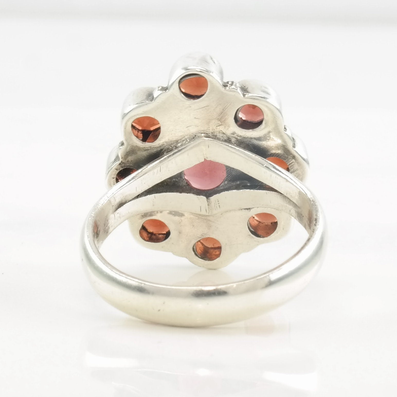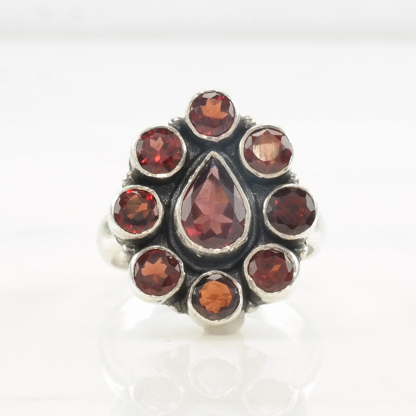 Vintage Sterling Silver Ring Garnet Cluster Size 7