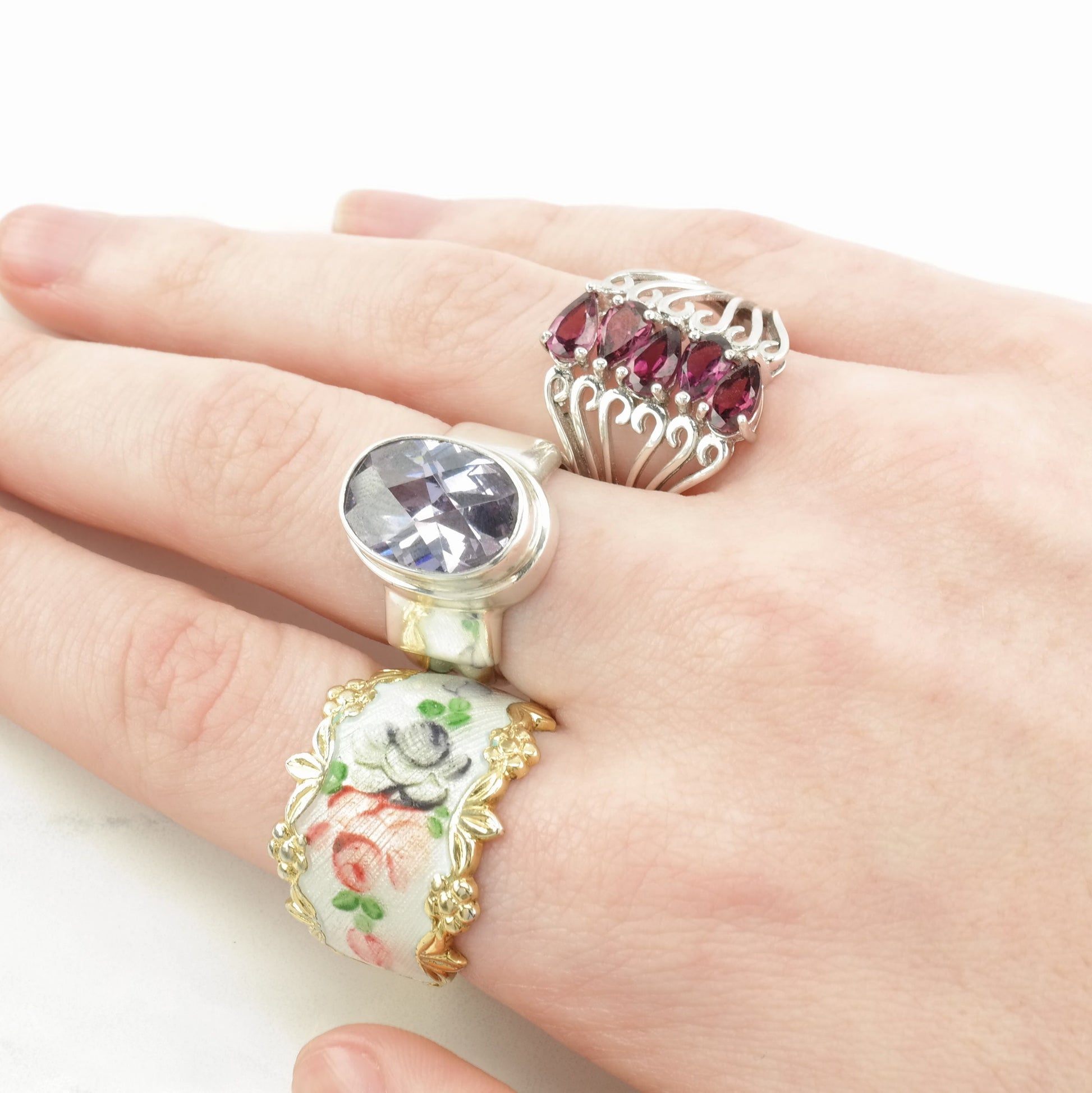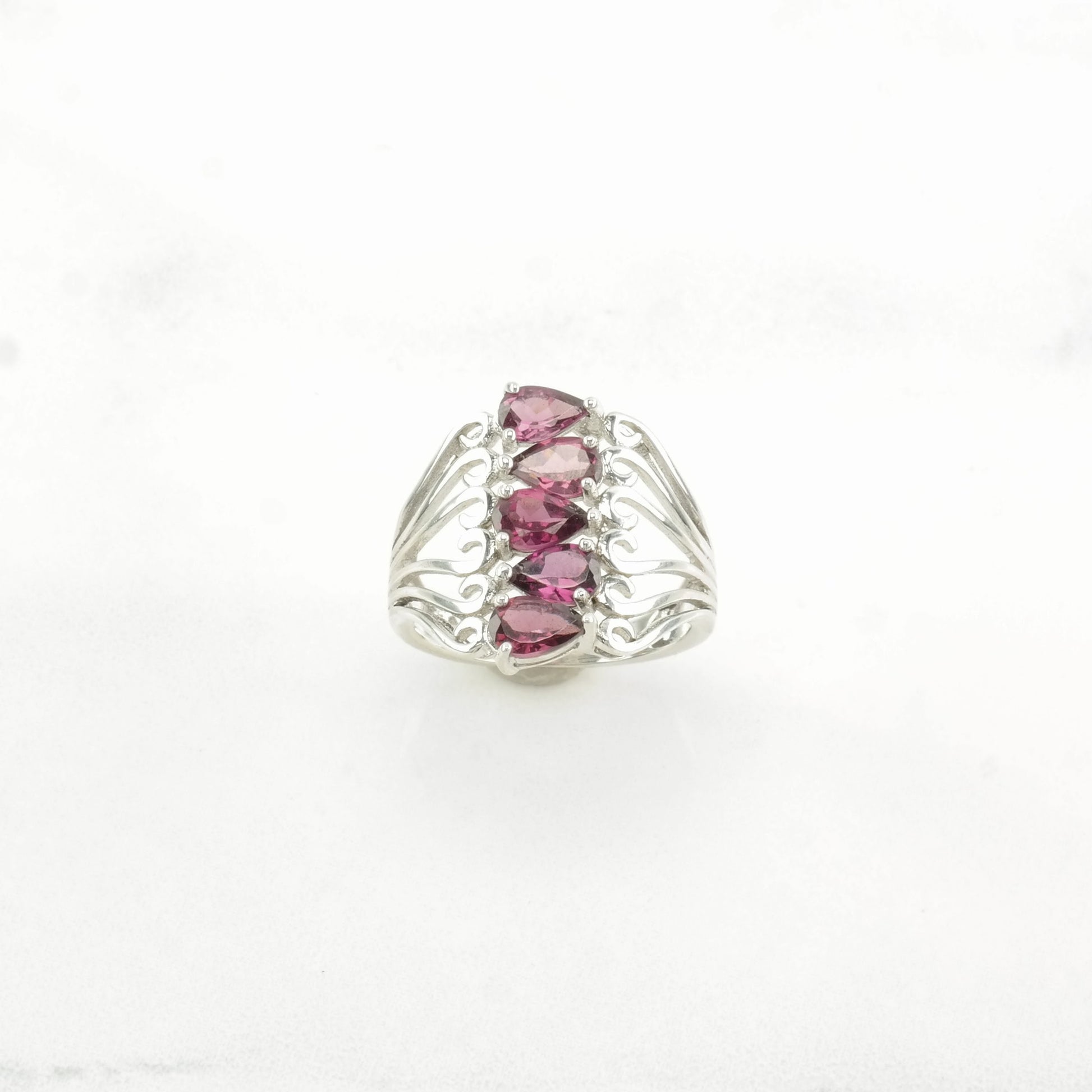 Vintage Sterling Silver Ring Garnet Pink Size 7