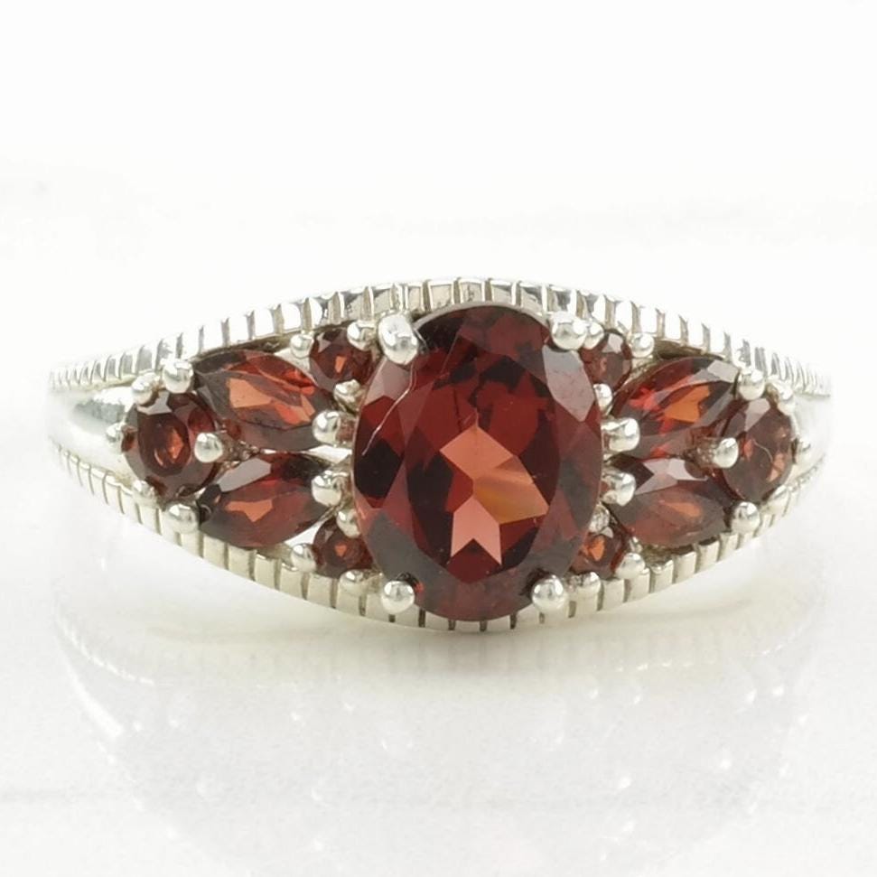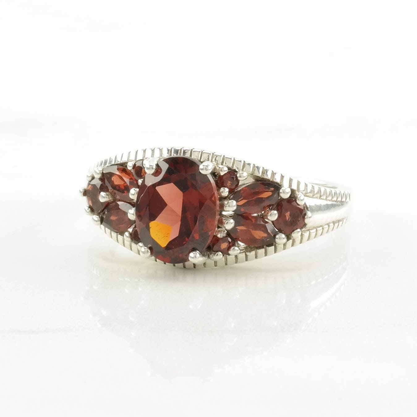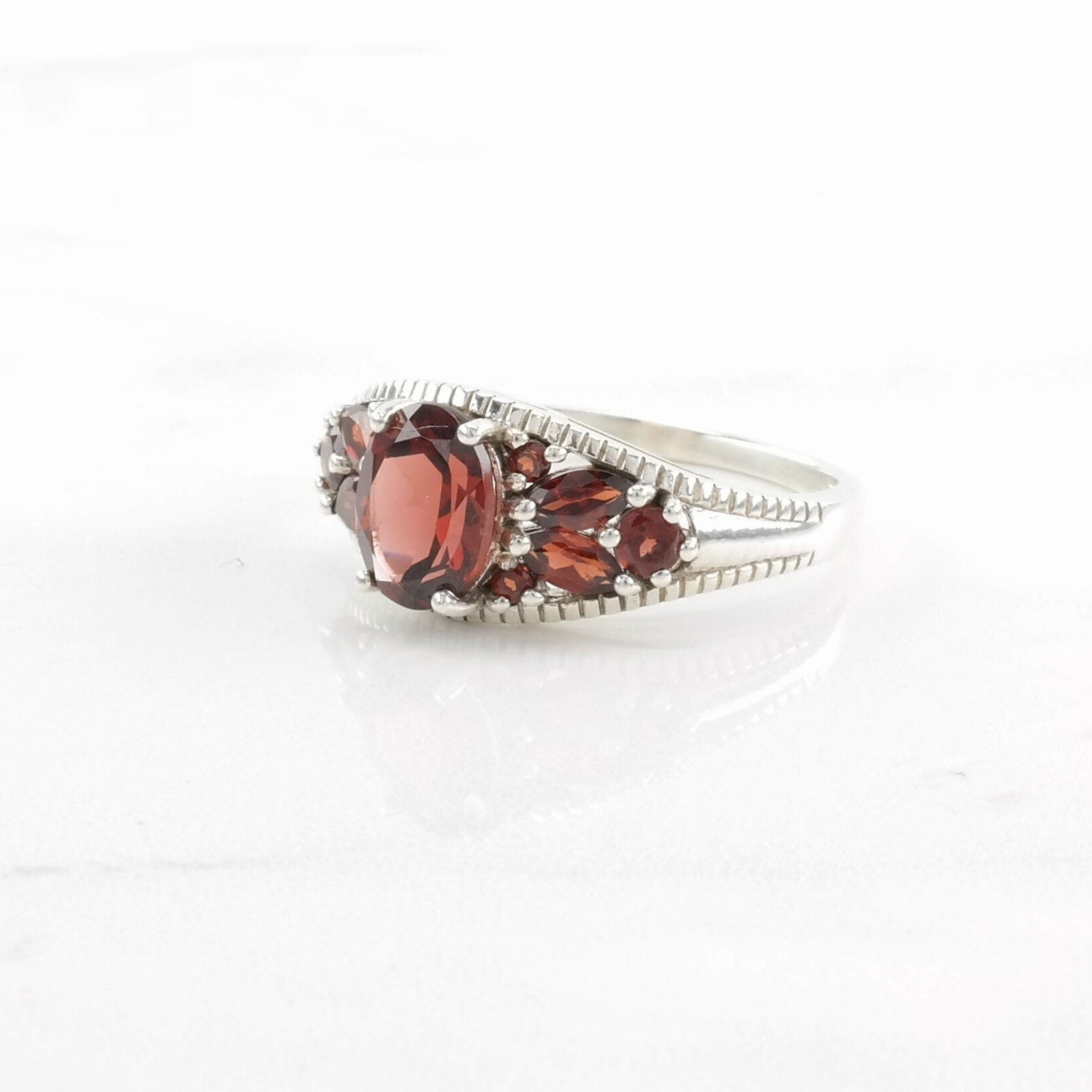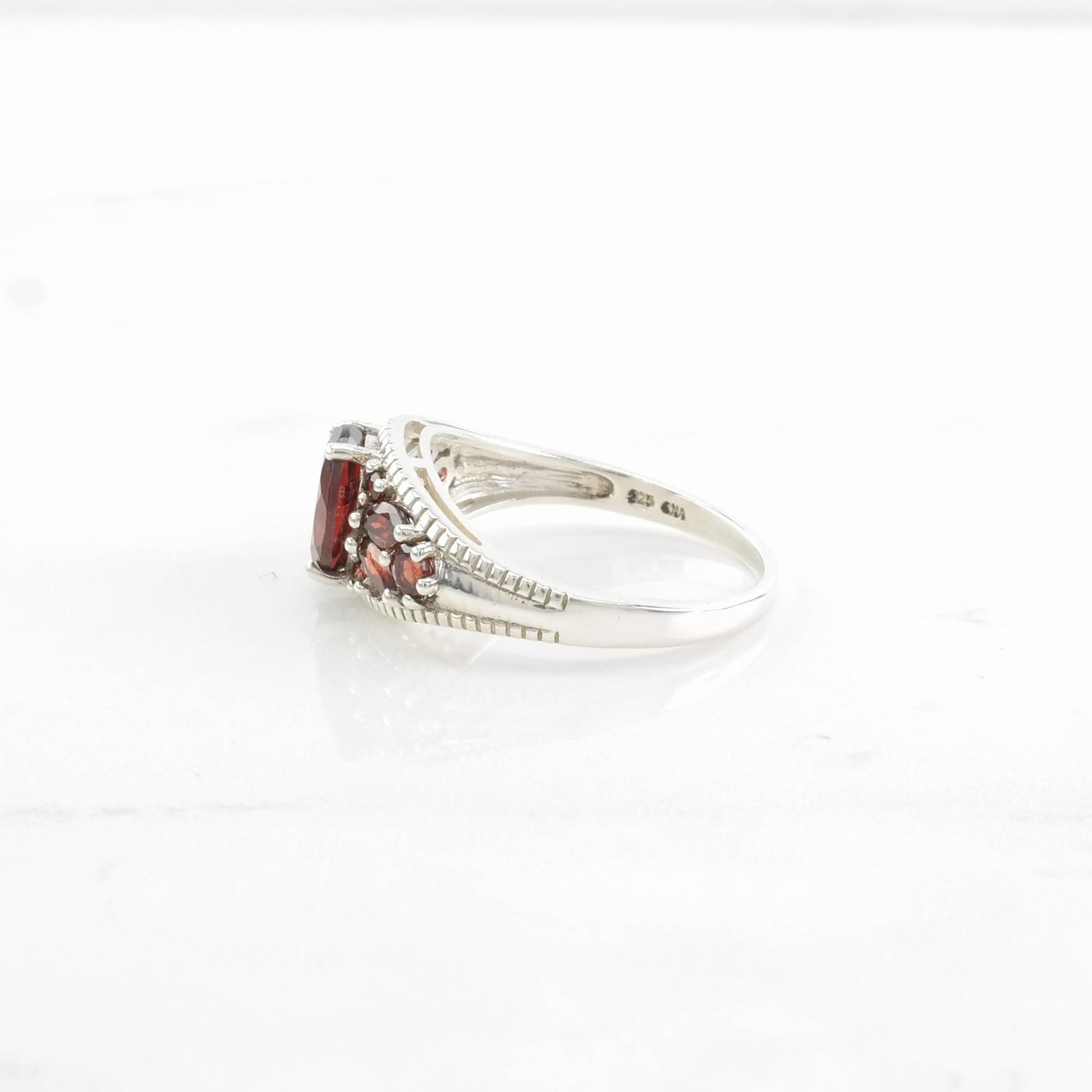 Vintage Sterling Silver Ring, Garnet Red Size 10