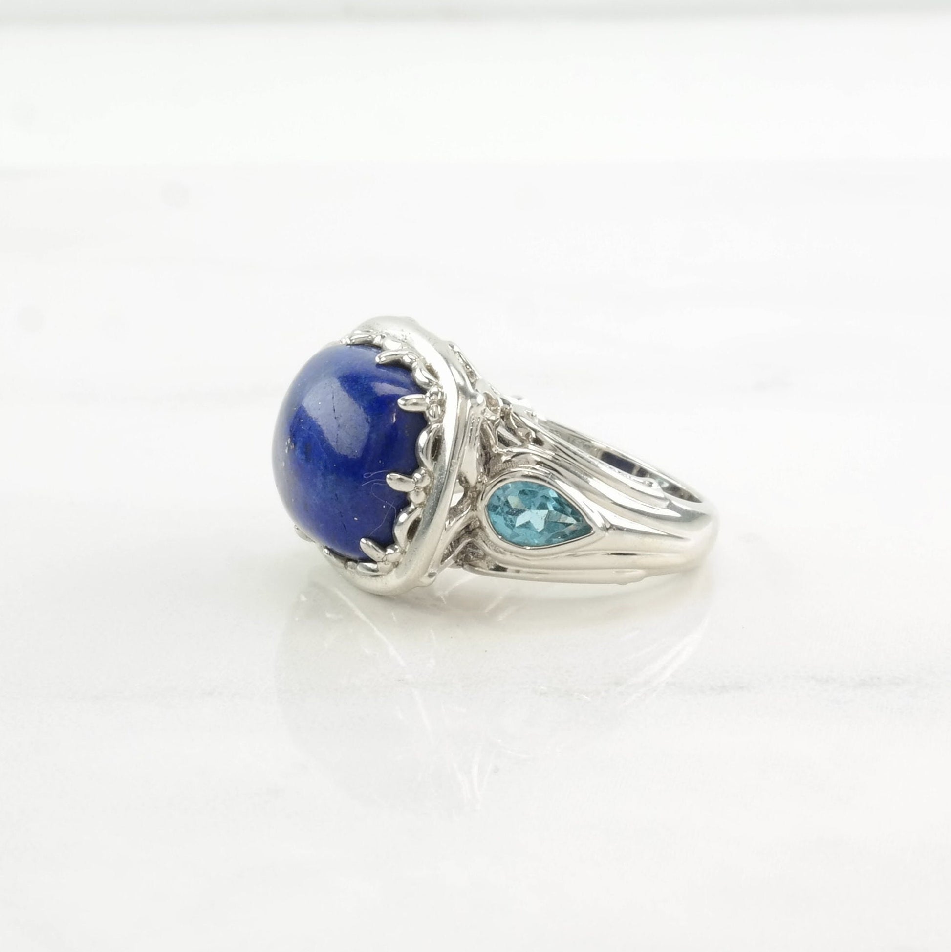 Vintage Sterling Silver Ring Lapis Lazuli Topaz Blue Size 5