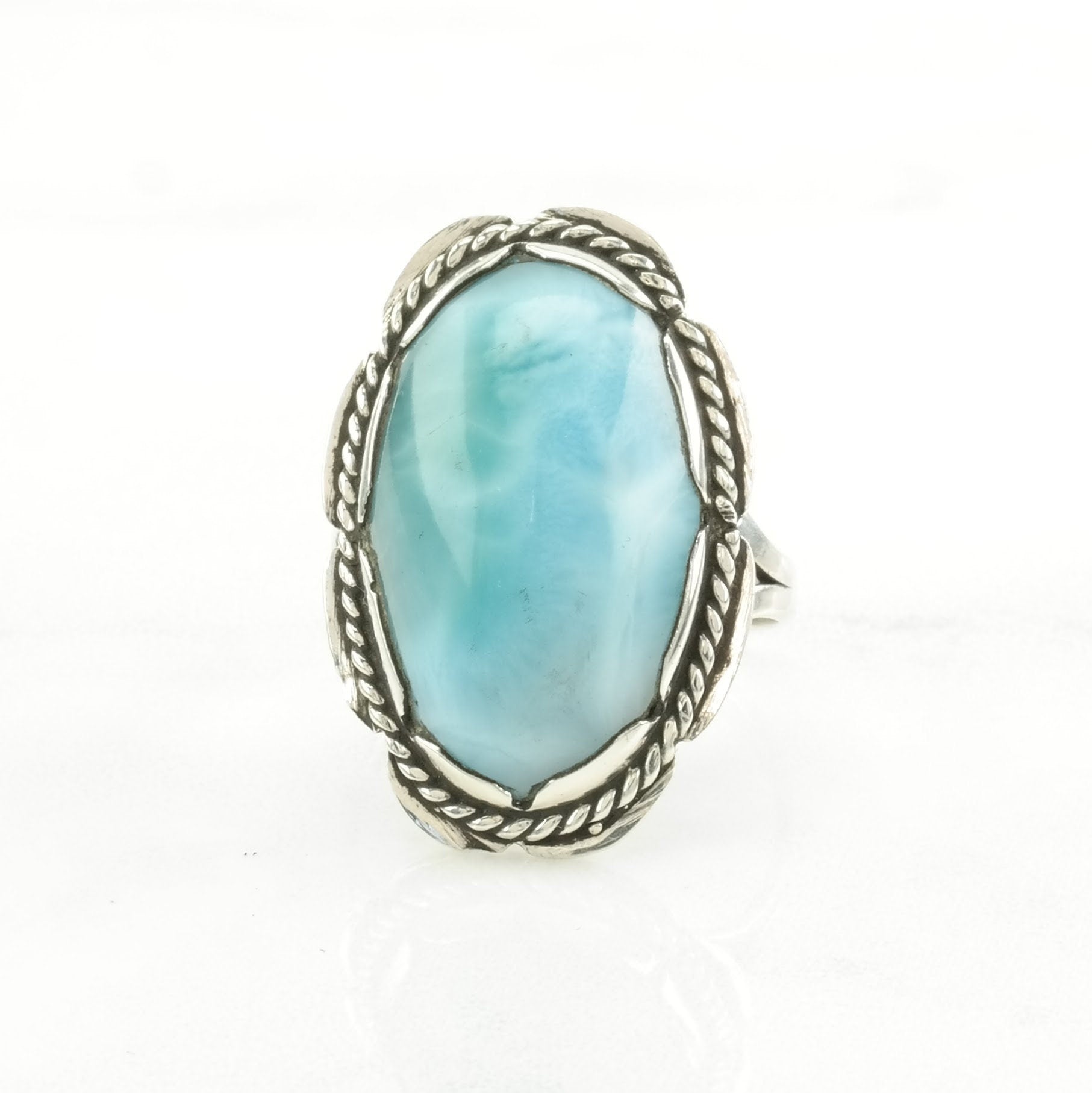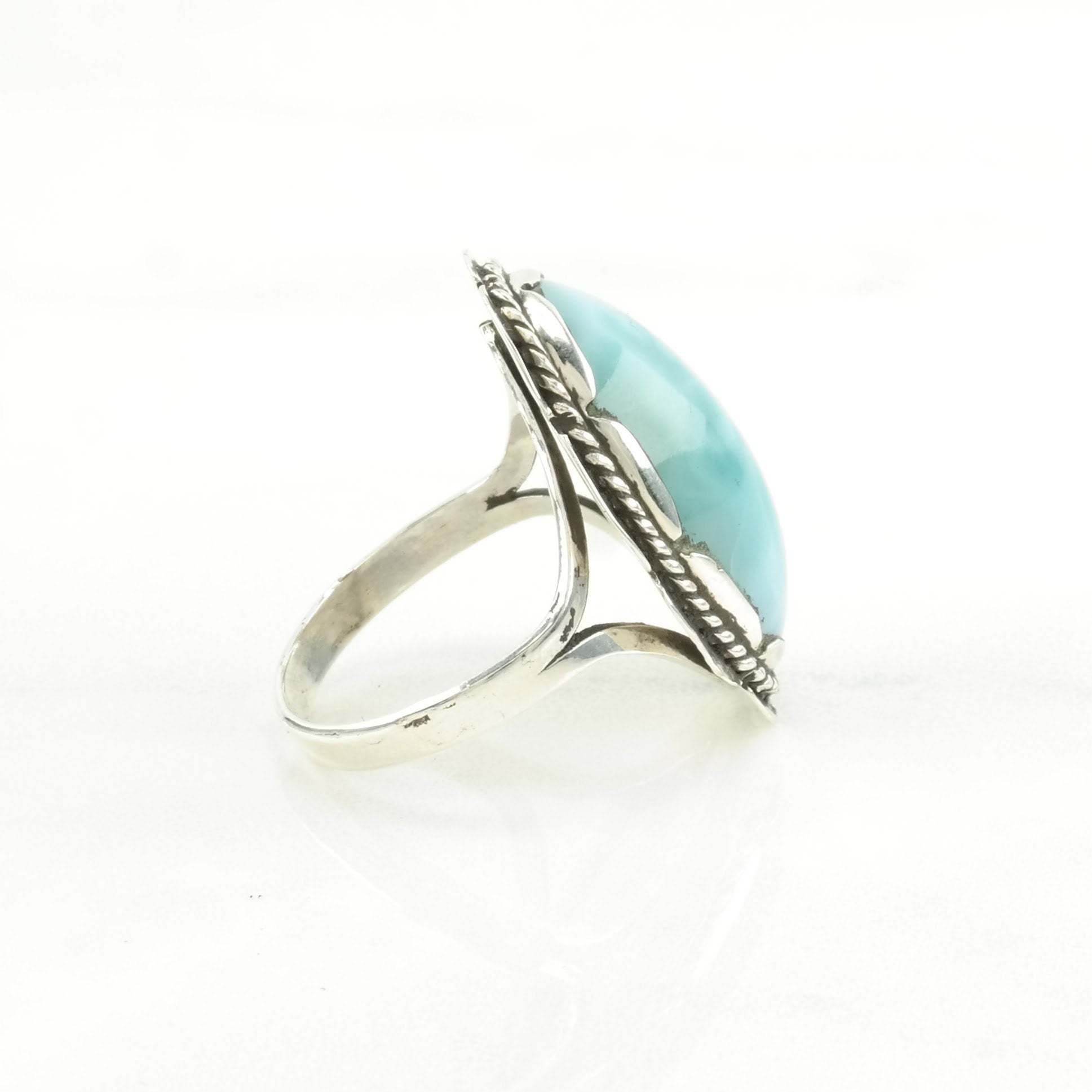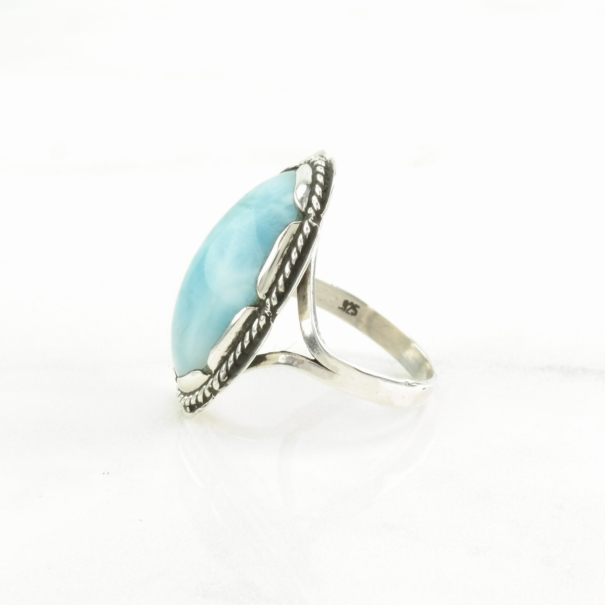 Vintage Sterling Silver Ring Larimar Rope Detail Blue Size 7 1/2