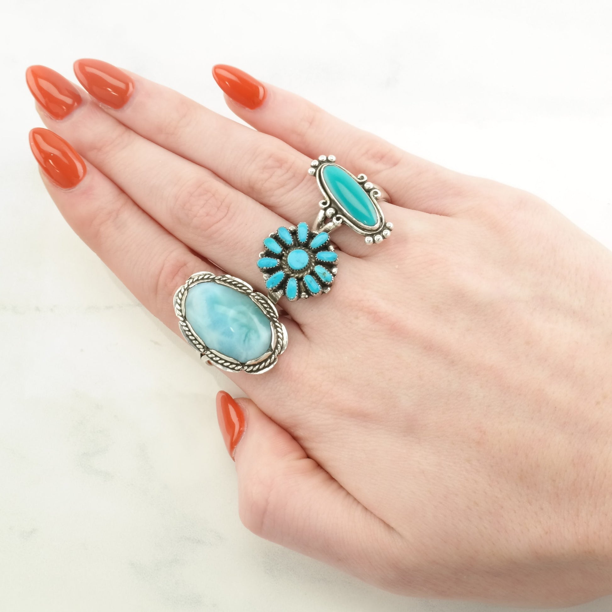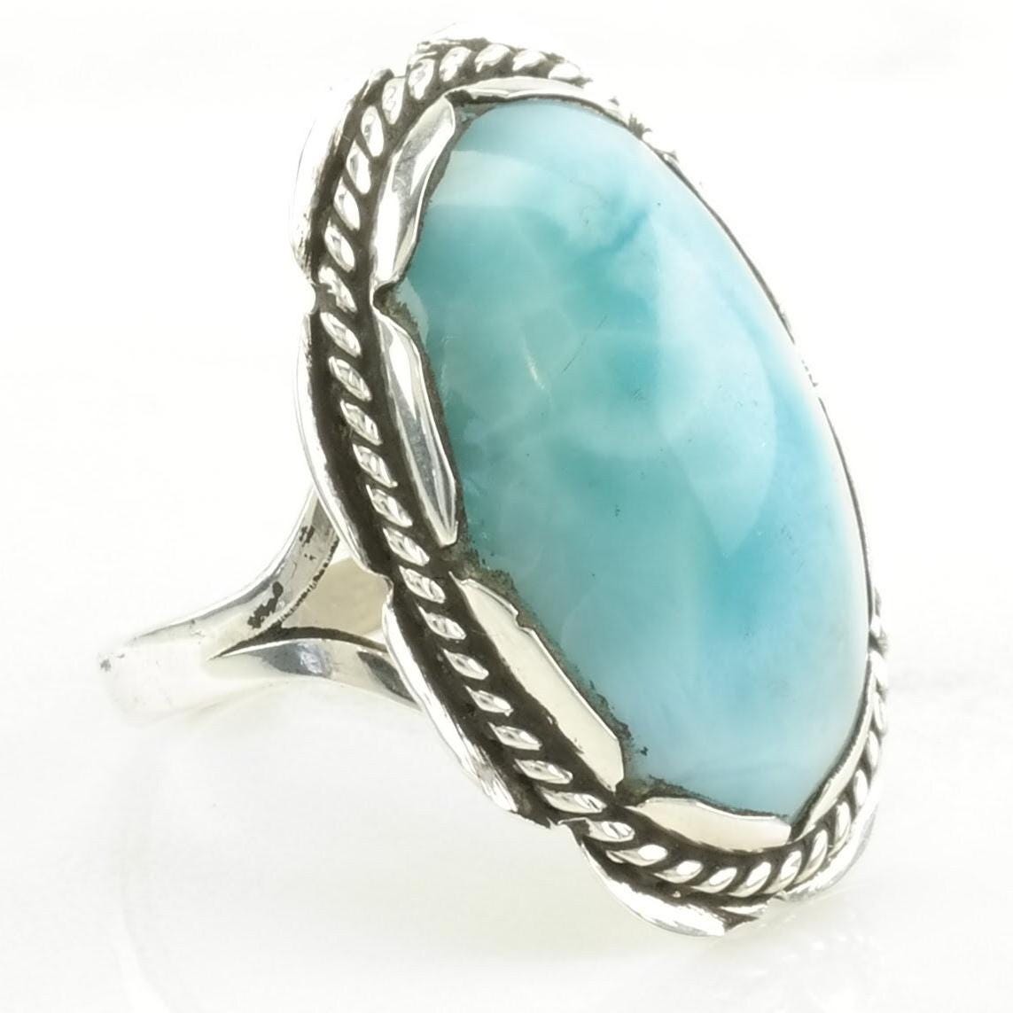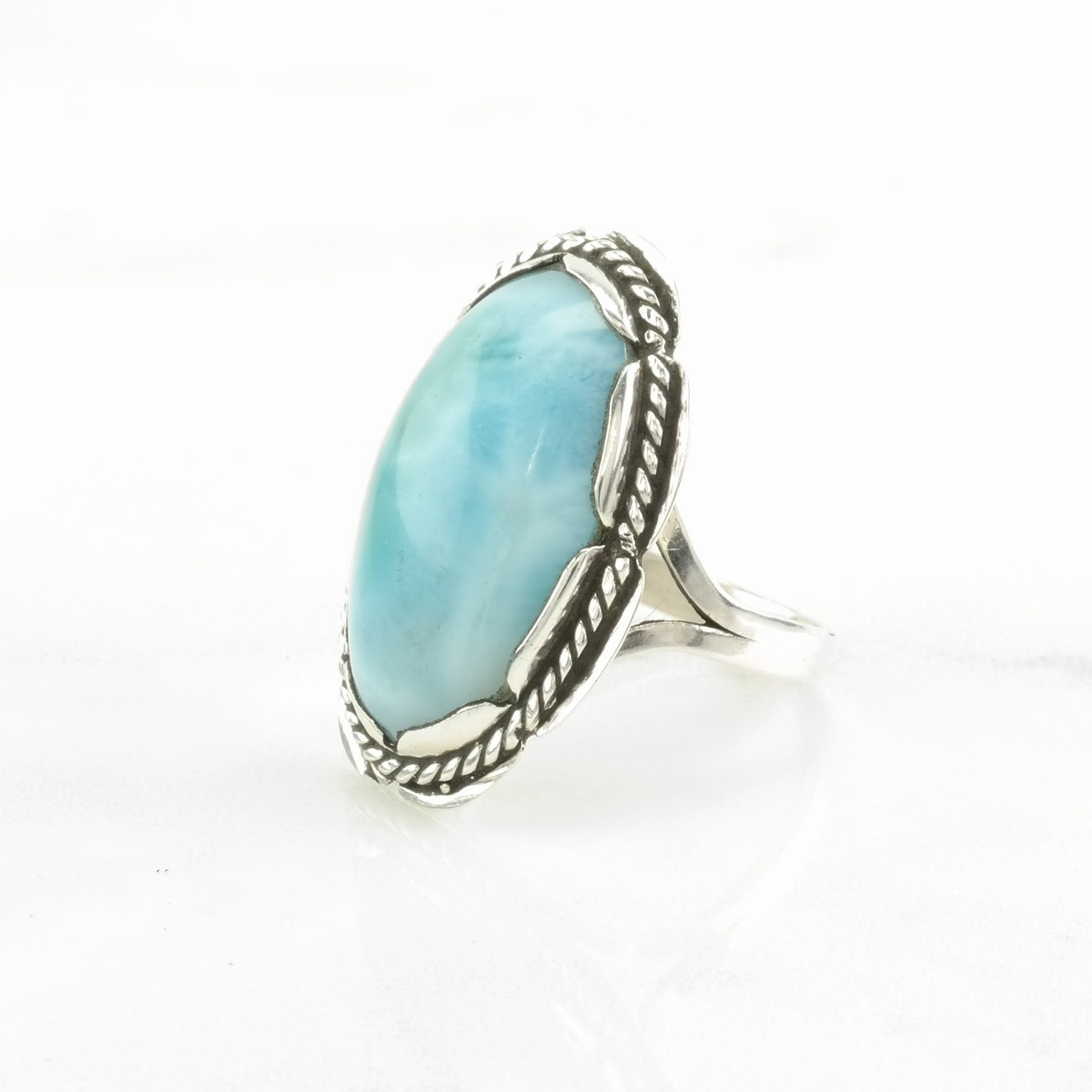 Vintage Sterling Silver Ring Larimar Rope Detail Blue Size 7 1/2