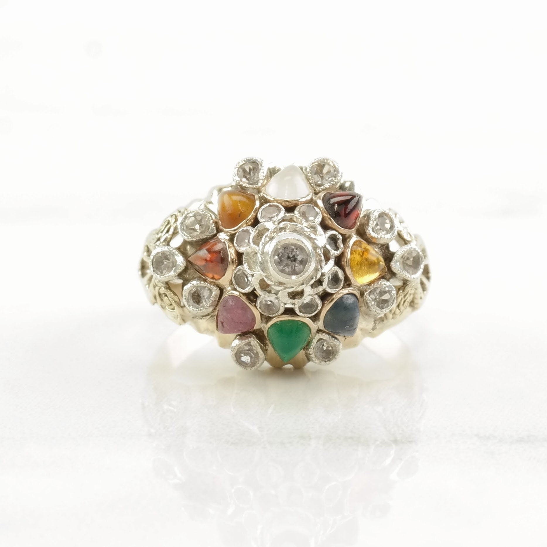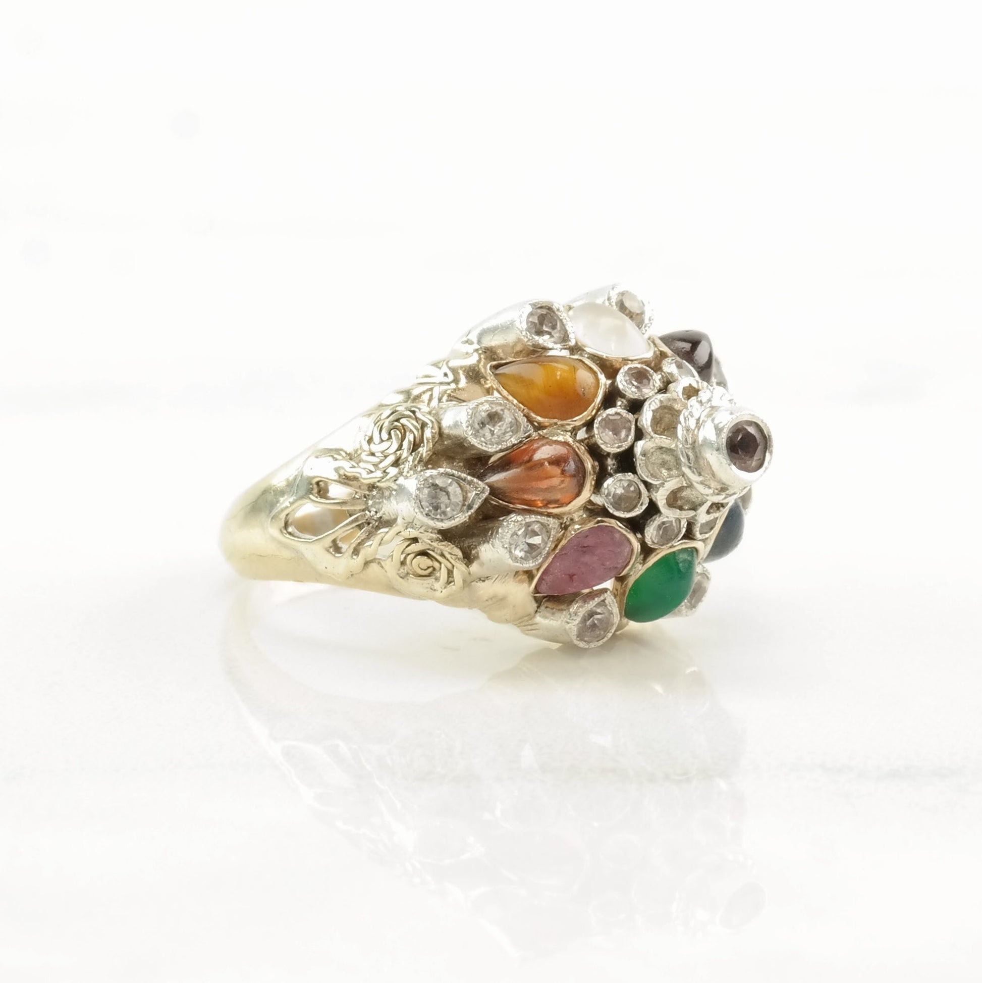Vintage Sterling Silver Ring Multi Gem Unique Size 5