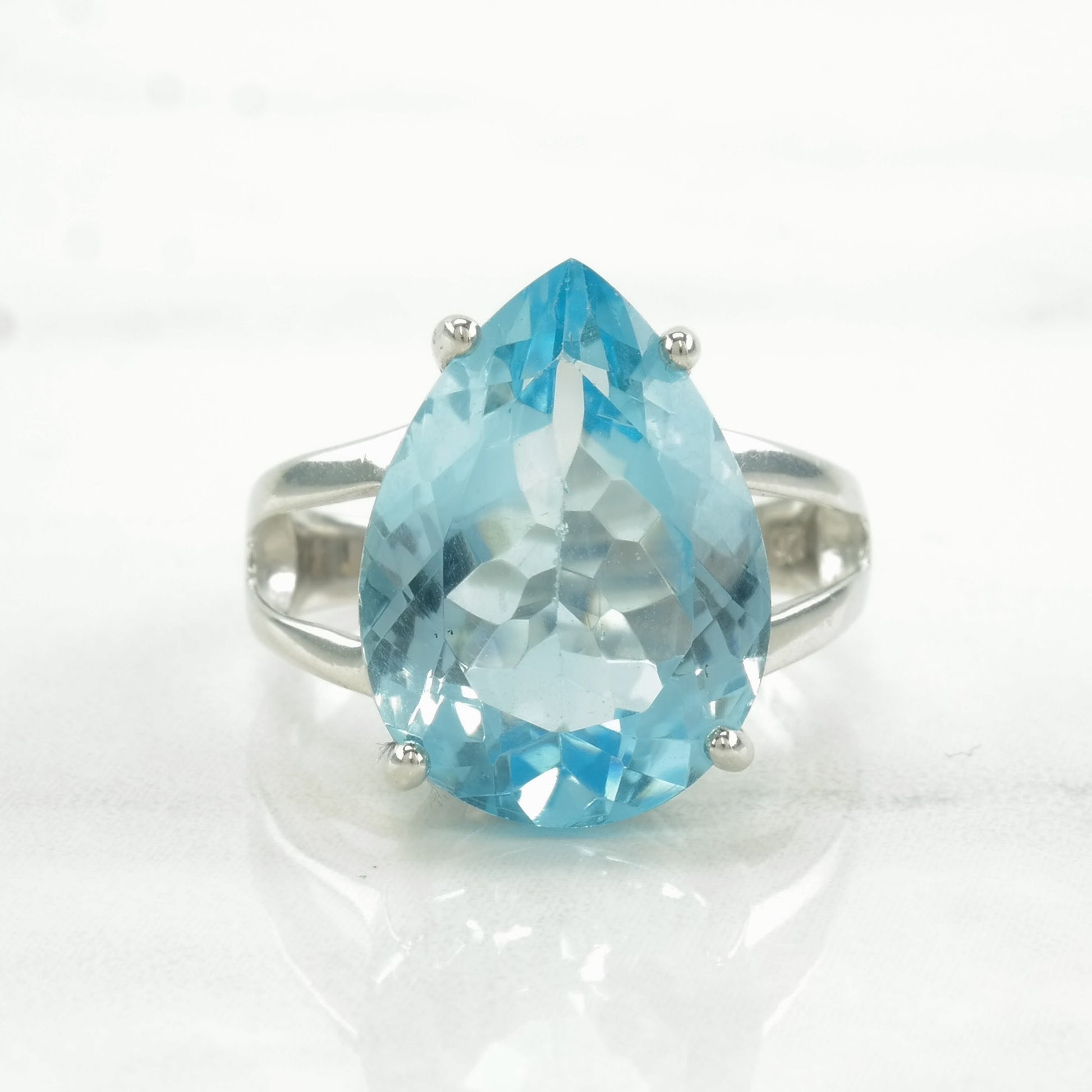 Vintage Sterling Silver Ring Natural Topaz Teardrop Size 7 3/4