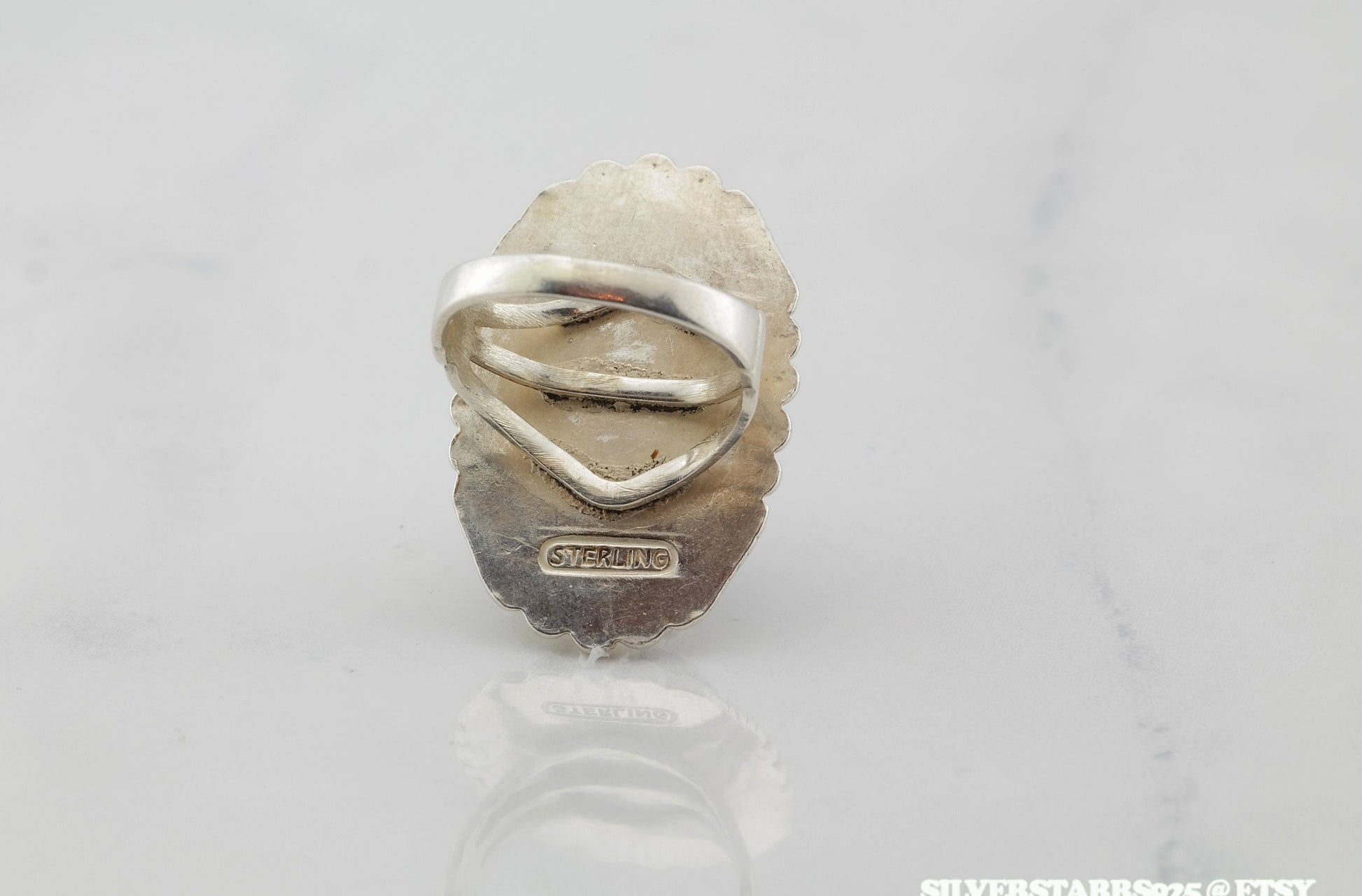 Vintage Sterling Silver Ring Obsidian Black Size 6.5