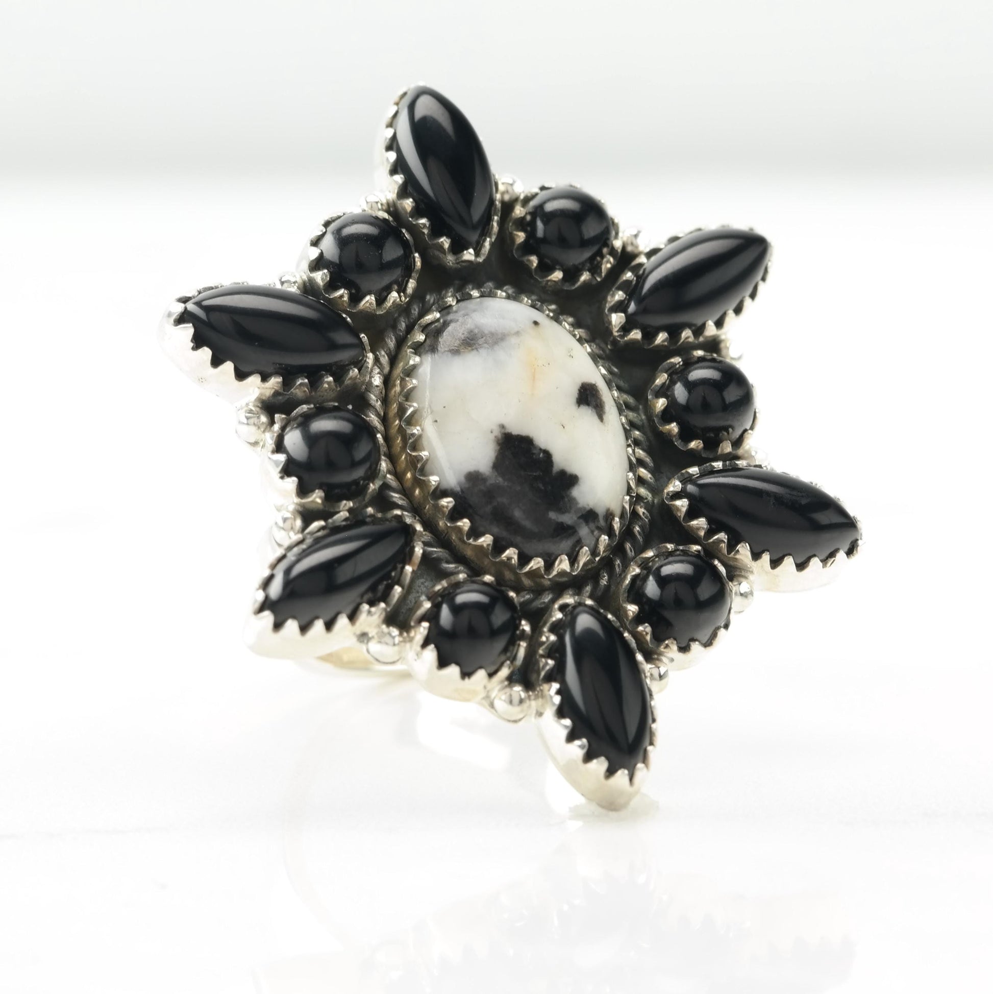 Vintage Sterling Silver Ring Onyx, Agate Large Black, white Size Adjustable