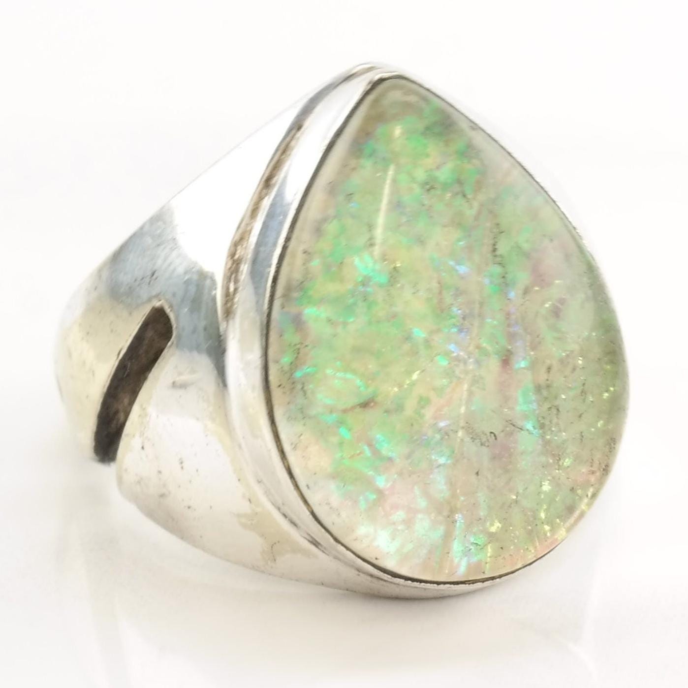Vintage Sterling Silver Ring Opal Doublet Teardrop Size 6 1/4