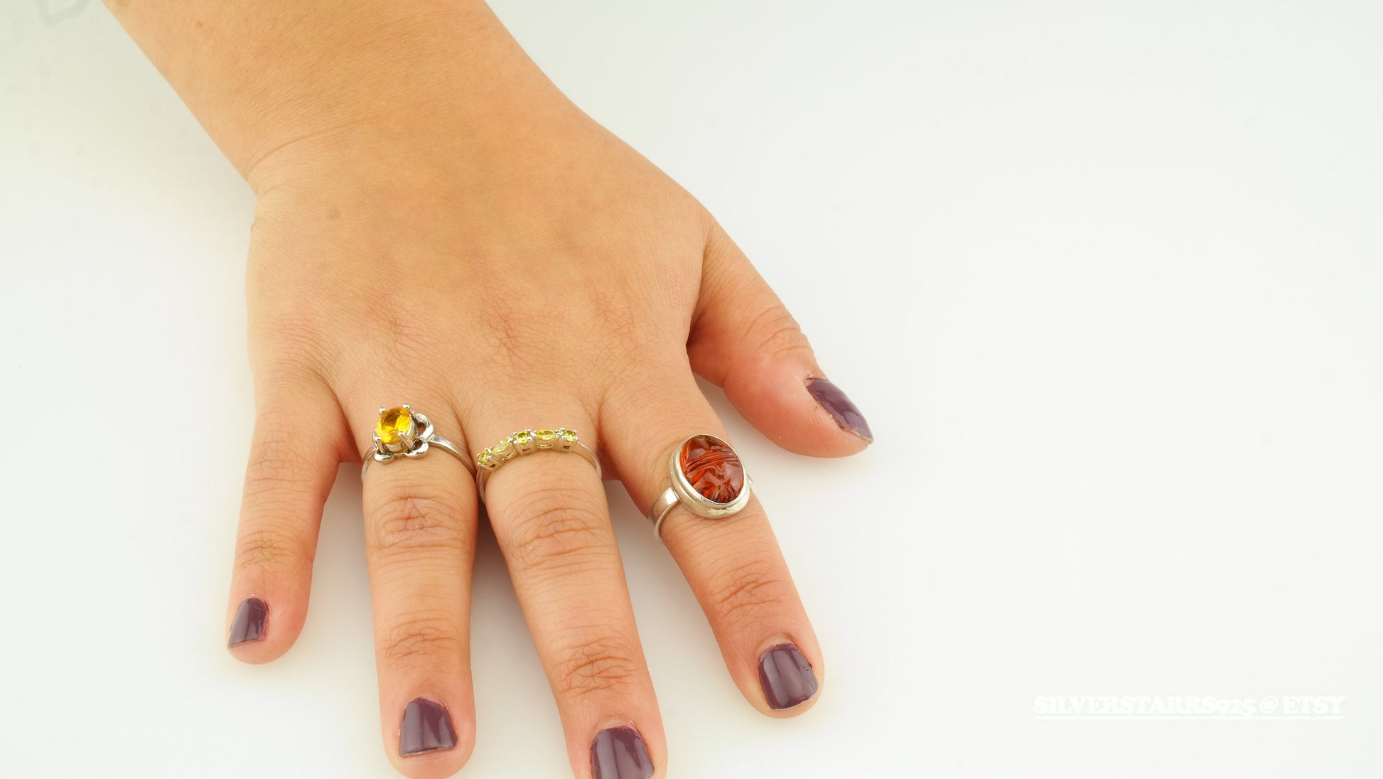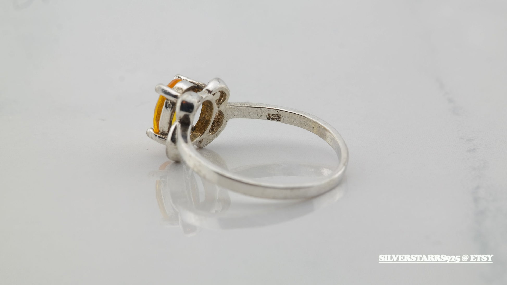 Vintage Sterling Silver Ring Paste Yellow Size 7.5