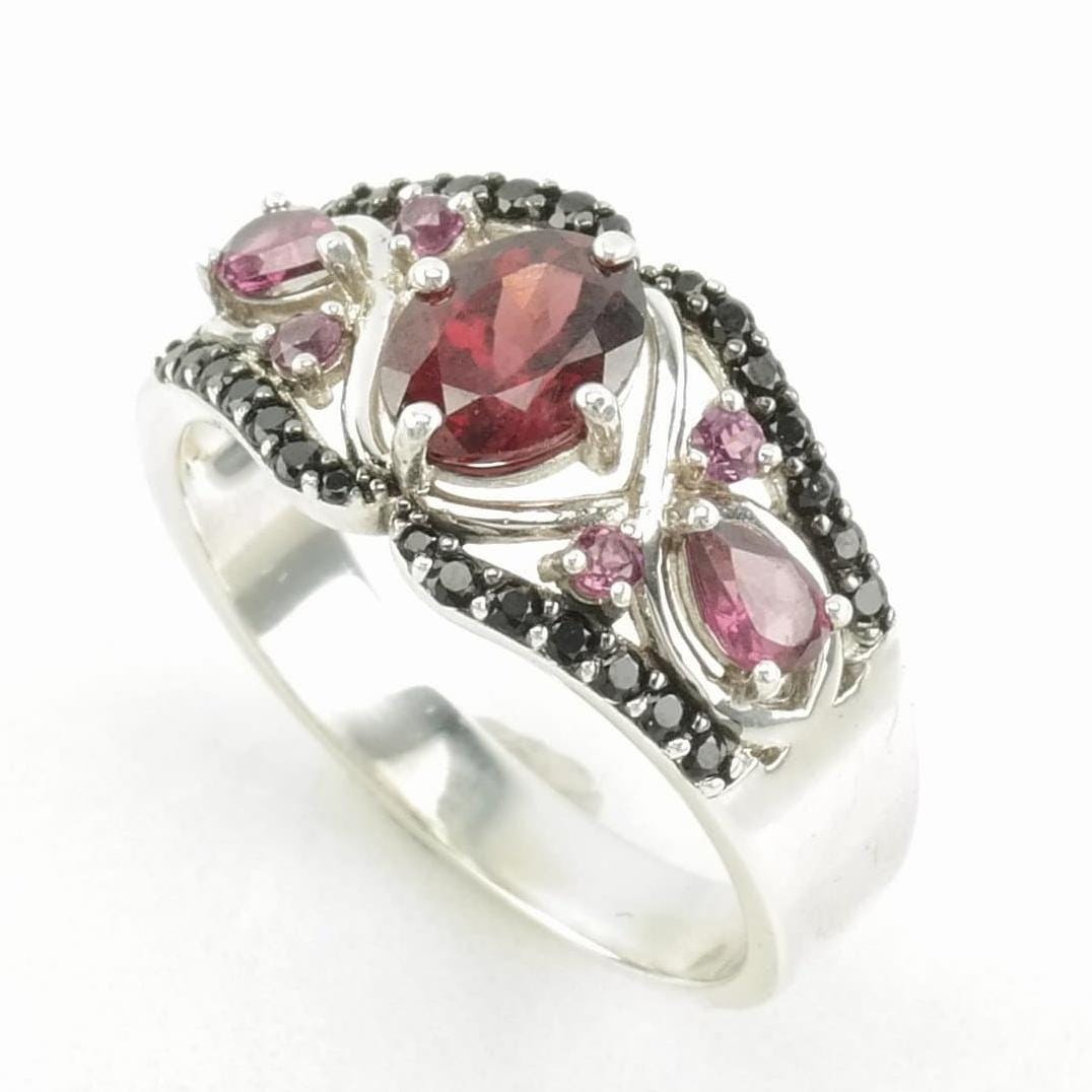 Vintage Sterling Silver Ring Raspberry Rhodolite Garnet Faceted Onyx Red, Purple, Black Size 11