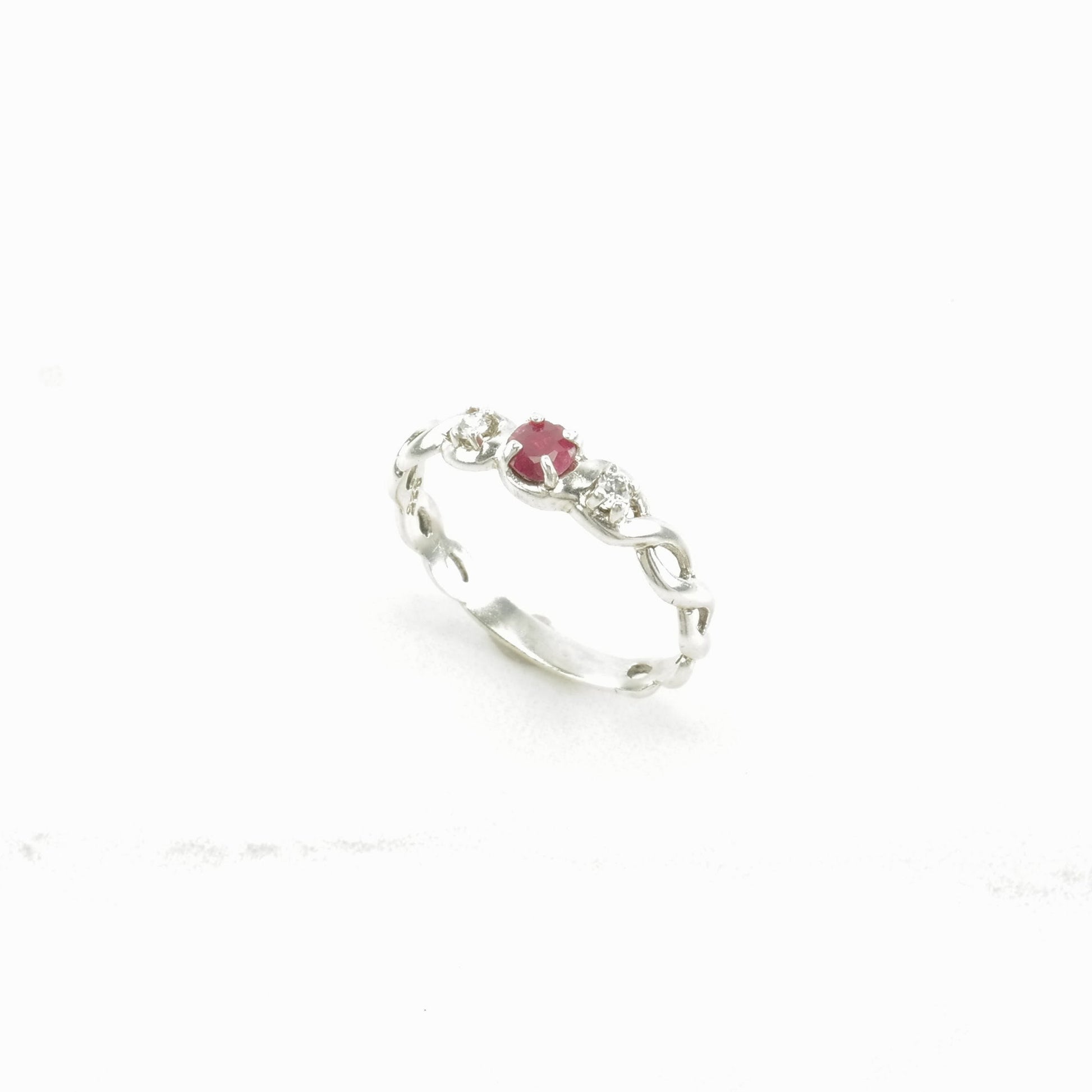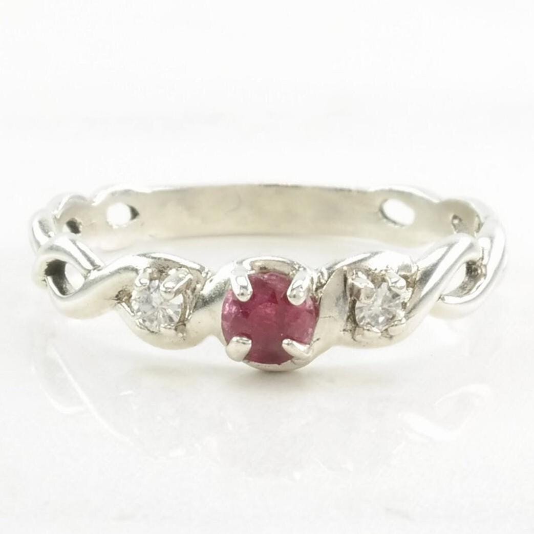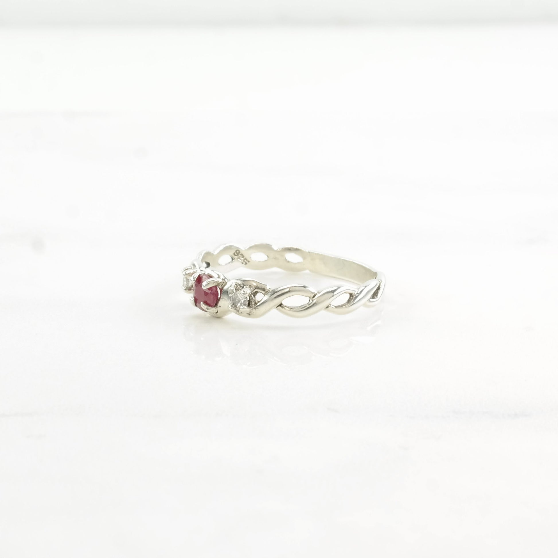 Vintage Sterling Silver Ring Ruby, CZ Twisted Size 8 1/2