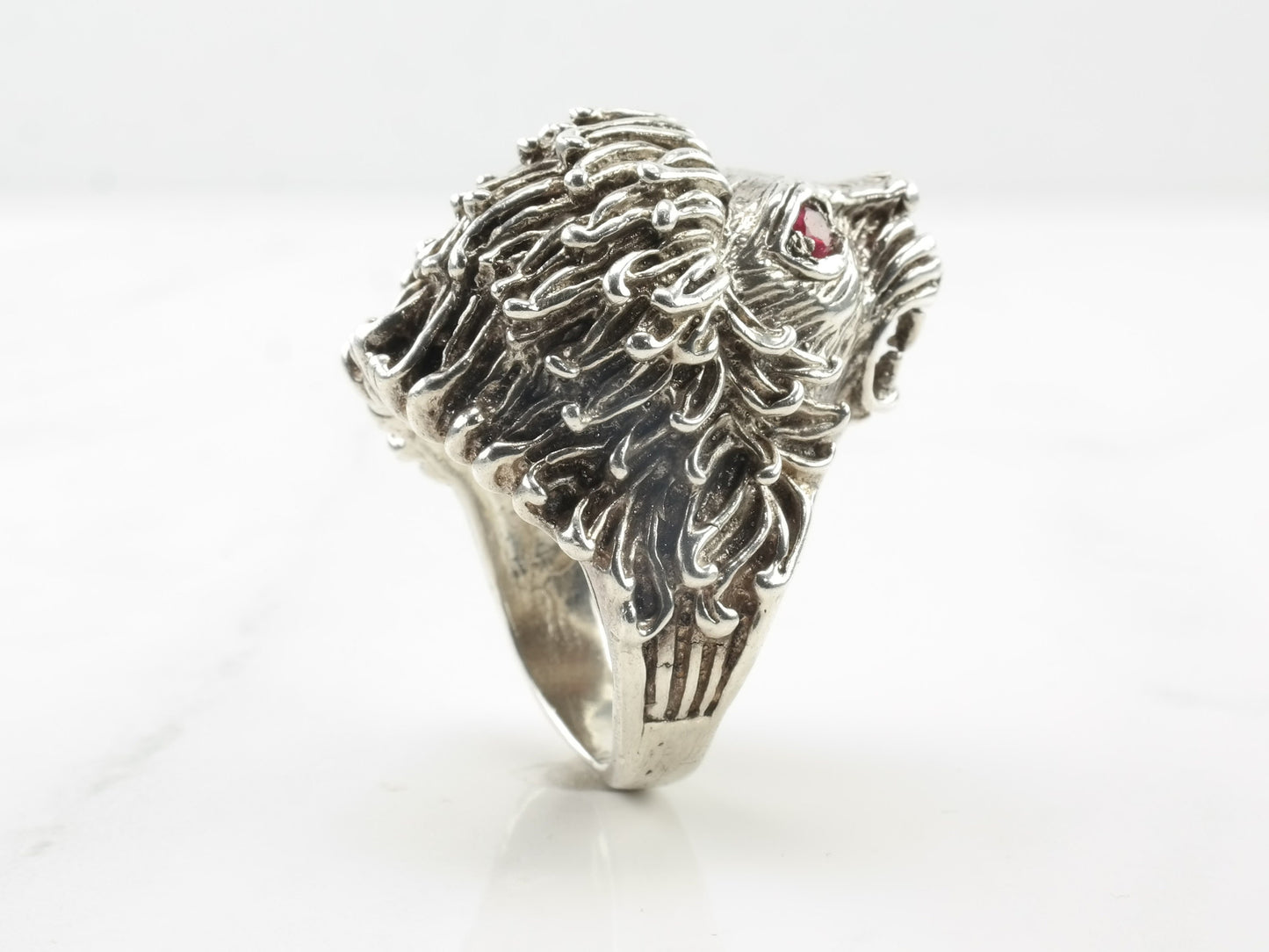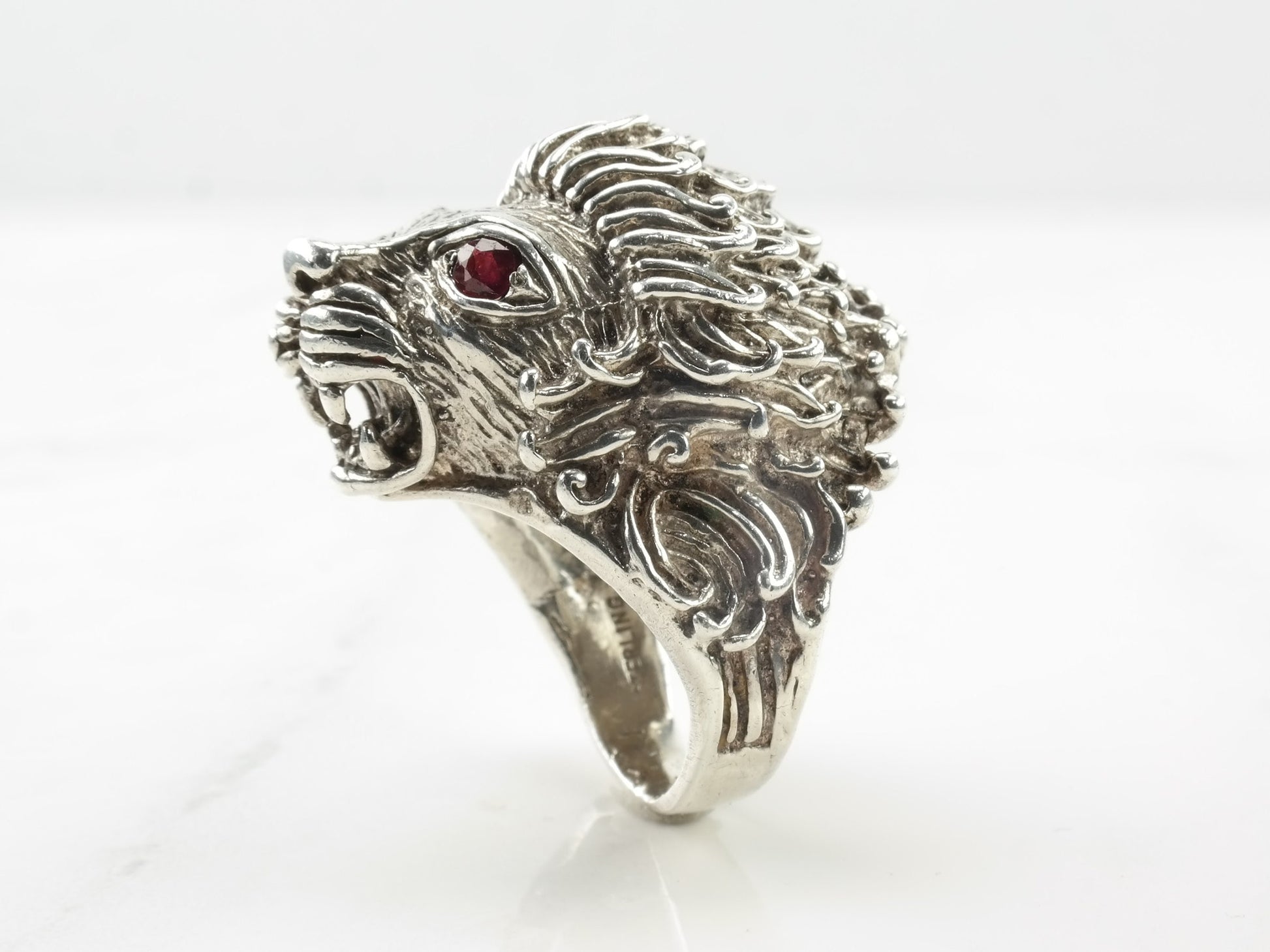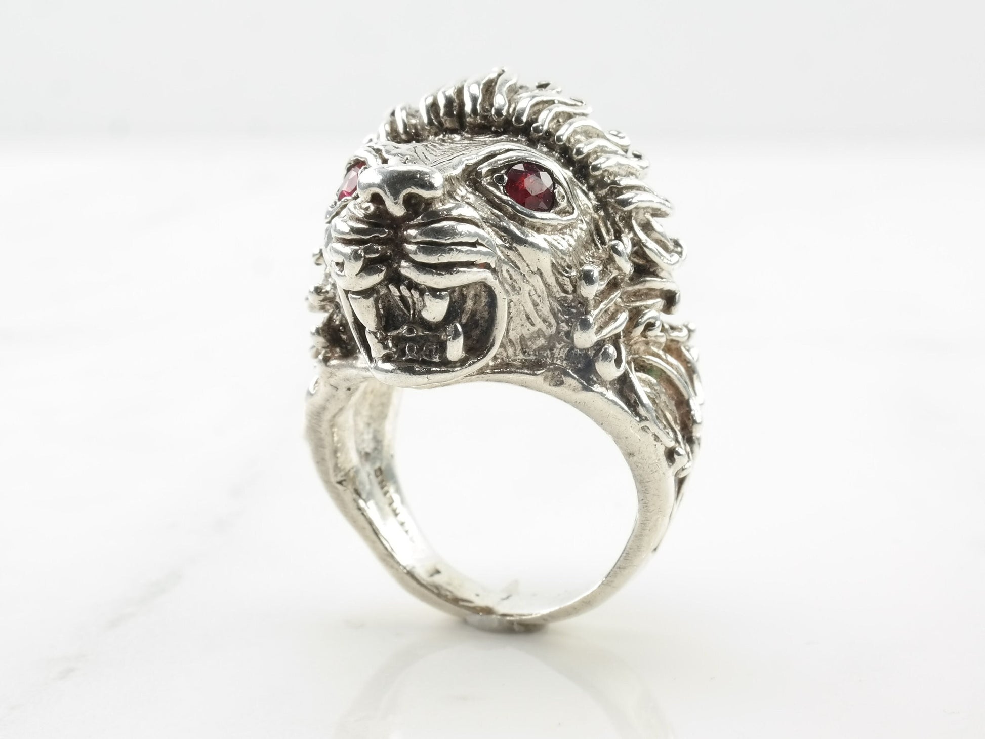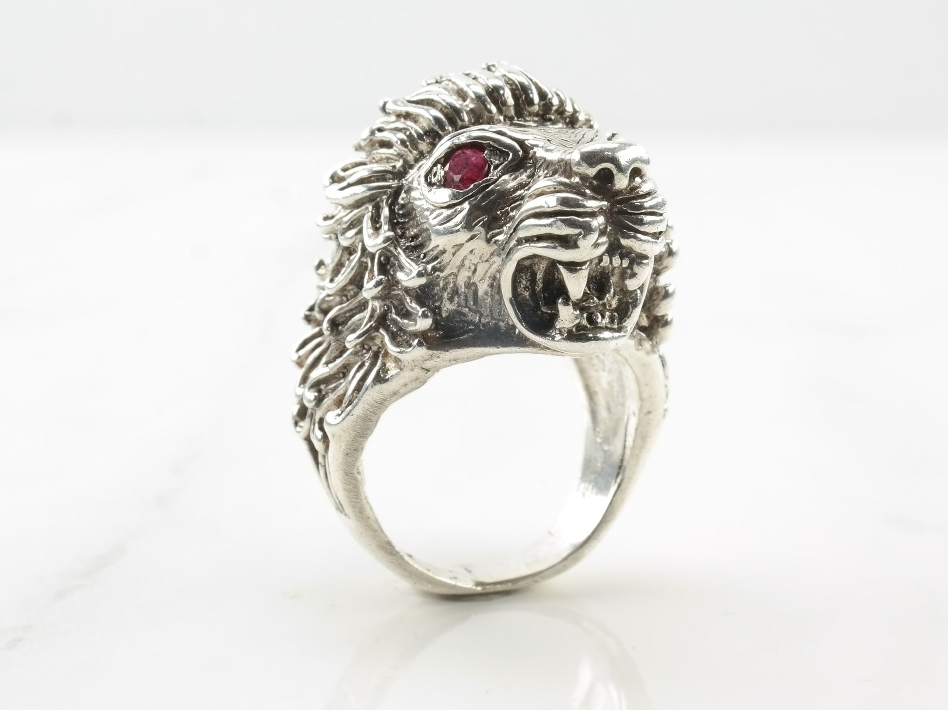 Vintage Sterling Silver Ring Ruby Lion Red Size 8 3/4