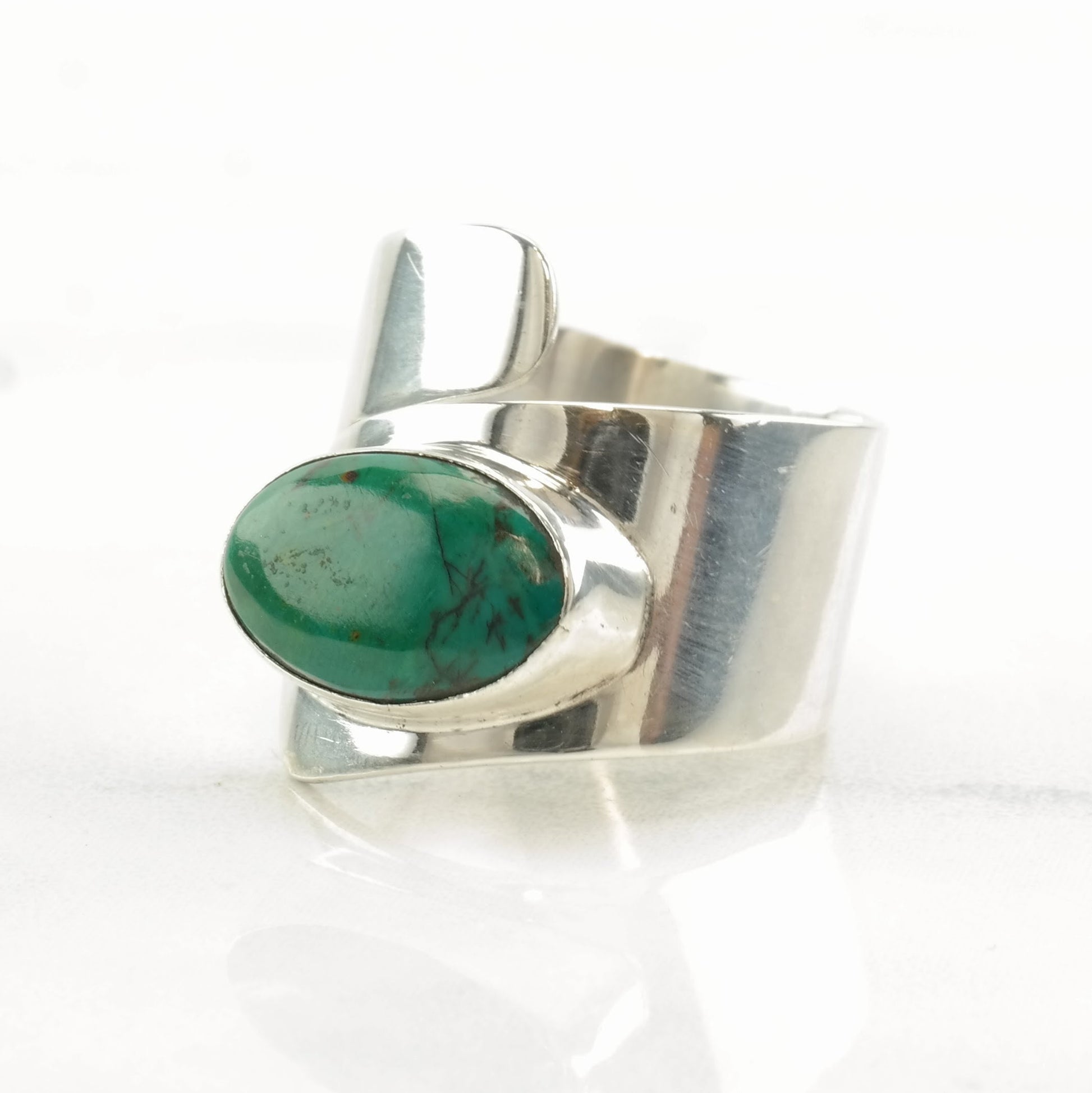 Vintage Sterling Silver Ring Teal Gemstone Wrap Size 7 1/2