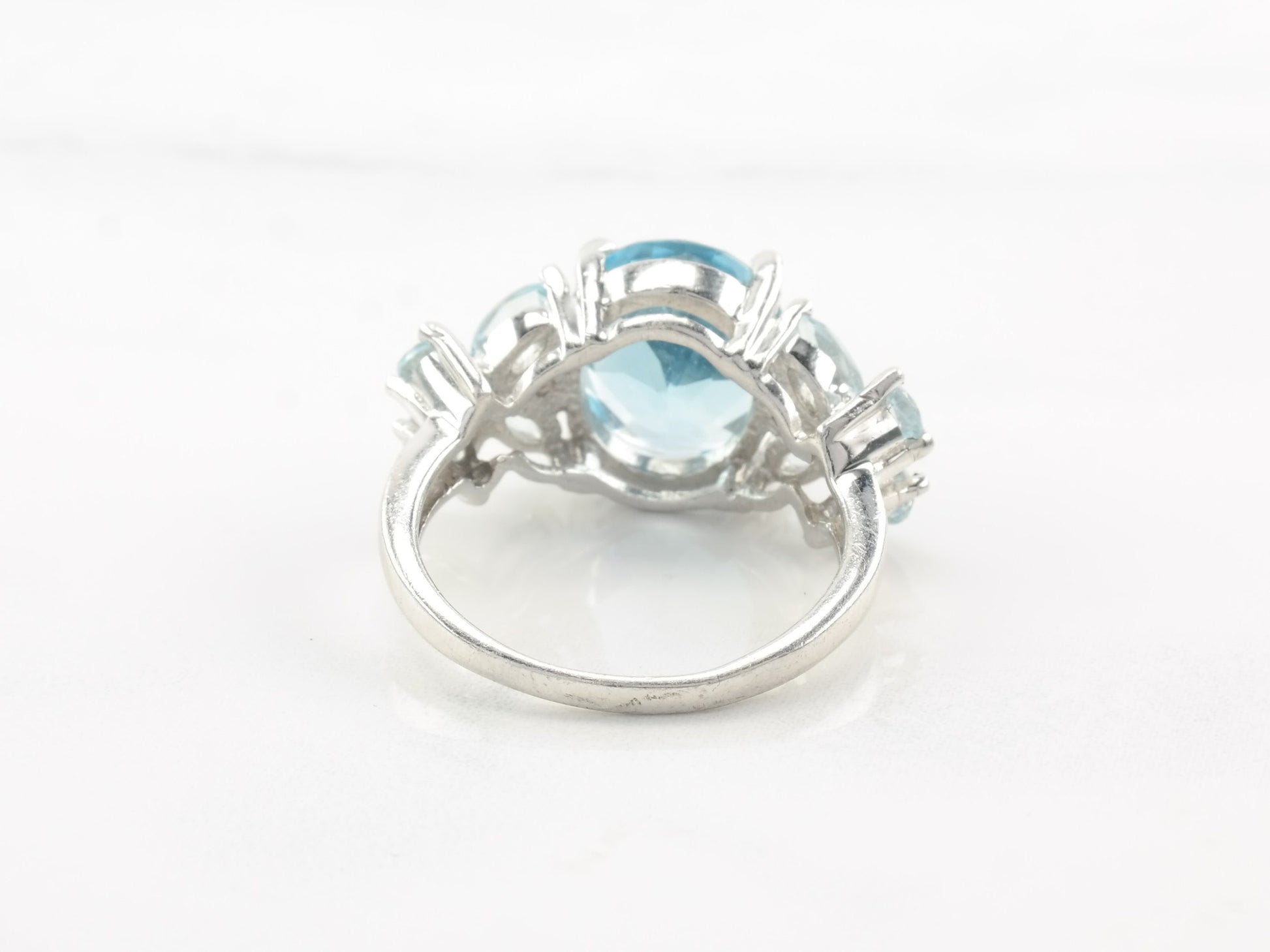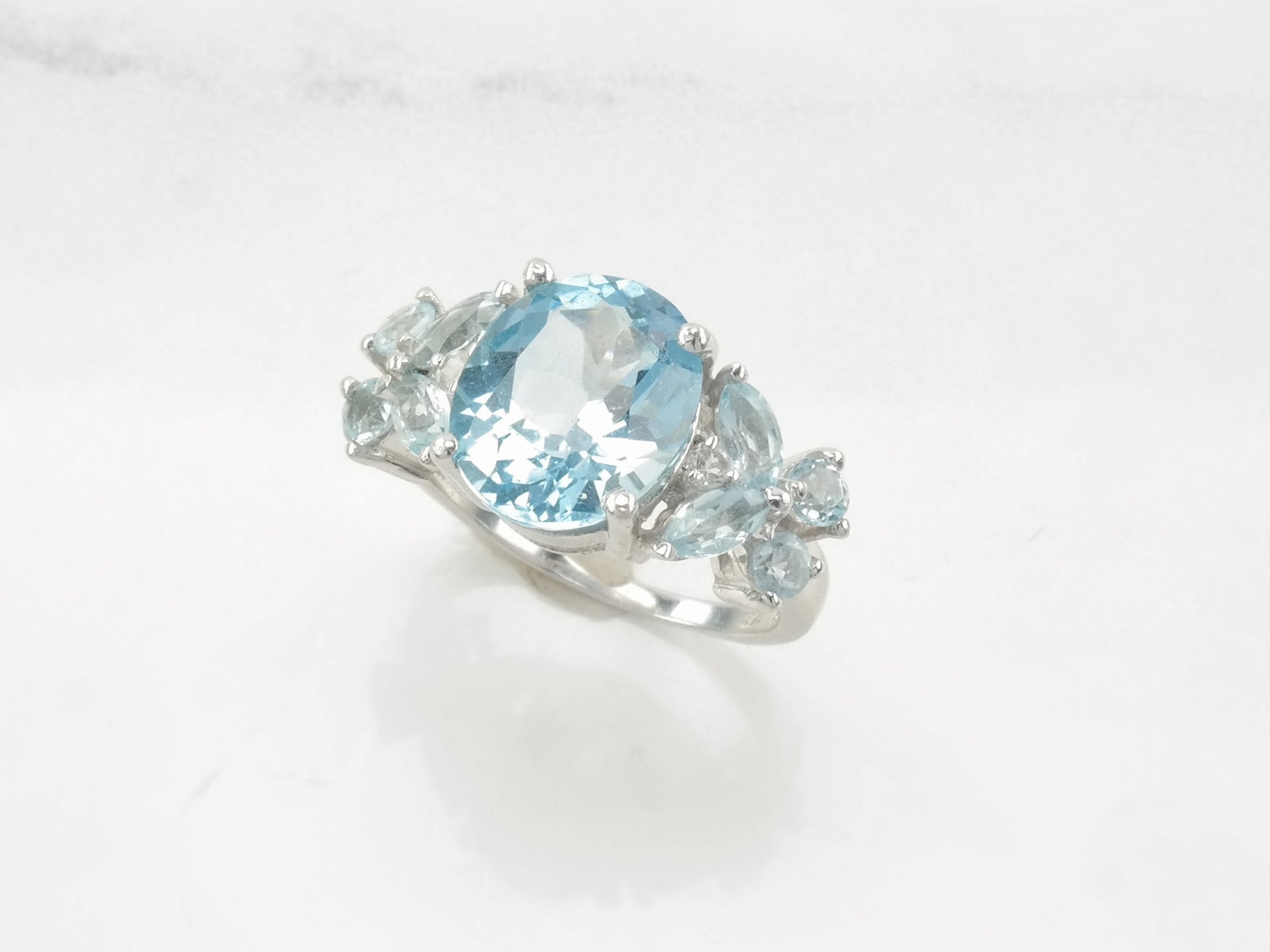 Sparkling crystal blue Topaz is accentuated by the solid sterling silver of this ring.