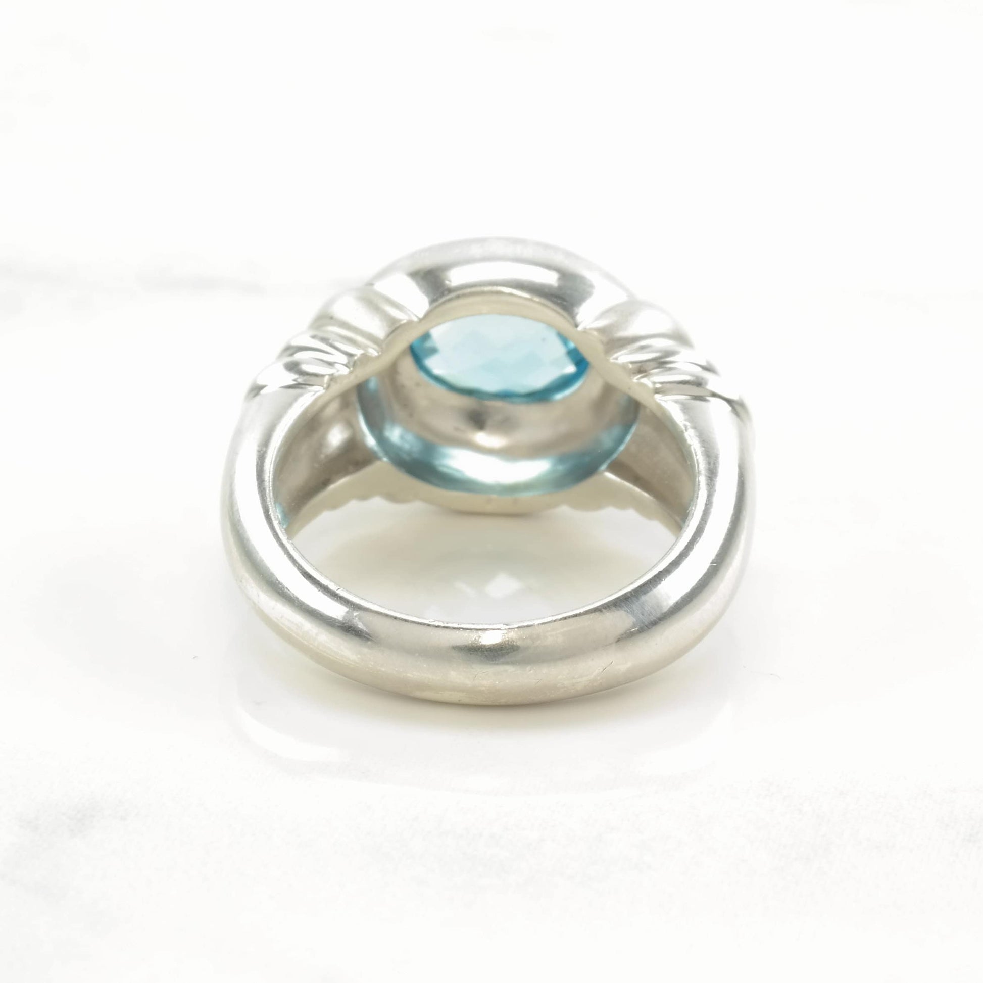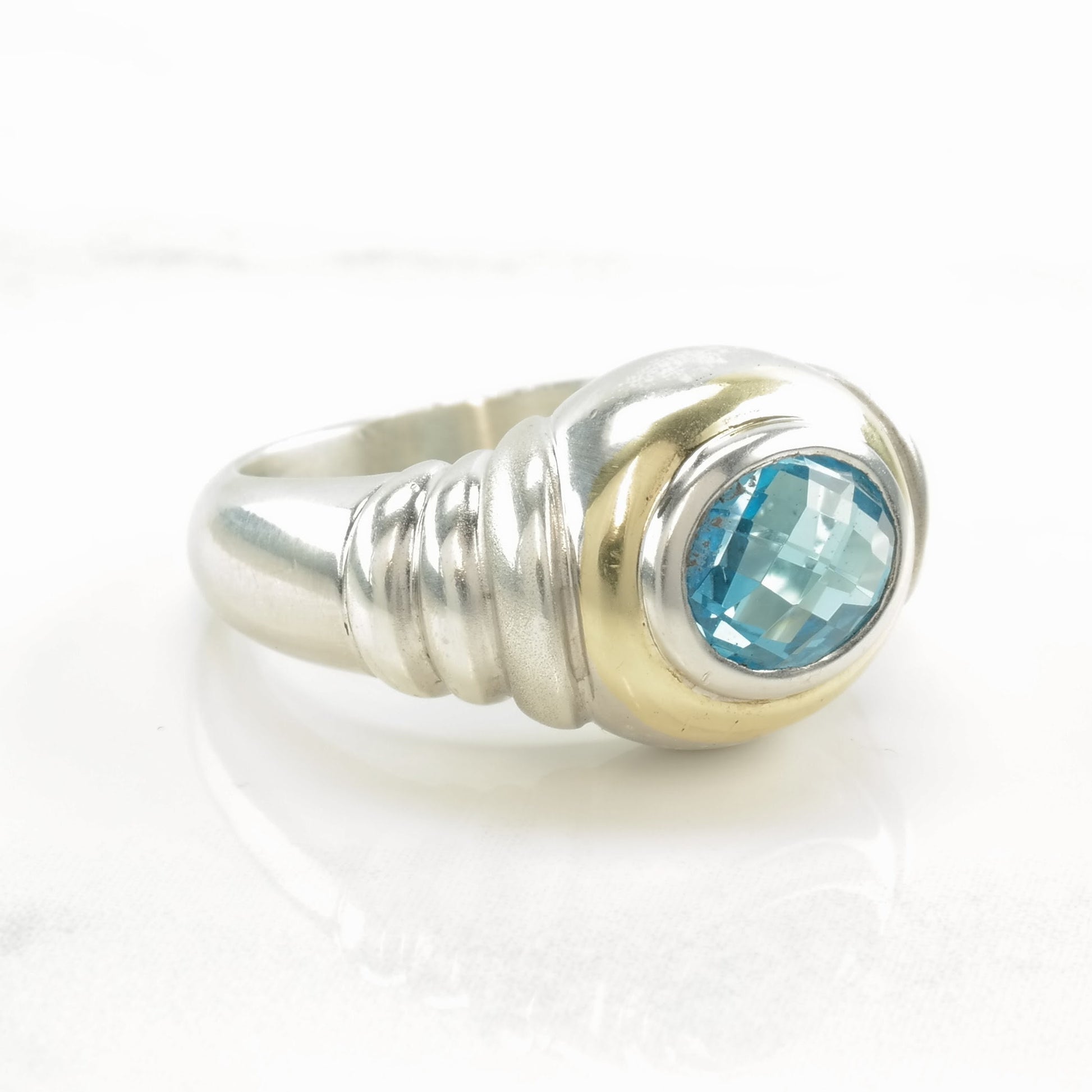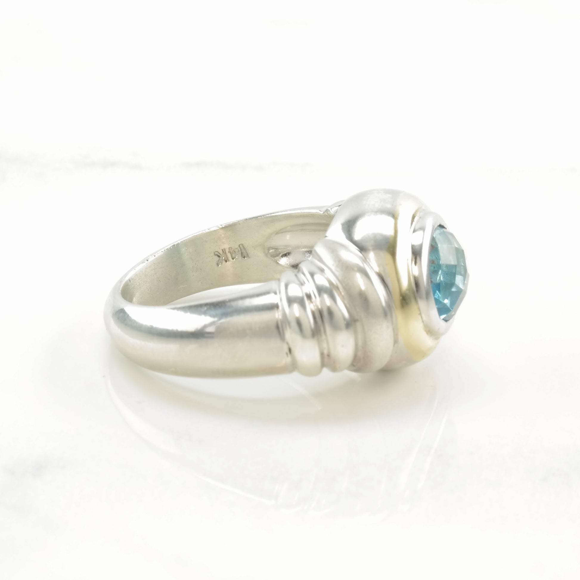 Vintage Sterling Silver Ring Topaz Checkerboard Cut 14K Gold Size 6 3/4