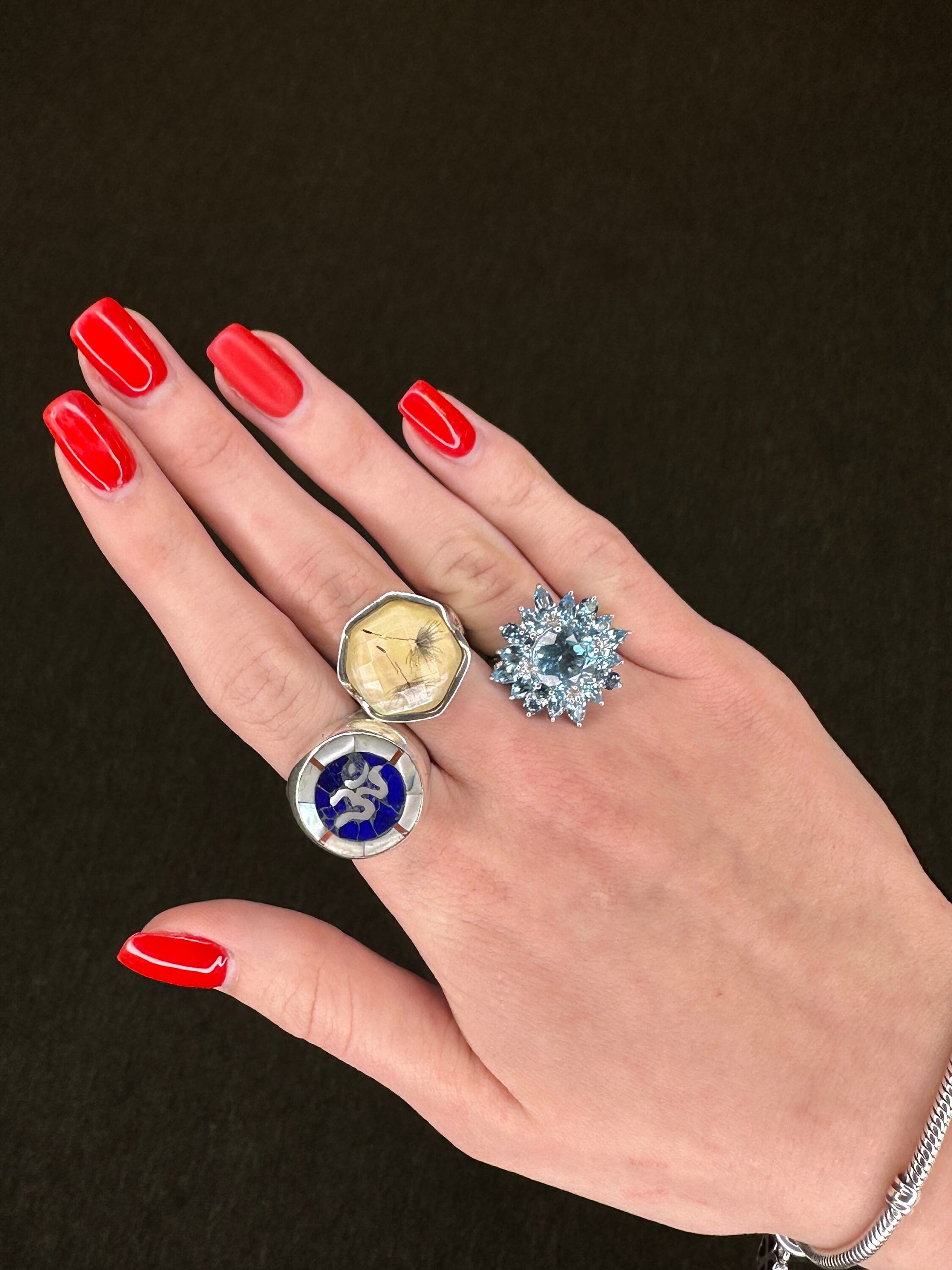 Vintage Sterling Silver Ring Topaz Flower Size 6