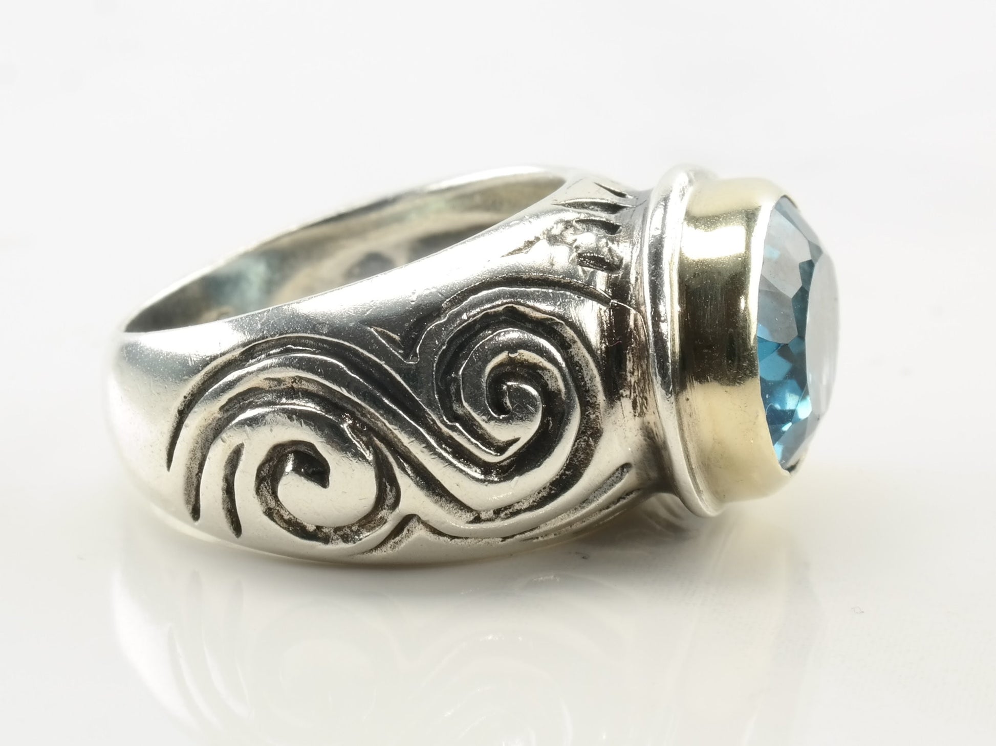 Vintage Sterling Silver Ring Topaz Gold Accent Size 6 3/4