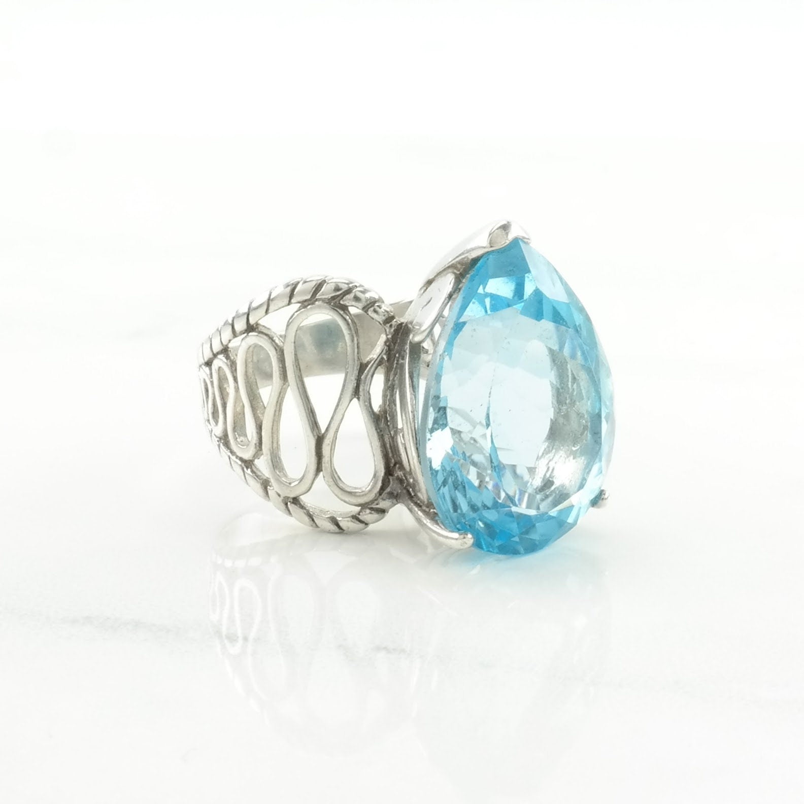 Vintage Sterling Silver Ring Topaz Teardrop Blue Size 8 3/4