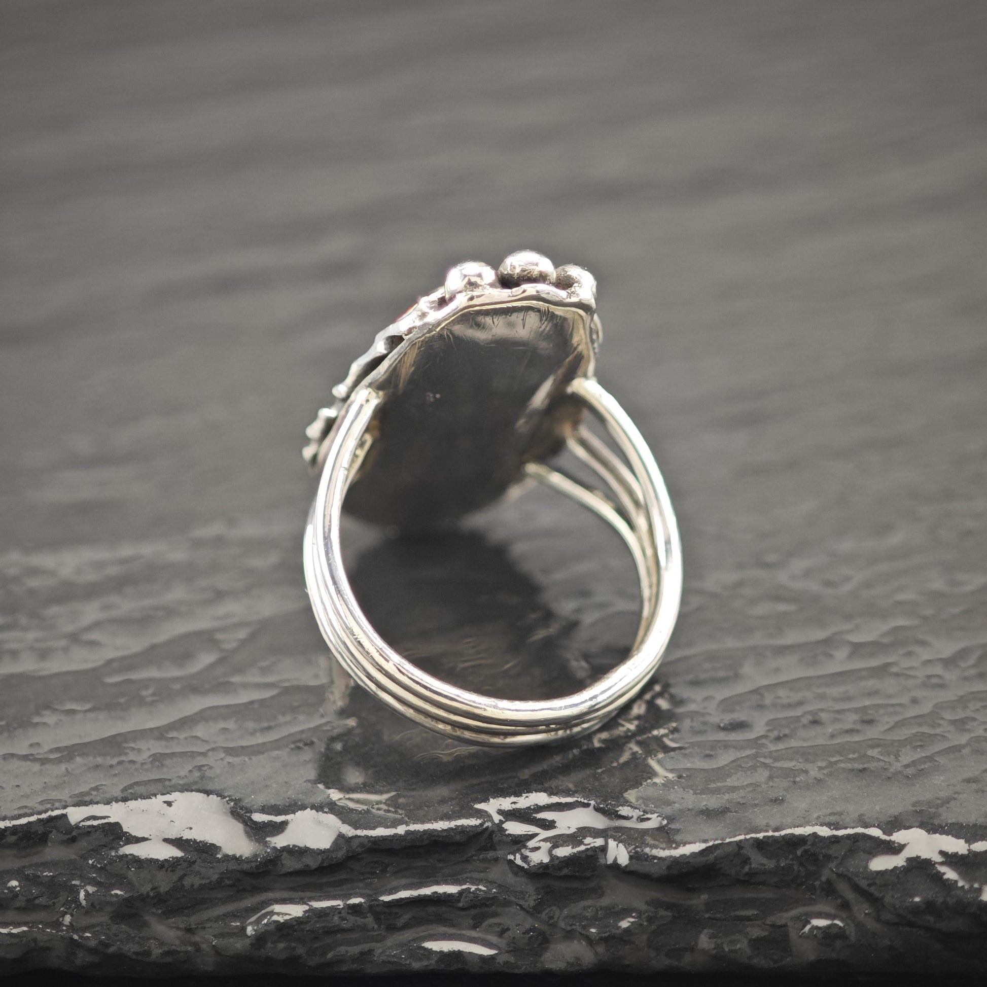 Discover the timeless charm of this vintage sterling silver ring, a true treasure for lovers of unique gemstone jewelry. Crafted with care, this sterling silver ring features a beautifully aged patina that tells a story of elegance and history. Whether you're searching for a vintage ring to add to your collection or a special holiday gift, this piece offers both character and classic style.