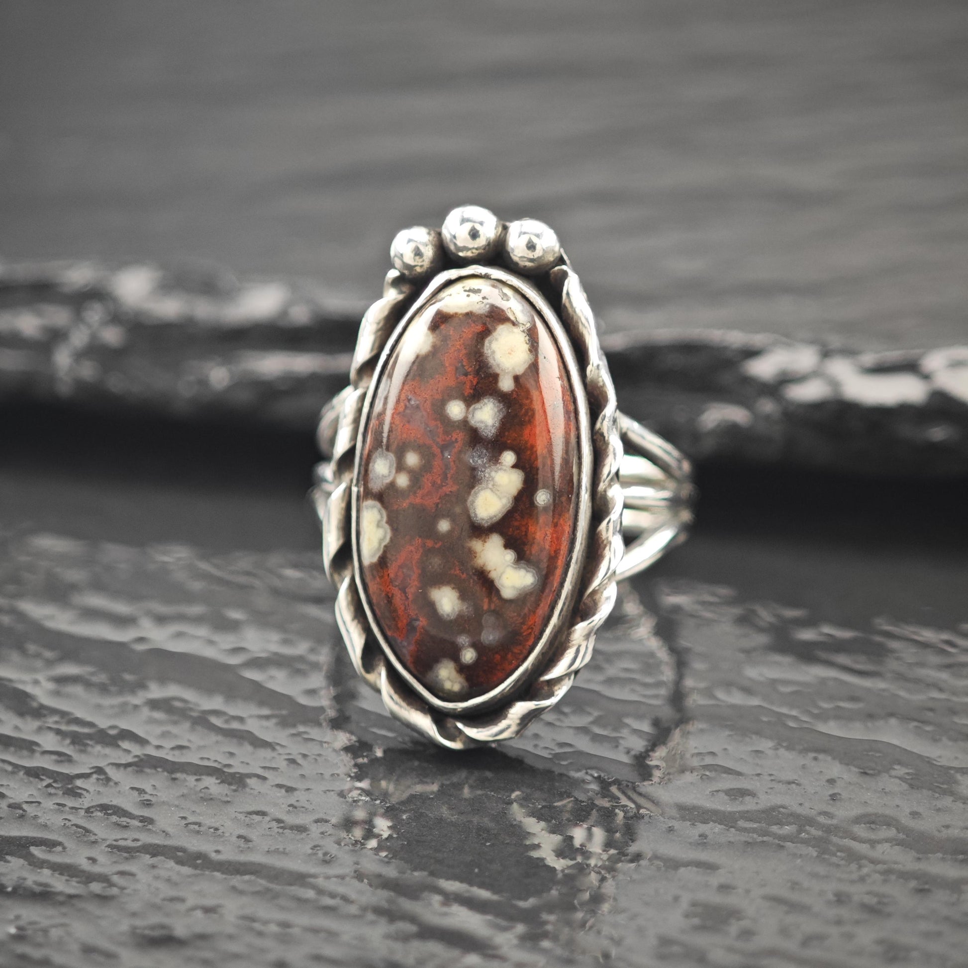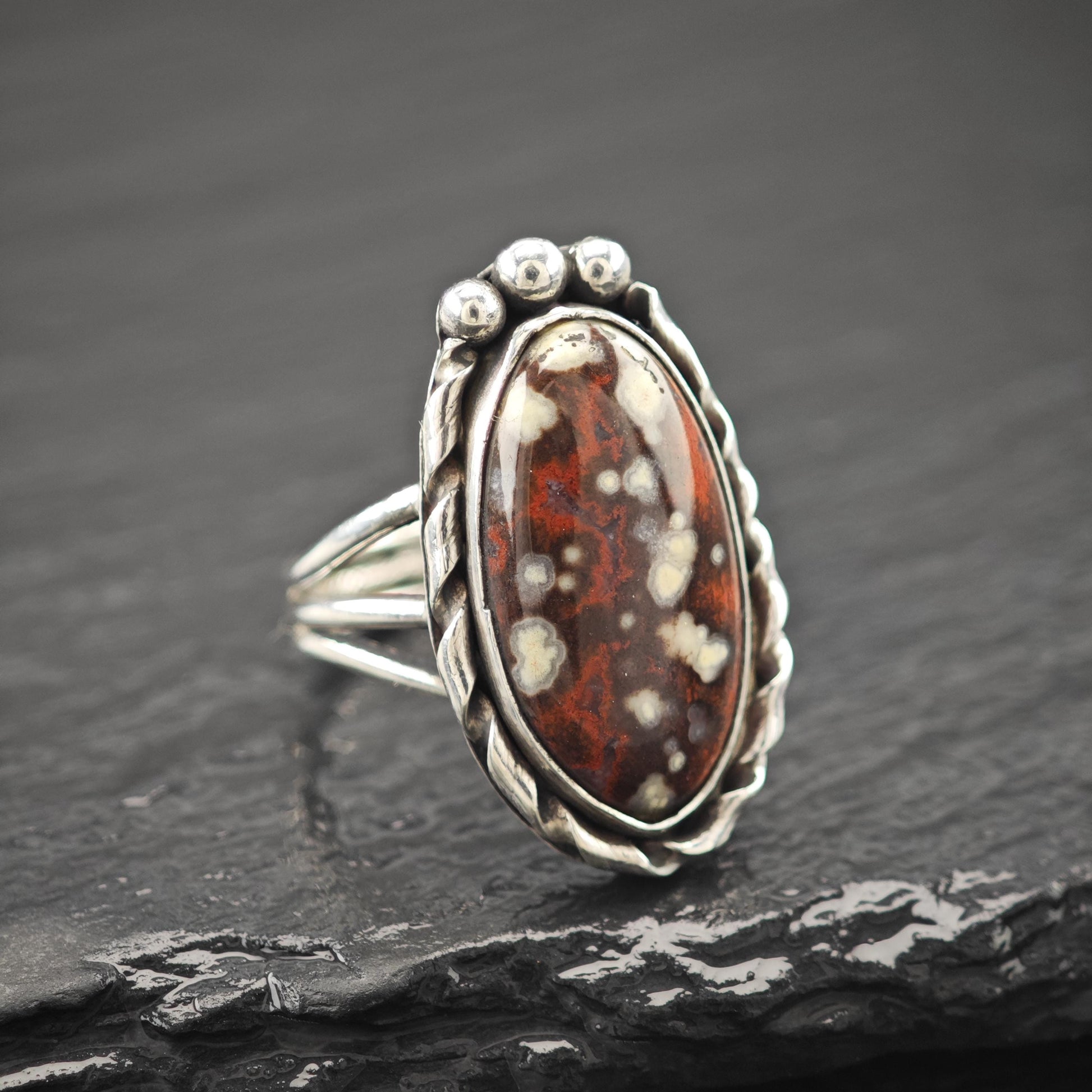 Vintage Sterling Silver Ring, Unique Gemstone Size 5 1/4
