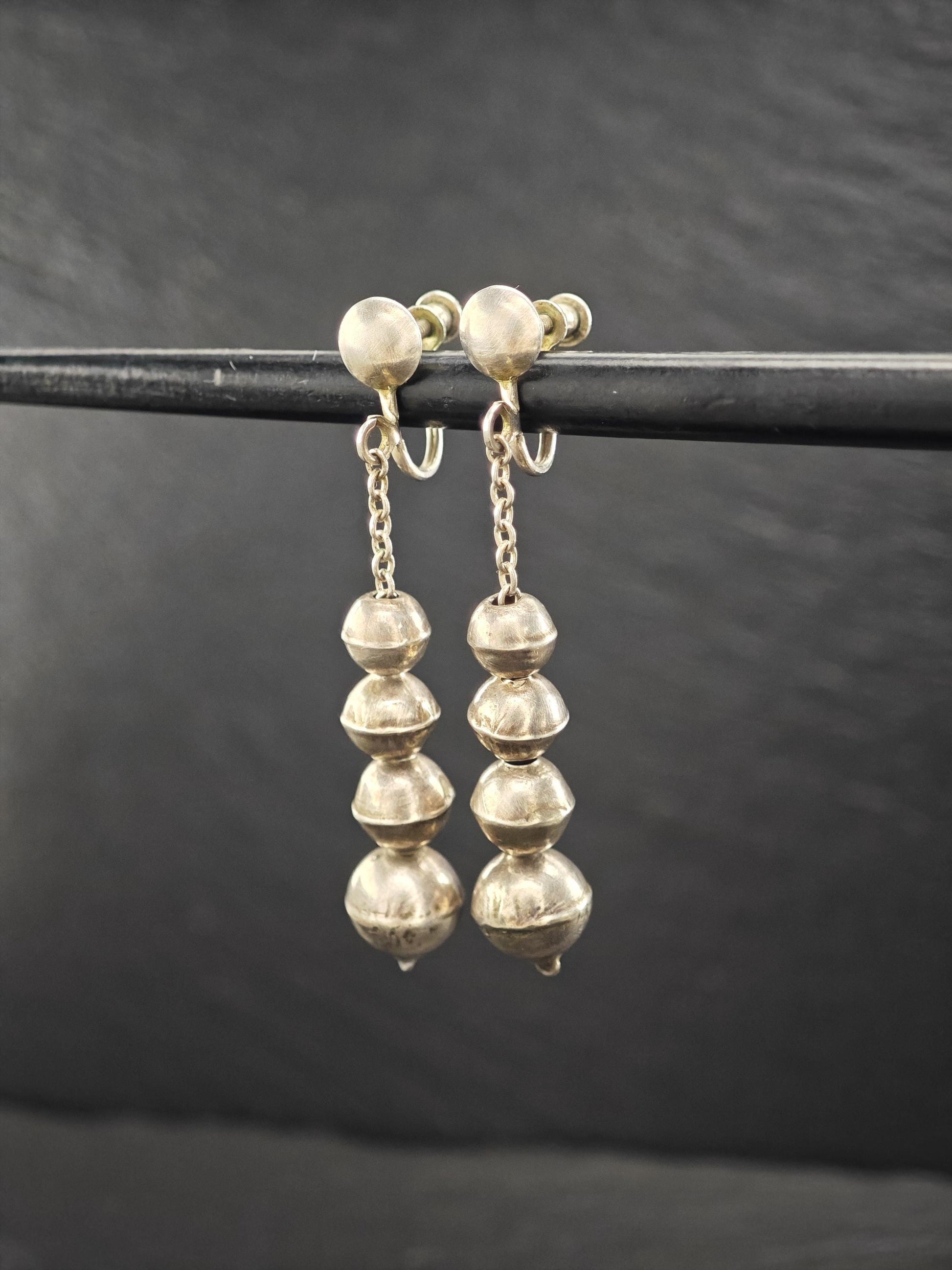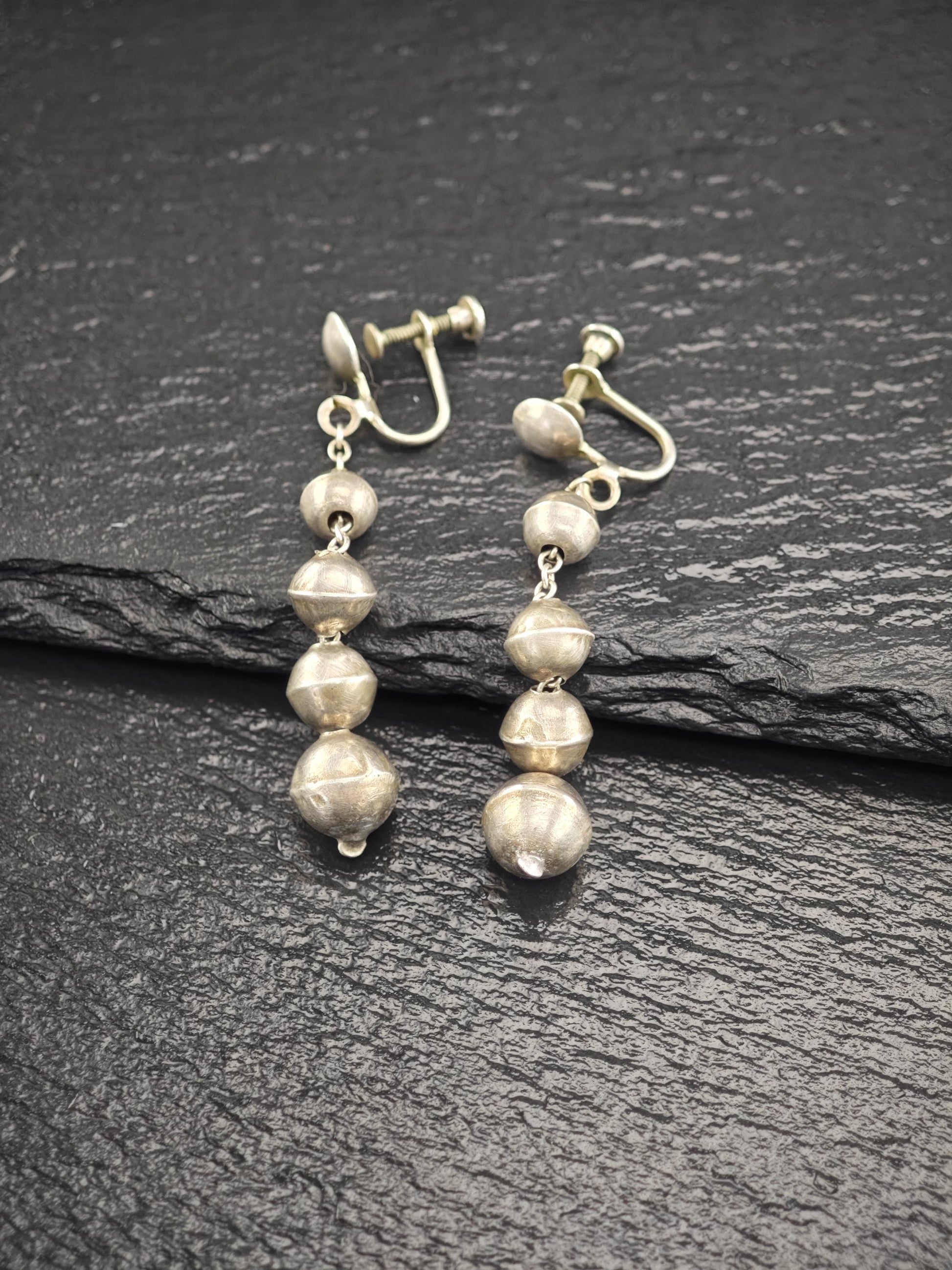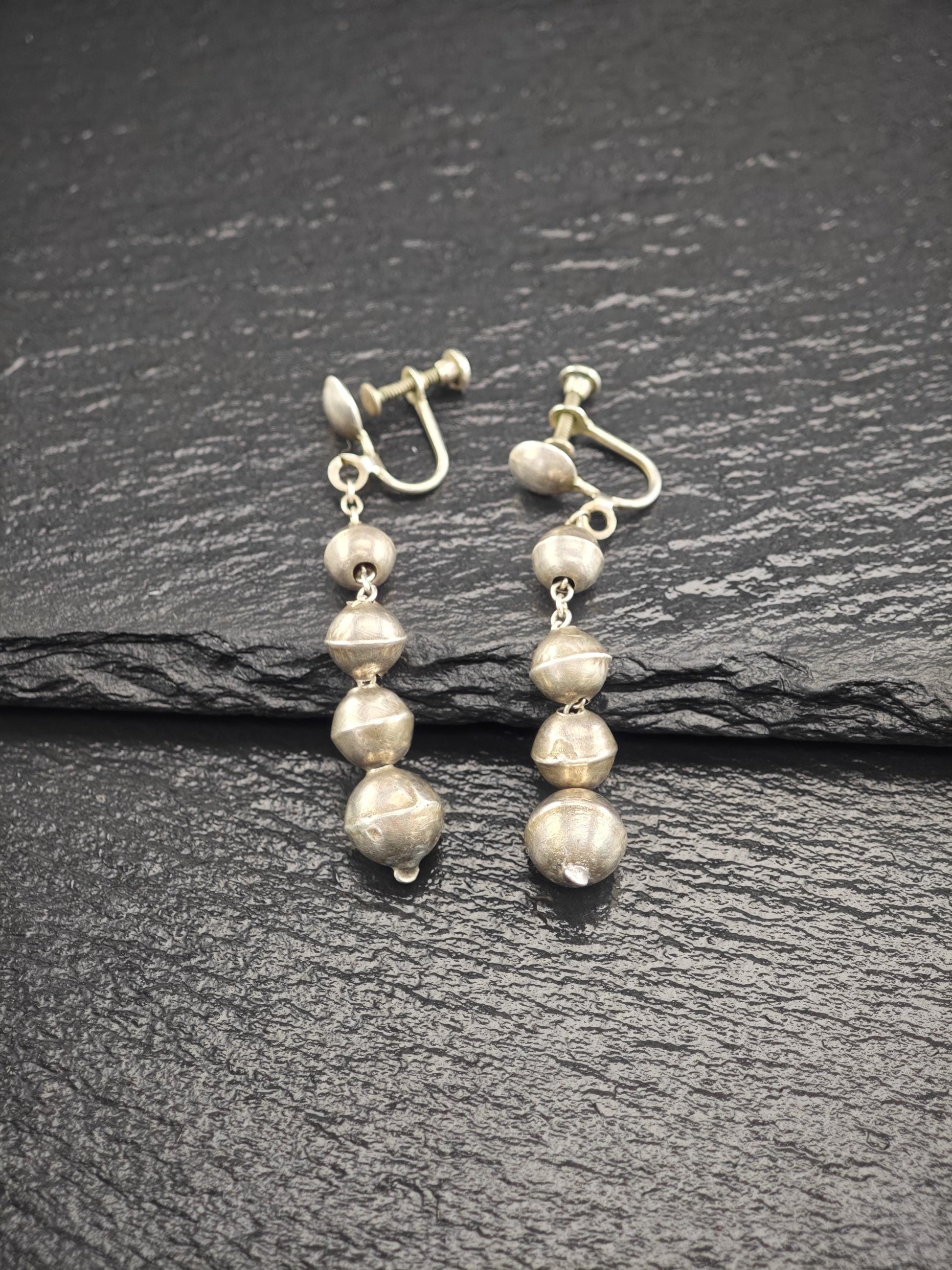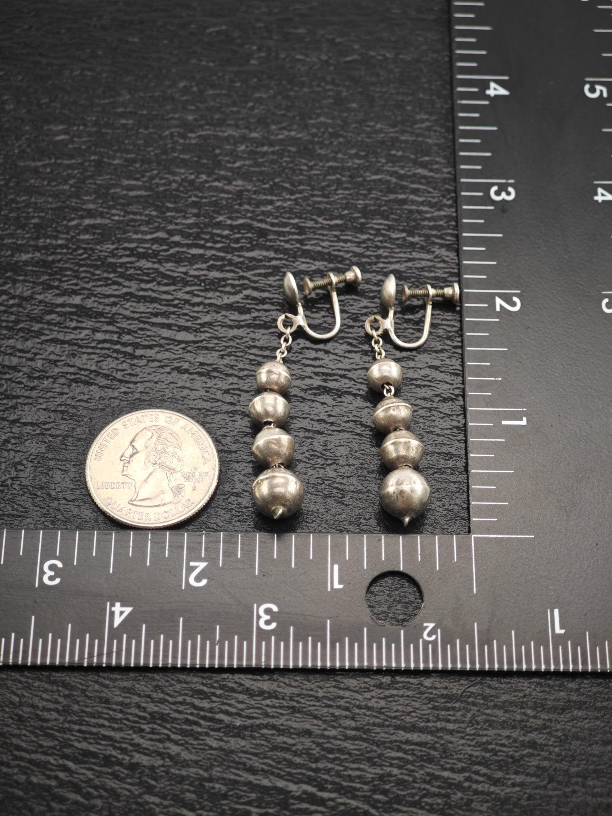 Vintage Sterling Silver Screw Back Earrings Native American Beaded Navajo Pearls