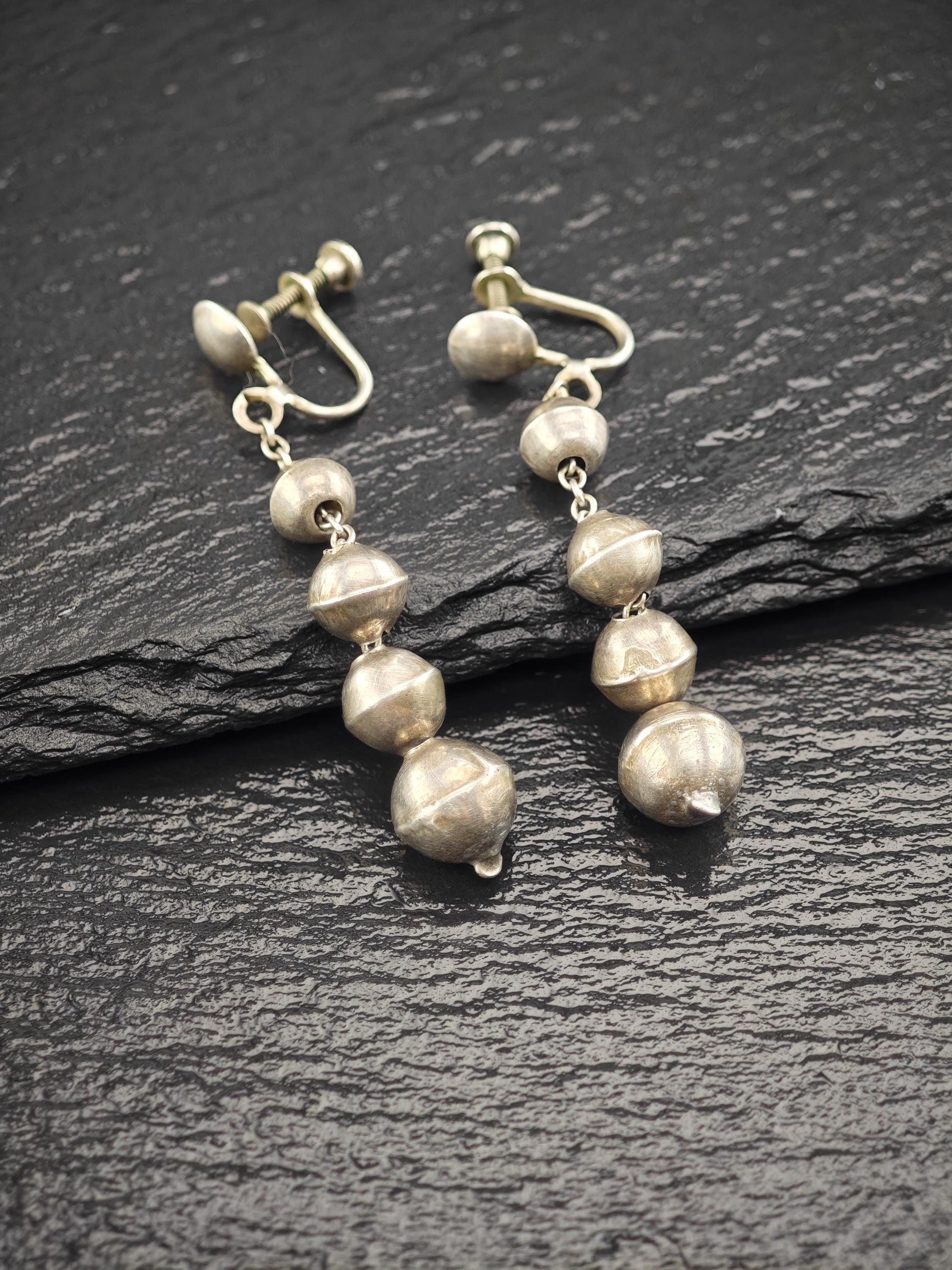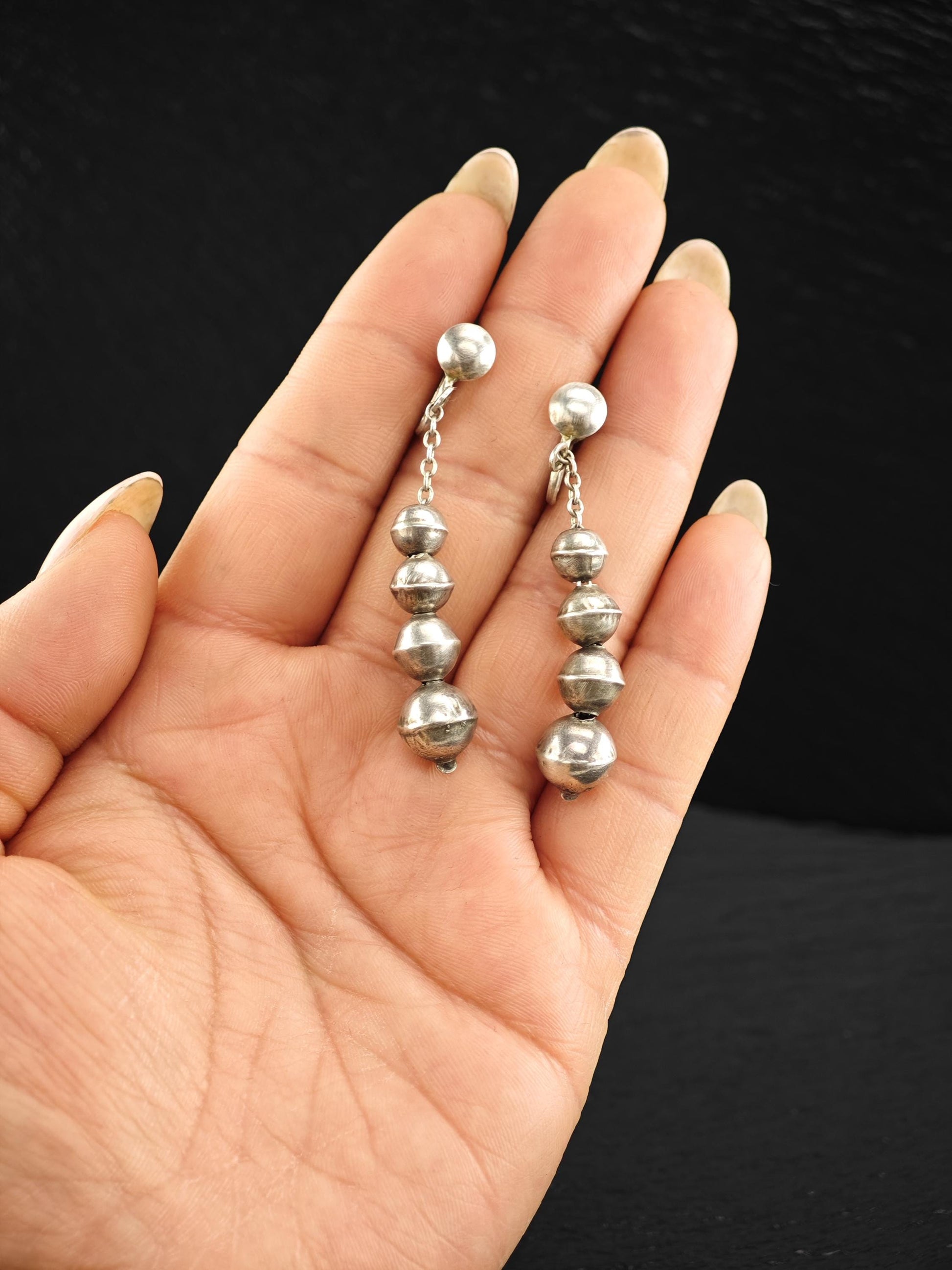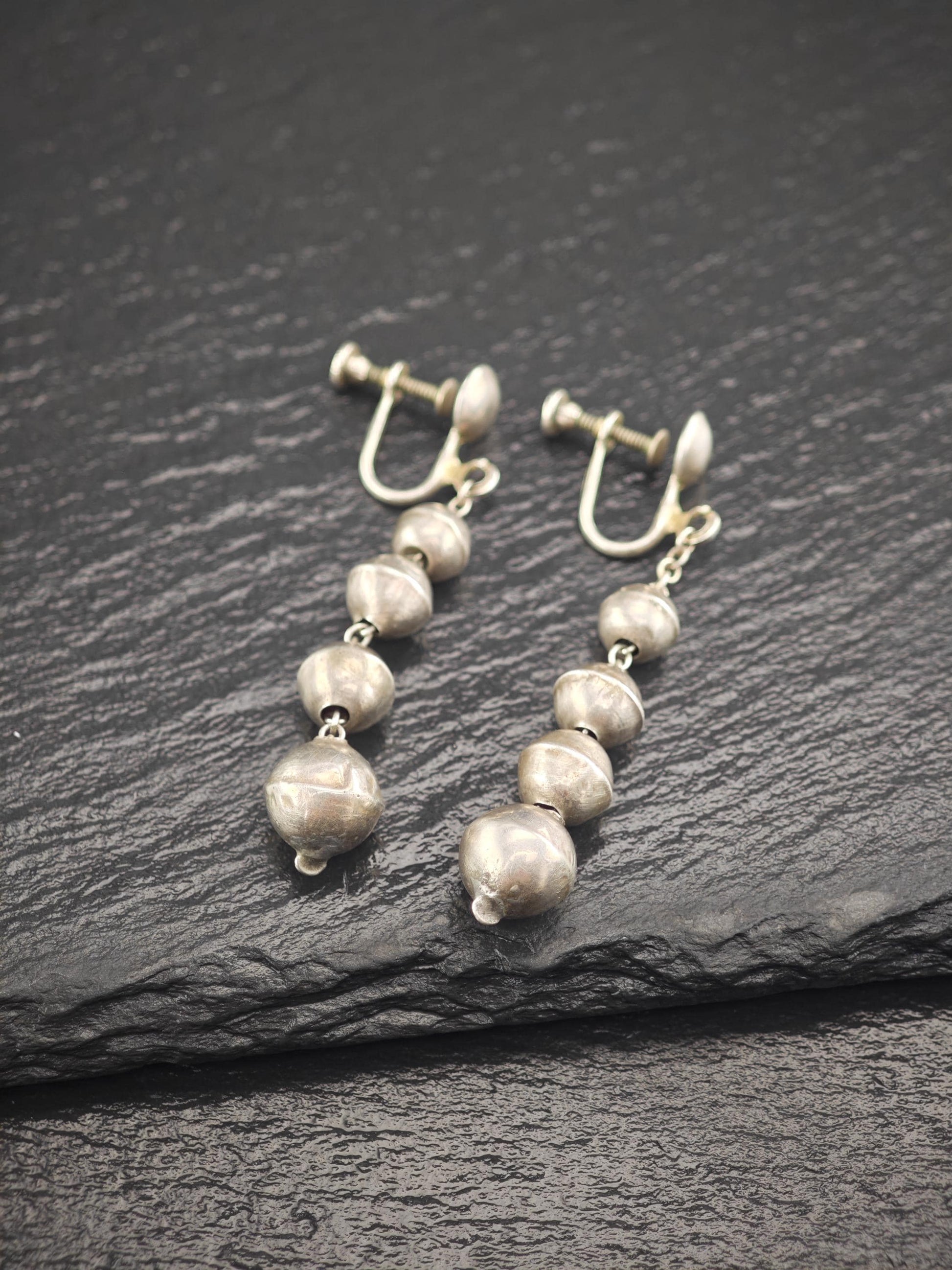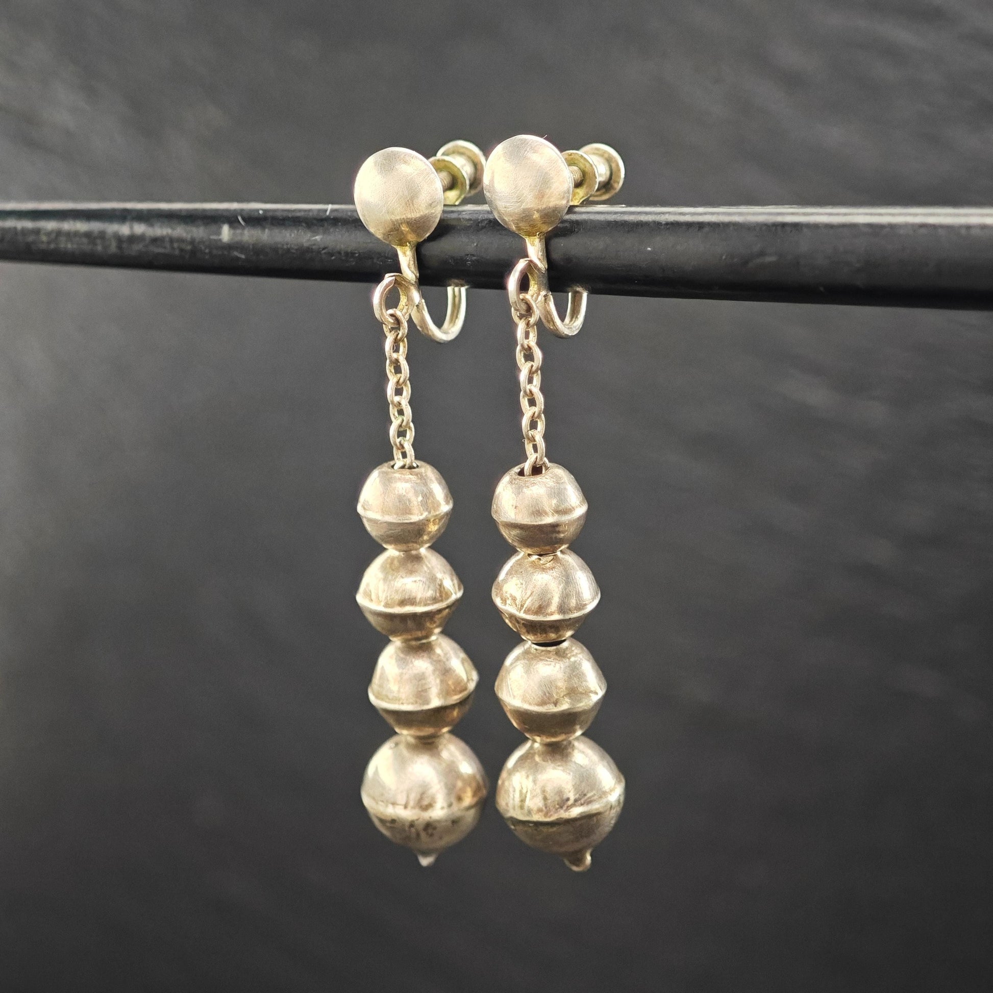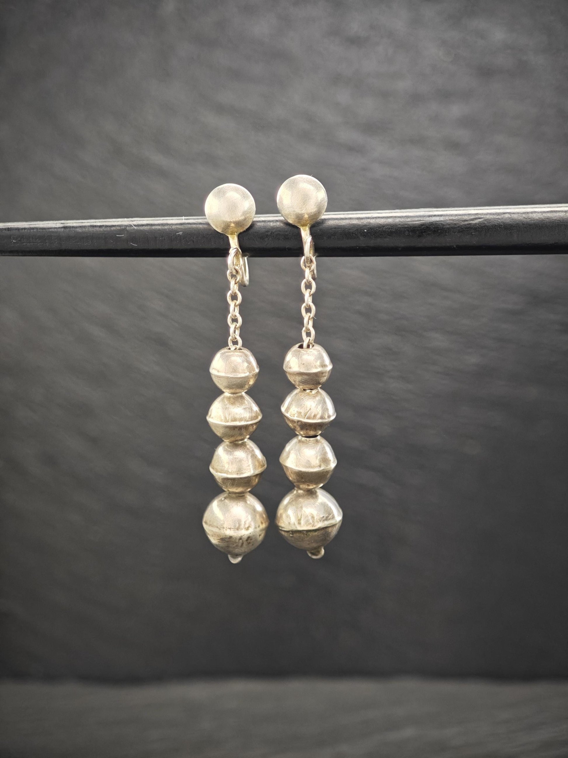 Vintage Sterling Silver Screw Back Earrings Native American Beaded Navajo Pearls