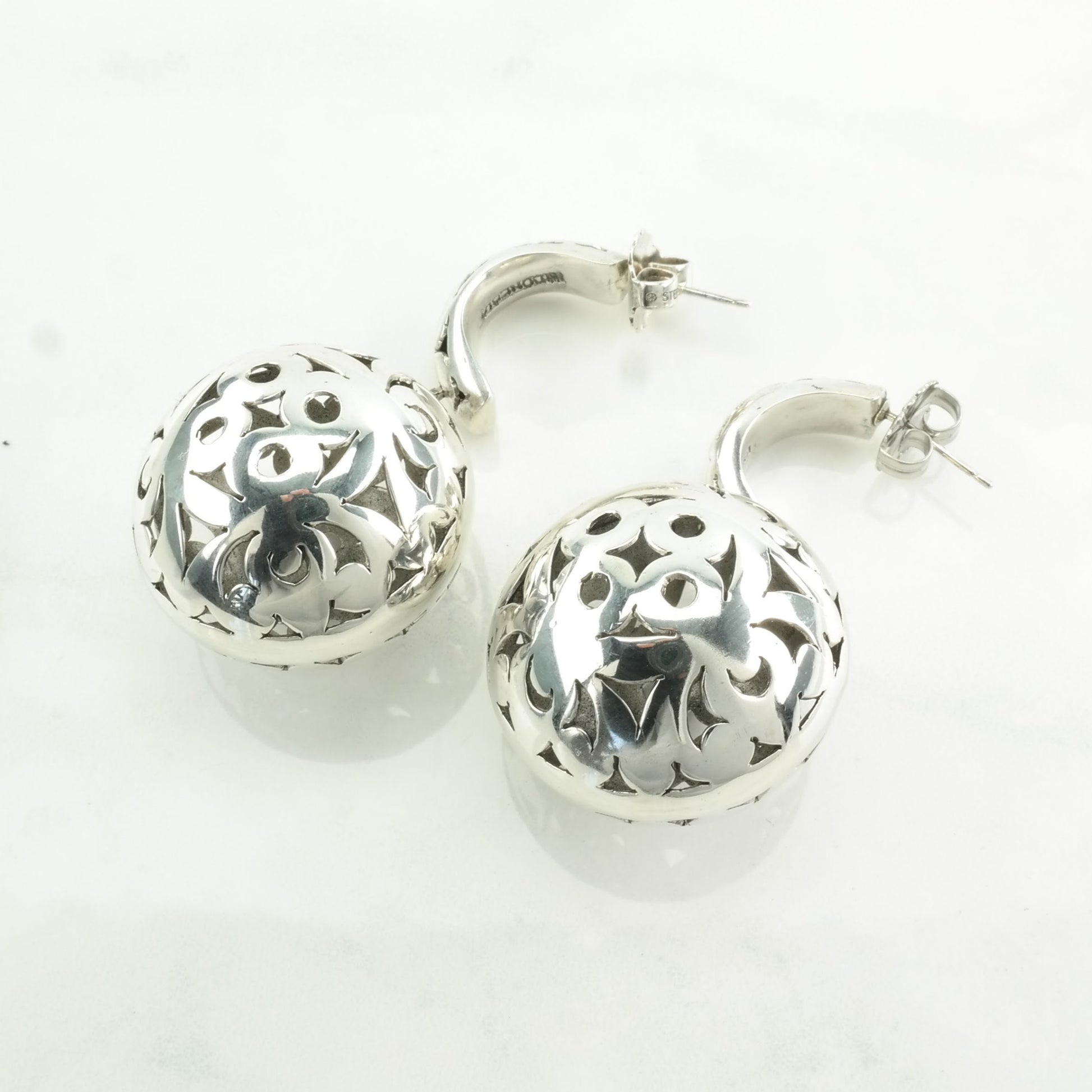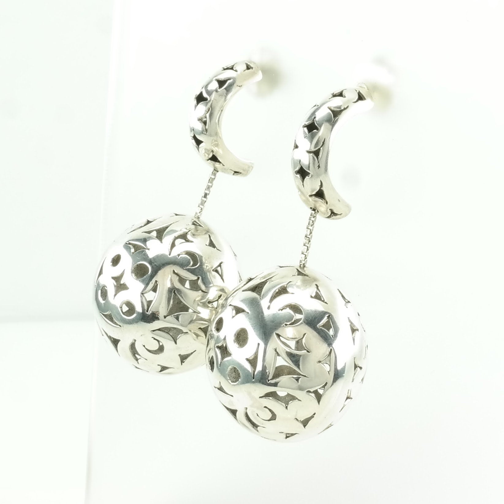 Vintage Sterling Silver Stud/Dangle Earrings Indonesia, Designer Floral Ball
