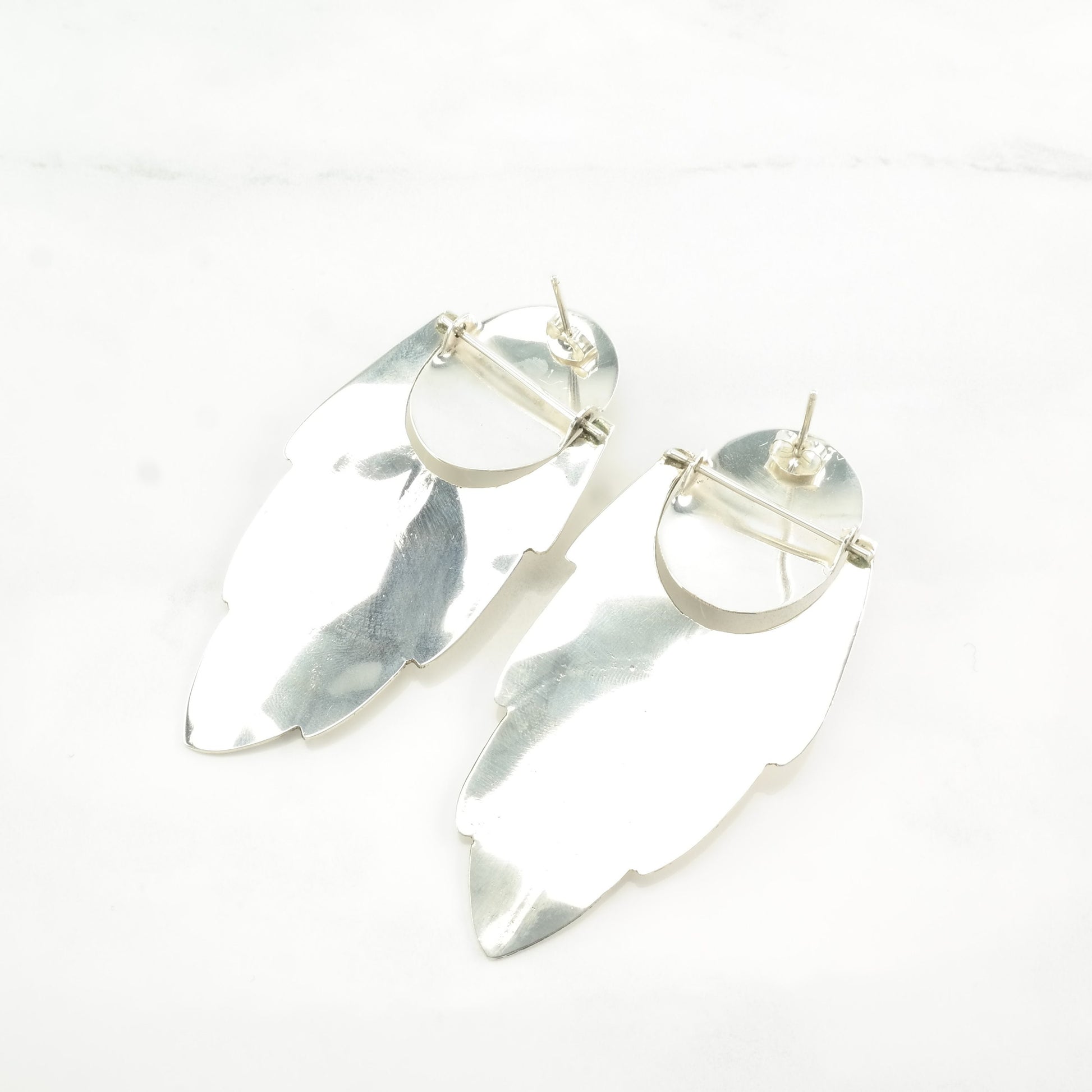 These vintage sterling silver earrings are 2 9/16" inches long, and 1 1/4" inch wide